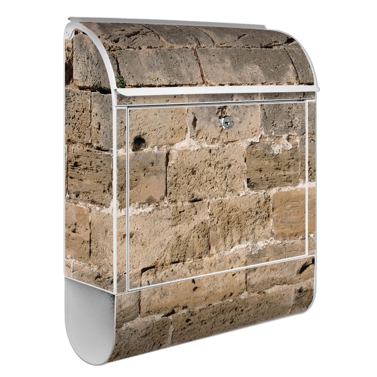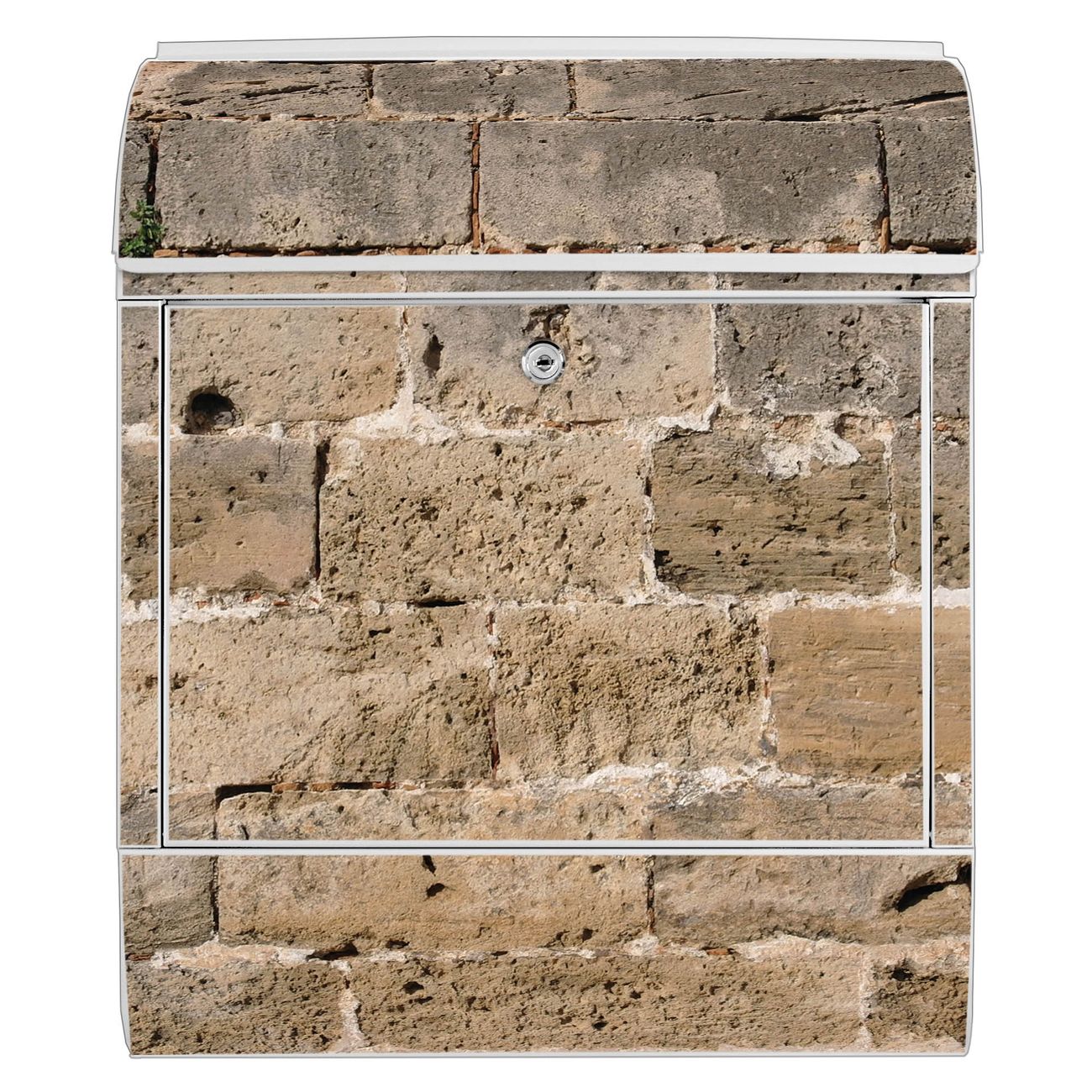 Großer Stahl Briefkasten Motiv Steinwand Antik