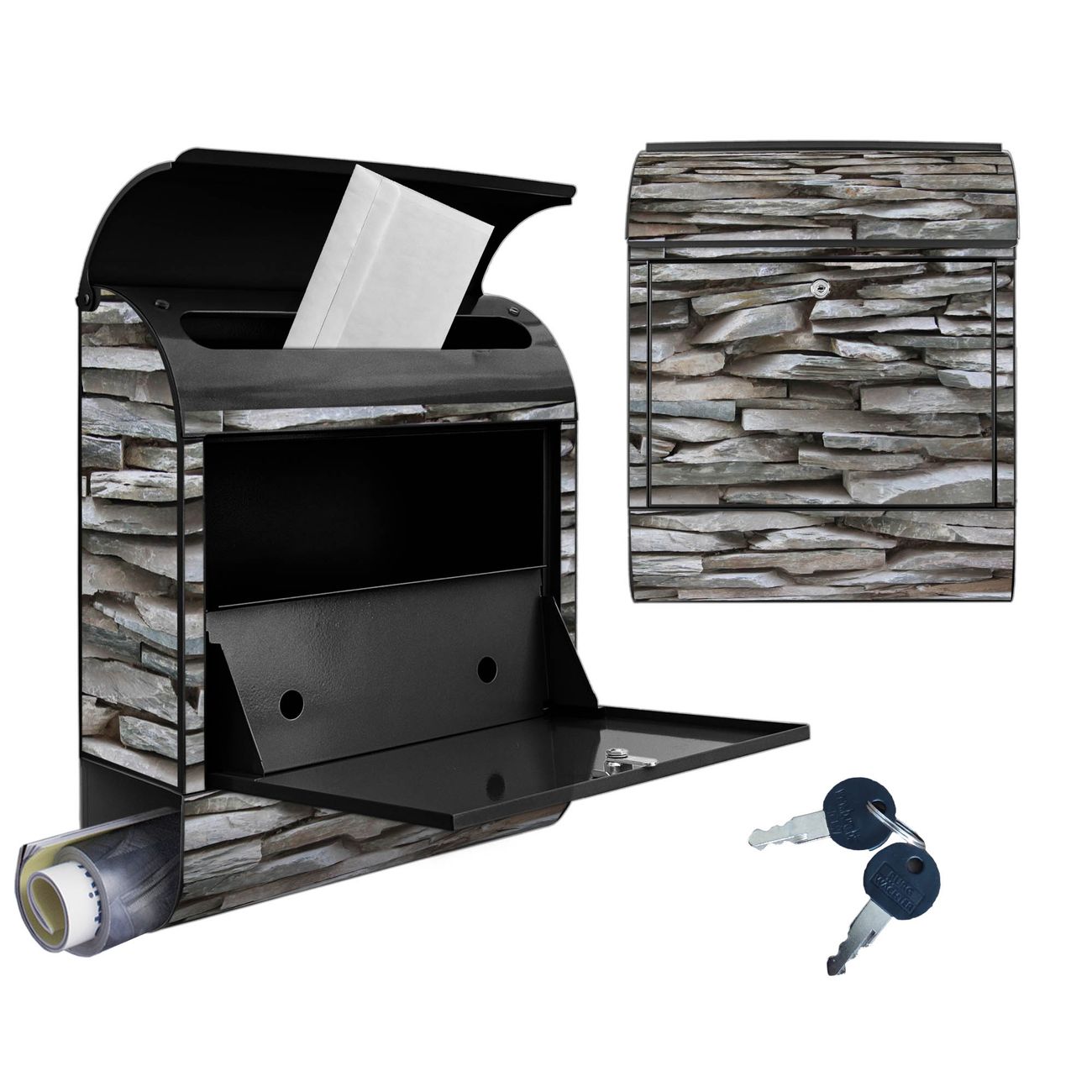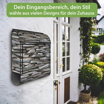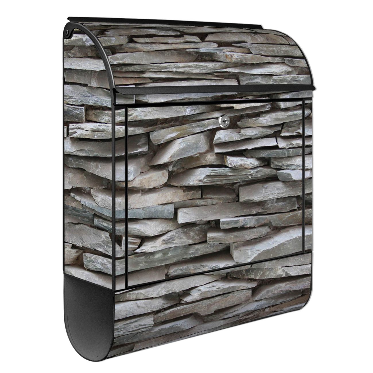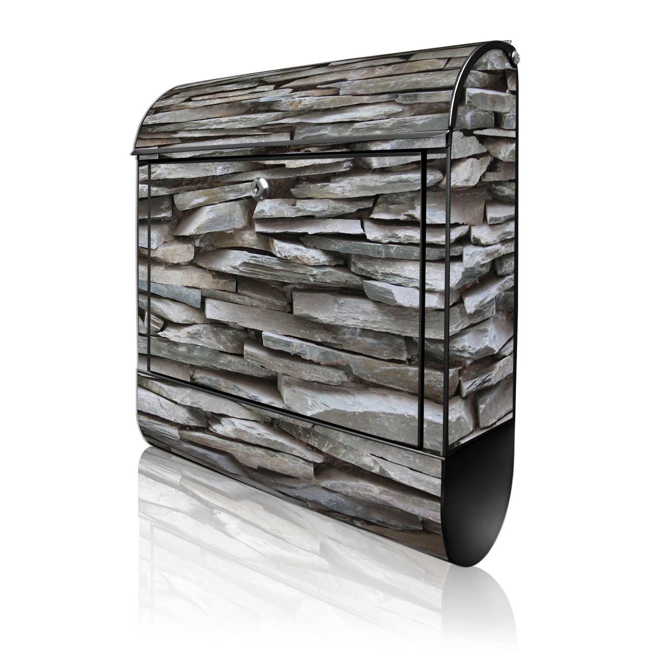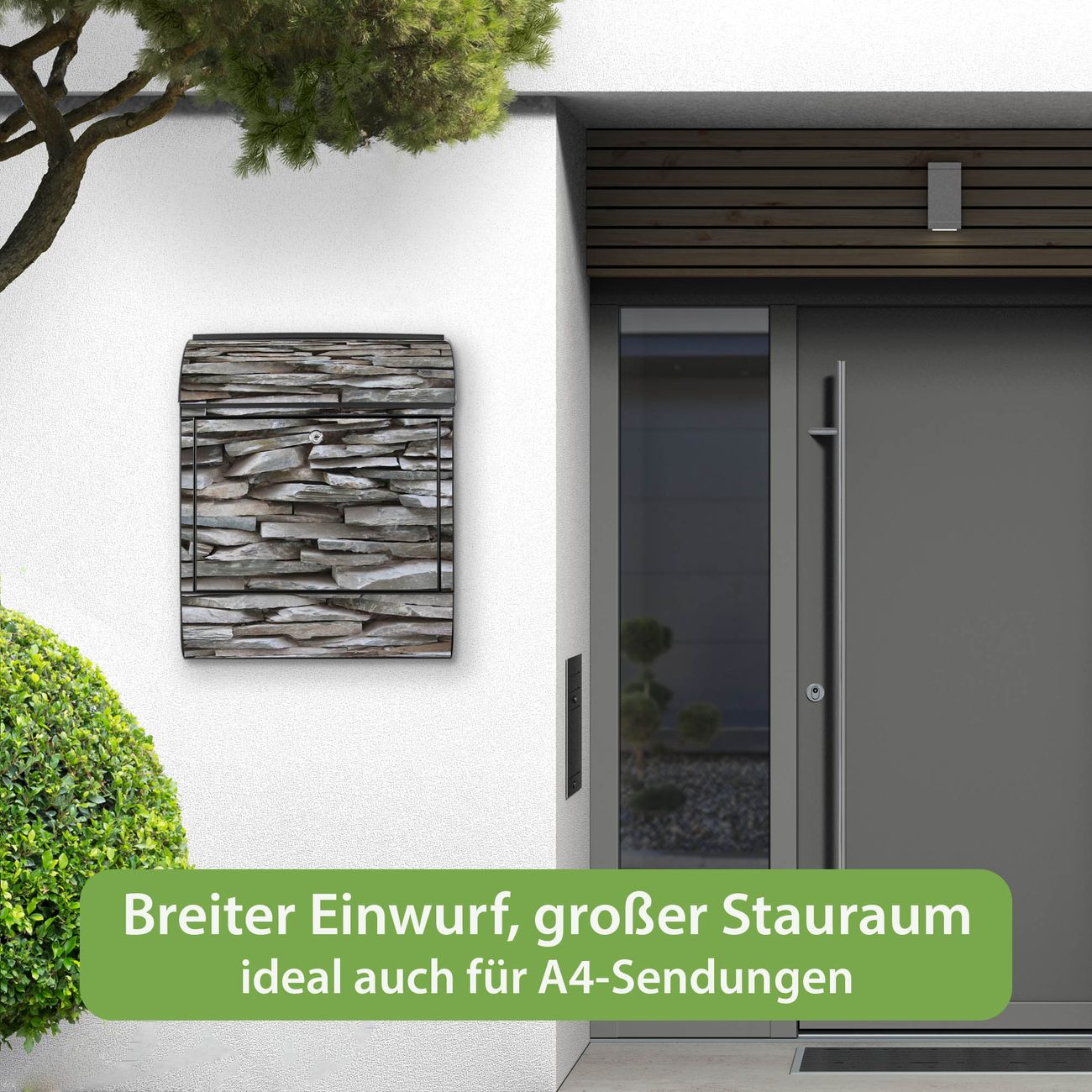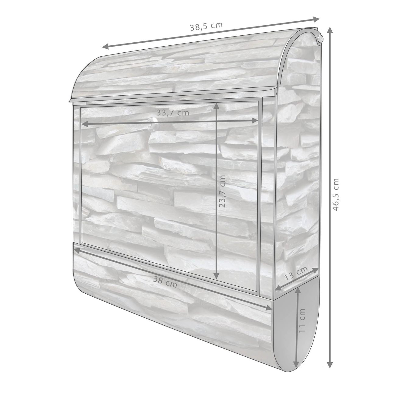 DESIGN: Der Postkasten mit Motiv Motiv Steinwand hat ein sehr ansprechendes und ausgefallenes Design, damit entlocken Sie Ihren Nachbarn und dem Postboten ein Lächeln. Heben Sie Sich von der tristen grauen Masse ab, ohne auf Funktionalität zu verzichten. DETAILS: Der Postkasten besteht aus pulverbeschichtetem Stahl. Er ist 38x46x12,5cm groß. Das Motiv besteht aus einer wetter- und UV-resistenten Folie, die mit einem Schutzlaminat überzogen ist, sodass der Briefkasten zusätzlich vor Kratzern geschützt ist. Der Briefkasten wird mit Montagematerial, zusätzlich zwei Schlüssel sowie einer Bohrschablone geliefert. NUTZEN: Sie können diesen Briefkasten sowohl als Wandbriefkasten montieren oder einen passenden Ständer kaufen und als Standbriefkasten einbetonieren. Die Größe bietet genügend Platz für Sendungen aller Art, der Einwurf fasst auch größere A4 Sendungen. BANJADO: Ihr Briefkasten wird in Sachsen in einer kleinen Manufaktur von Hand veredelt. Die Motivfolie ist lösungsmittelfrei und schutzlaminiert für einen langen Halt. Wir legen großen Wert auf die Verbindung von Funktionalität und Design. Sie erhalten Handarbeit aus Sachsen.