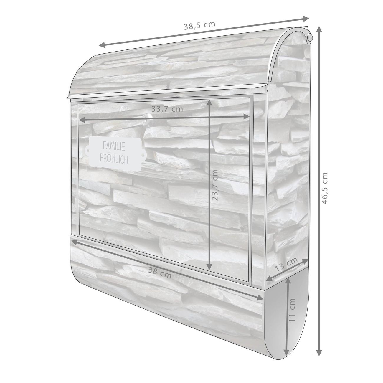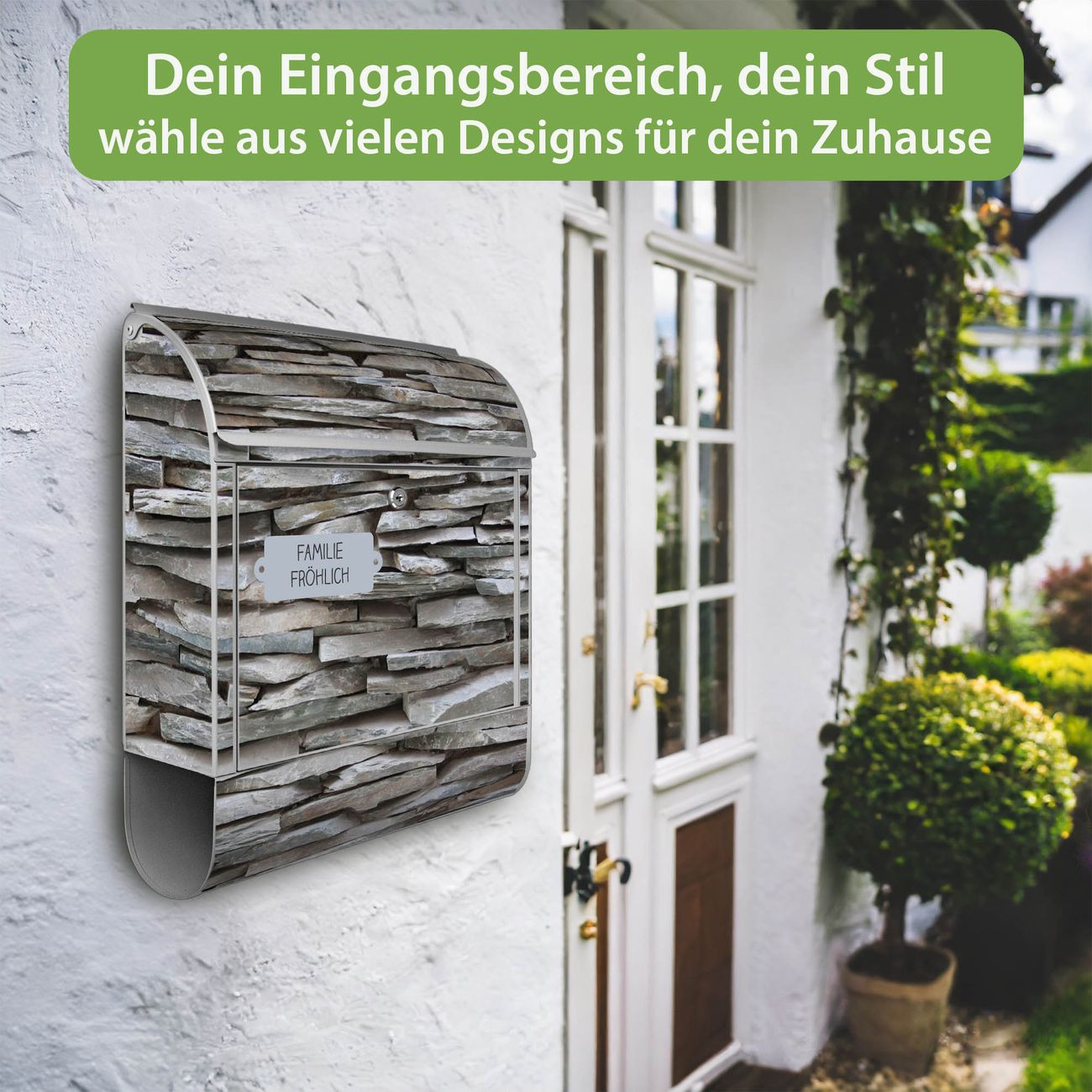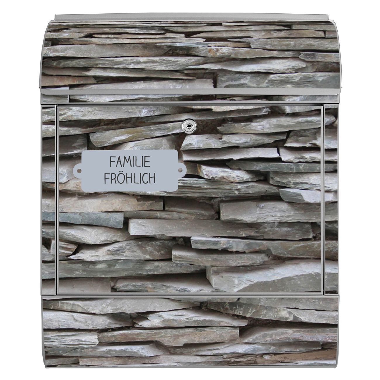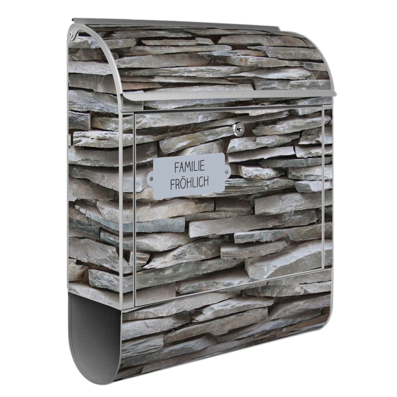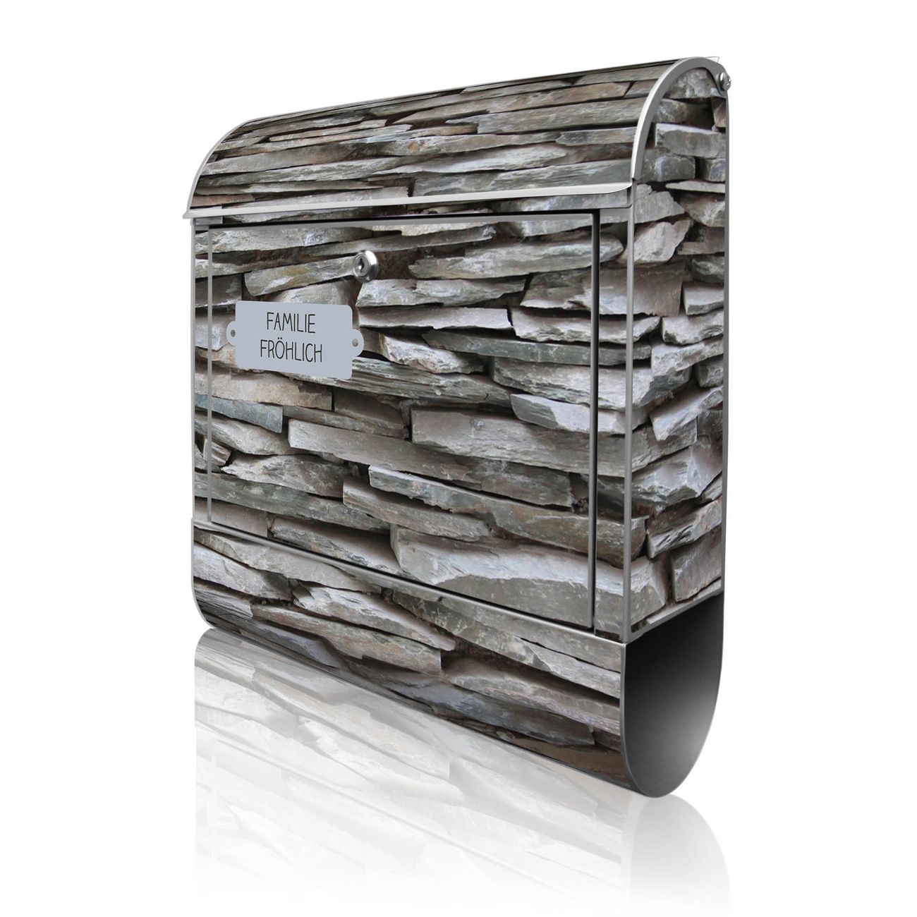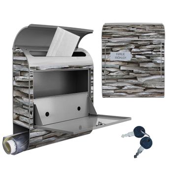 Großer Stahl Briefkasten Motiv Steinwand