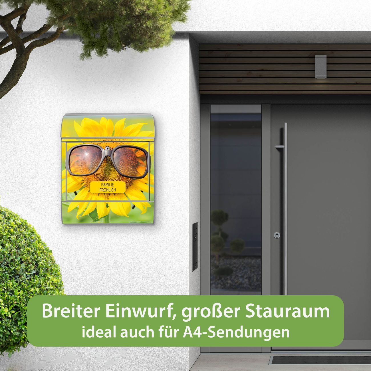 Großer Stahl Briefkasten Motiv Sunny