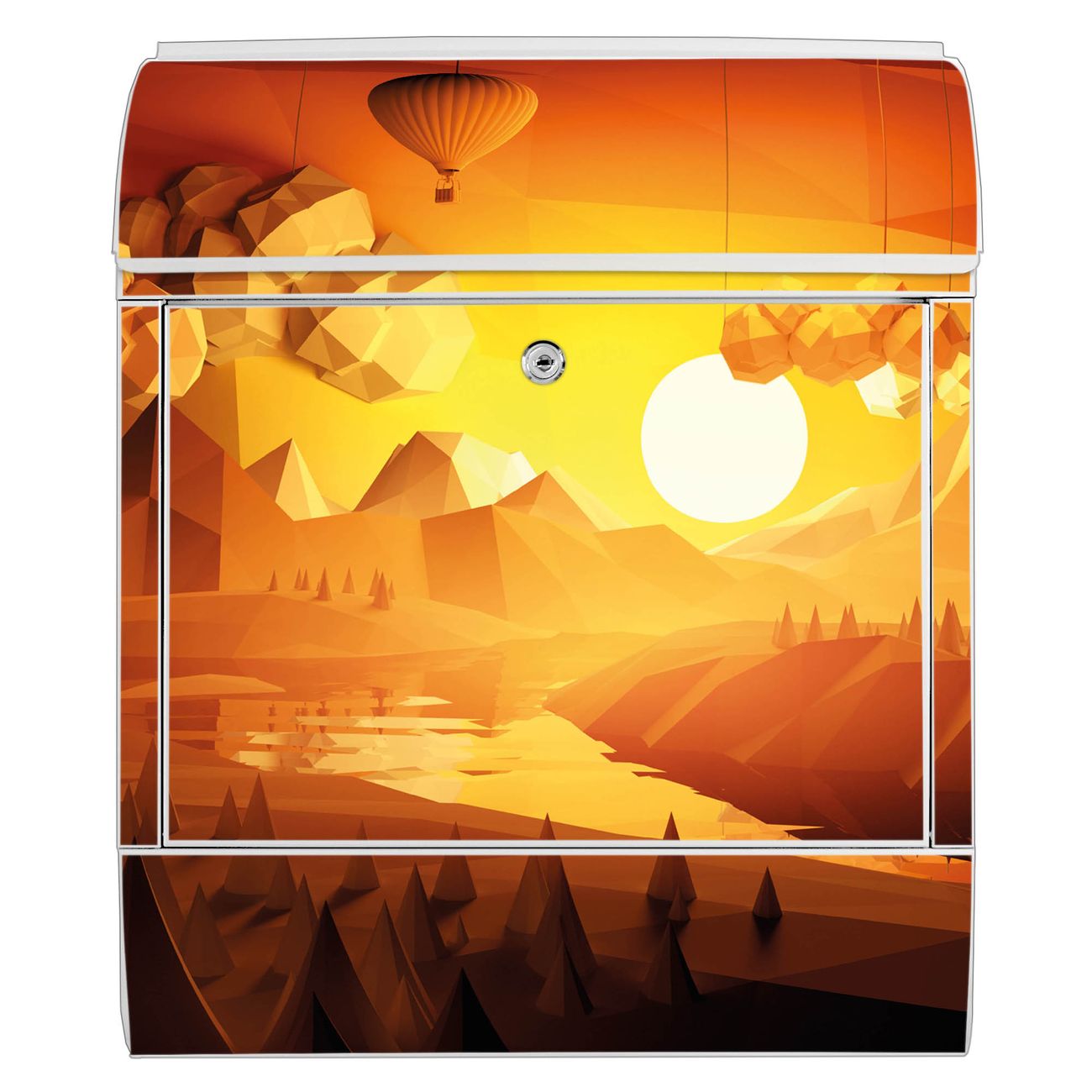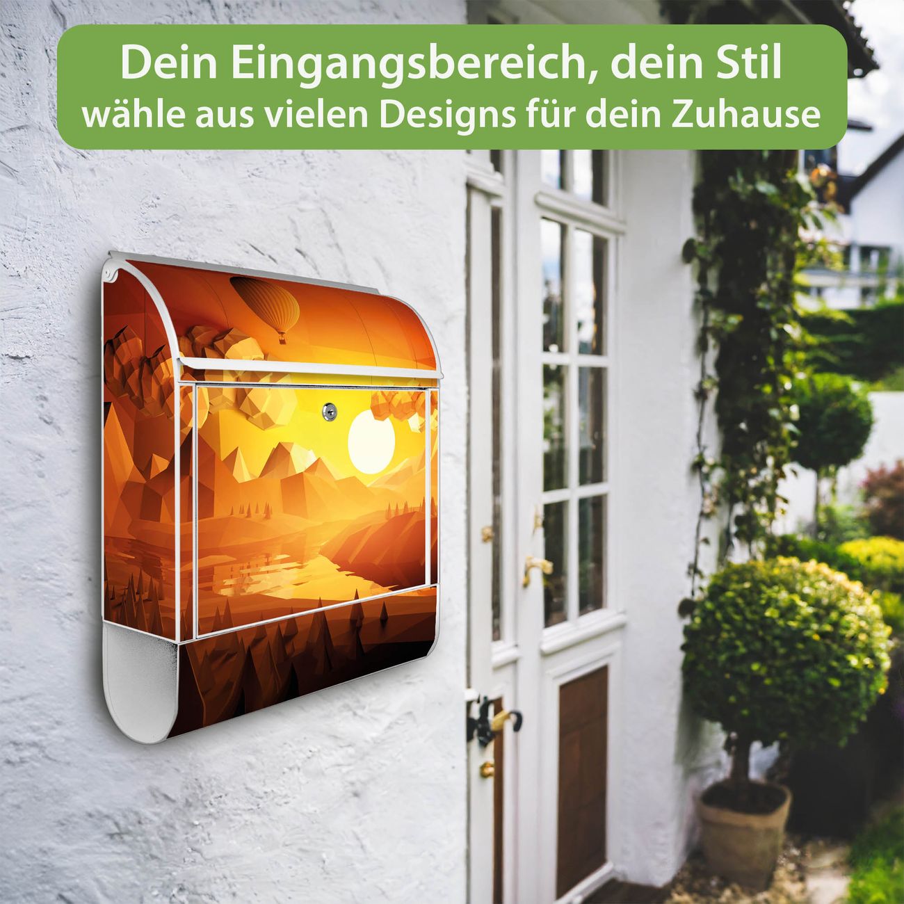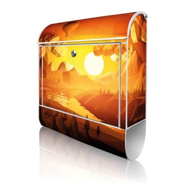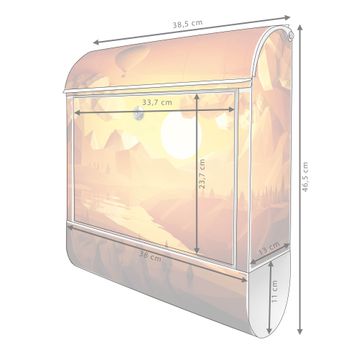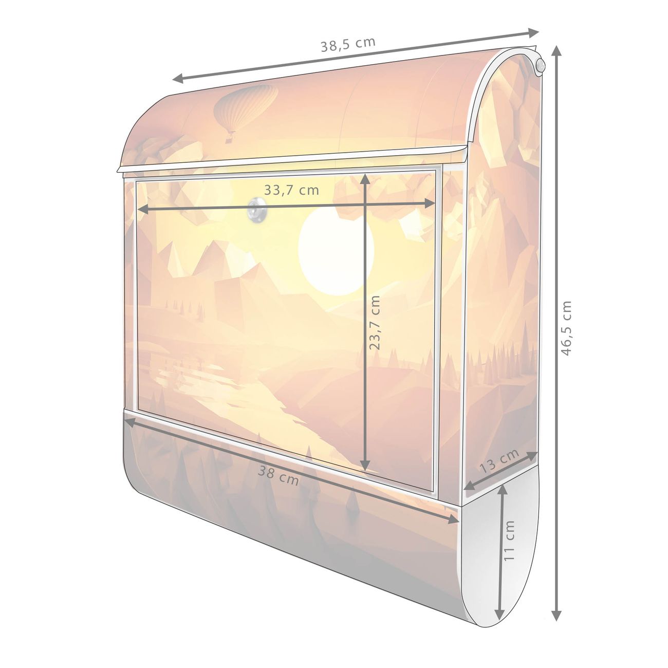 DESIGN: Der Postkasten mit Motiv Motiv Sunset hat ein sehr ansprechendes und ausgefallenes Design, damit entlocken Sie Ihren Nachbarn und dem Postboten ein Lächeln. Heben Sie Sich von der tristen grauen Masse ab, ohne auf Funktionalität zu verzichten. DETAILS: Der Postkasten besteht aus pulverbeschichtetem Stahl. Er ist 38x46x12,5cm groß. Das Motiv besteht aus einer wetter- und UV-resistenten Folie, die mit einem Schutzlaminat überzogen ist, sodass der Briefkasten zusätzlich vor Kratzern geschützt ist. Der Briefkasten wird mit Montagematerial, zusätzlich zwei Schlüssel sowie einer Bohrschablone geliefert. NUTZEN: Sie können diesen Briefkasten sowohl als Wandbriefkasten montieren oder einen passenden Ständer kaufen und als Standbriefkasten einbetonieren. Die Größe bietet genügend Platz für Sendungen aller Art, der Einwurf fasst auch größere A4 Sendungen. BANJADO: Ihr Briefkasten wird in Sachsen in einer kleinen Manufaktur von Hand veredelt. Die Motivfolie ist lösungsmittelfrei und schutzlaminiert für einen langen Halt. Wir legen großen Wert auf die Verbindung von Funktionalität und Design. Sie erhalten Handarbeit aus Sachsen.