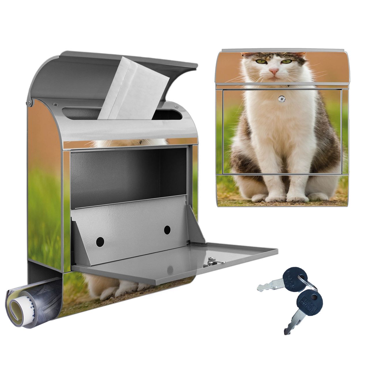 DESIGN: Der Postkasten mit Motiv Motiv Suse hat ein sehr ansprechendes und ausgefallenes Design, damit entlocken Sie Ihren Nachbarn und dem Postboten ein Lächeln. Heben Sie Sich von der tristen grauen Masse ab, ohne auf Funktionalität zu verzichten. DETAILS: Der Postkasten besteht aus pulverbeschichtetem Stahl. Er ist 38x46x12,5cm groß. Das Motiv besteht aus einer wetter- und UV-resistenten Folie, die mit einem Schutzlaminat überzogen ist, sodass der Briefkasten zusätzlich vor Kratzern geschützt ist. Der Briefkasten wird mit Montagematerial, zusätzlich zwei Schlüssel sowie einer Bohrschablone geliefert. NUTZEN: Sie können diesen Briefkasten sowohl als Wandbriefkasten montieren oder einen passenden Ständer kaufen und als Standbriefkasten einbetonieren. Die Größe bietet genügend Platz für Sendungen aller Art, der Einwurf fasst auch größere A4 Sendungen. BANJADO: Ihr Briefkasten wird in Sachsen in einer kleinen Manufaktur von Hand veredelt. Die Motivfolie ist lösungsmittelfrei und schutzlaminiert für einen langen Halt. Wir legen großen Wert auf die Verbindung von Funktionalität und Design. Sie erhalten Handarbeit aus Sachsen.