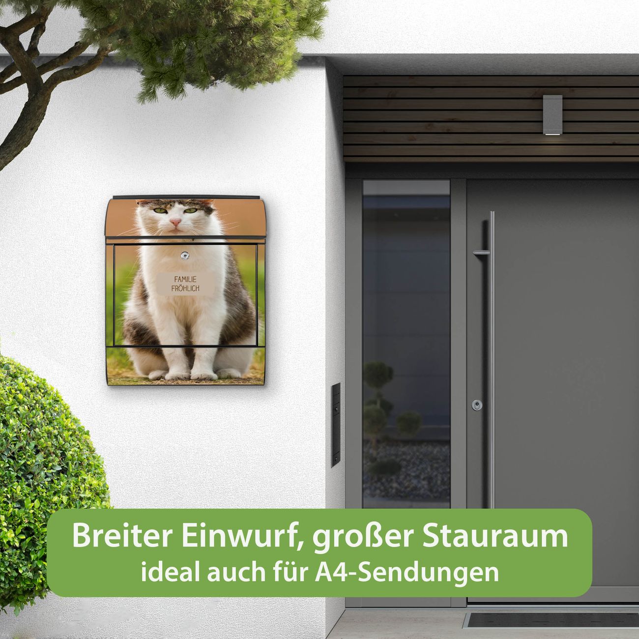 DESIGN: Der Postkasten mit Motiv Motiv Suse hat ein sehr ansprechendes und ausgefallenes Design, damit entlocken Sie Ihren Nachbarn und dem Postboten ein Lächeln. Heben Sie Sich von der tristen grauen Masse ab, ohne auf Funktionalität zu verzichten. DETAILS: Der Postkasten besteht aus pulverbeschichtetem Stahl. Er ist 38x46x12,5cm groß. Das Motiv besteht aus einer wetter- und UV-resistenten Folie, die mit einem Schutzlaminat überzogen ist, sodass der Briefkasten zusätzlich vor Kratzern geschützt ist. Der Briefkasten wird mit Montagematerial, zusätzlich zwei Schlüssel sowie einer Bohrschablone geliefert. NUTZEN: Sie können diesen Briefkasten sowohl als Wandbriefkasten montieren oder einen passenden Ständer kaufen und als Standbriefkasten einbetonieren. Die Größe bietet genügend Platz für Sendungen aller Art, der Einwurf fasst auch größere A4 Sendungen. BANJADO: Ihr Briefkasten wird in Sachsen in einer kleinen Manufaktur von Hand veredelt. Die Motivfolie ist lösungsmittelfrei und schutzlaminiert für einen langen Halt. Wir legen großen Wert auf die Verbindung von Funktionalität und Design. Sie erhalten Handarbeit aus Sachsen.