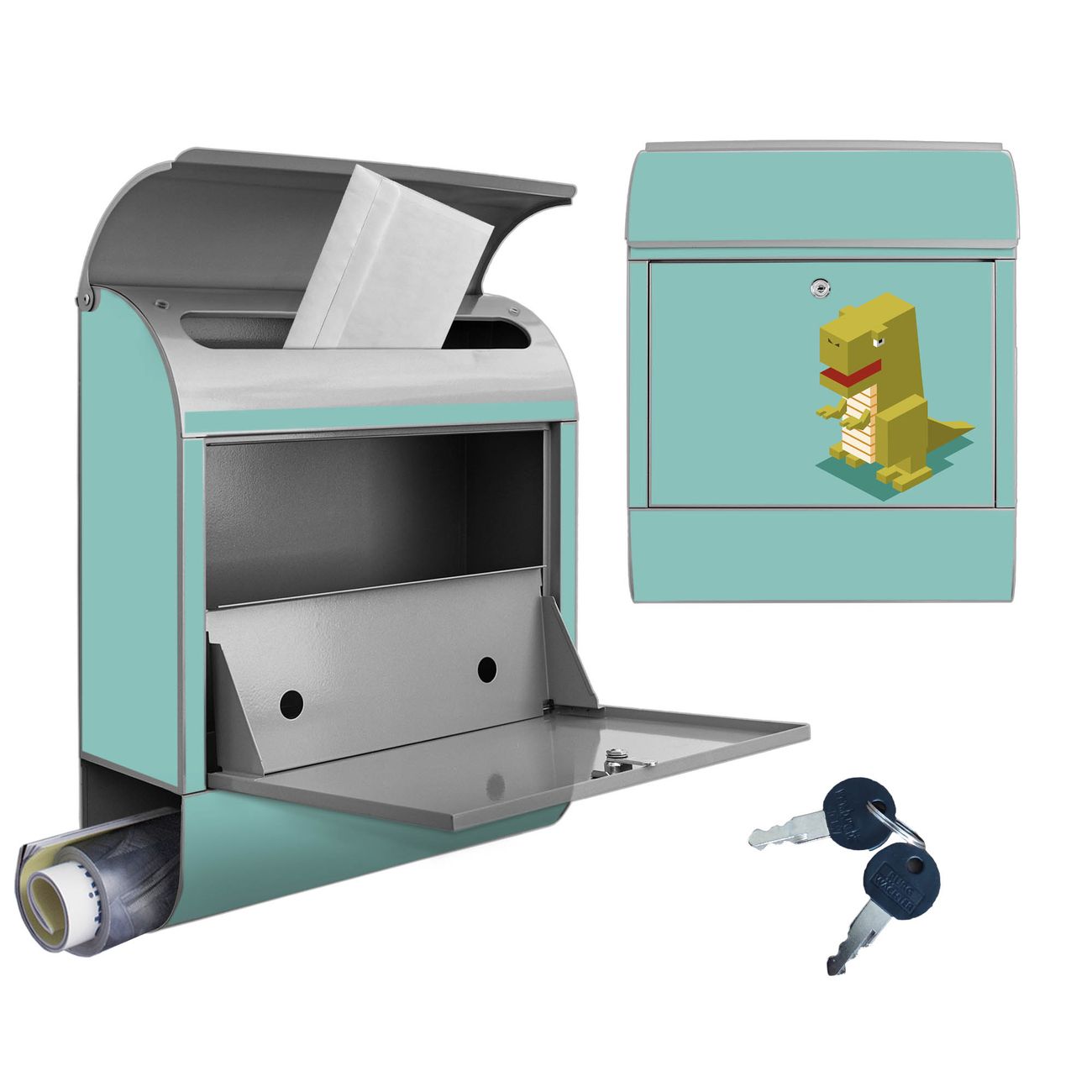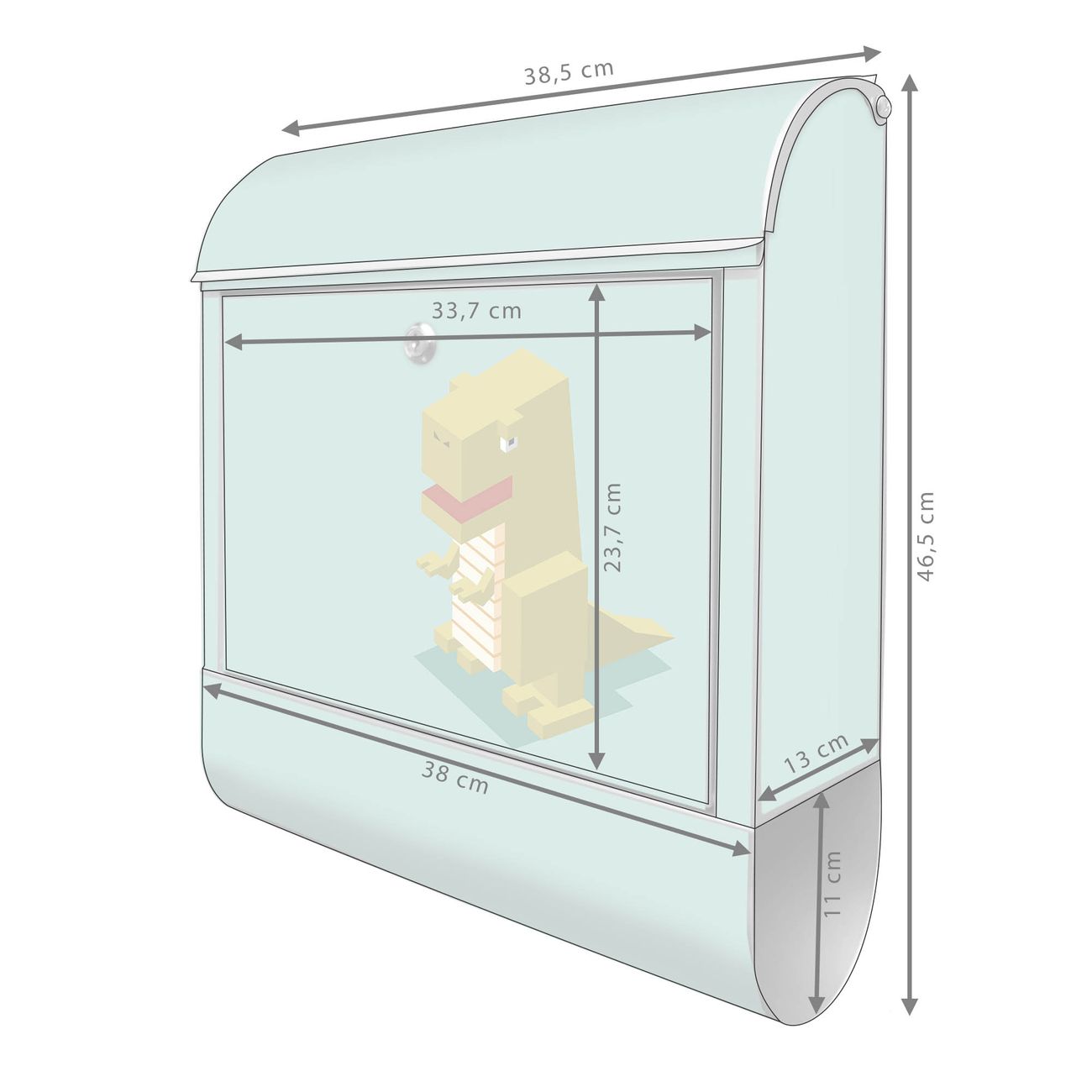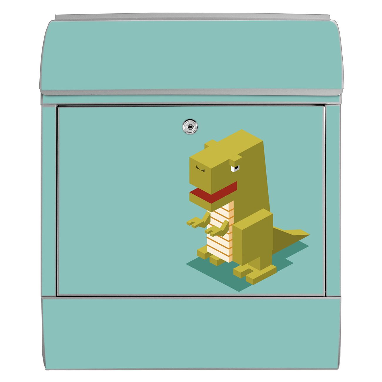 Großer Stahl Briefkasten Motiv T-Rex Block