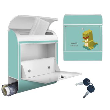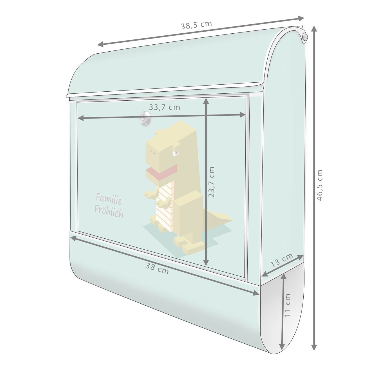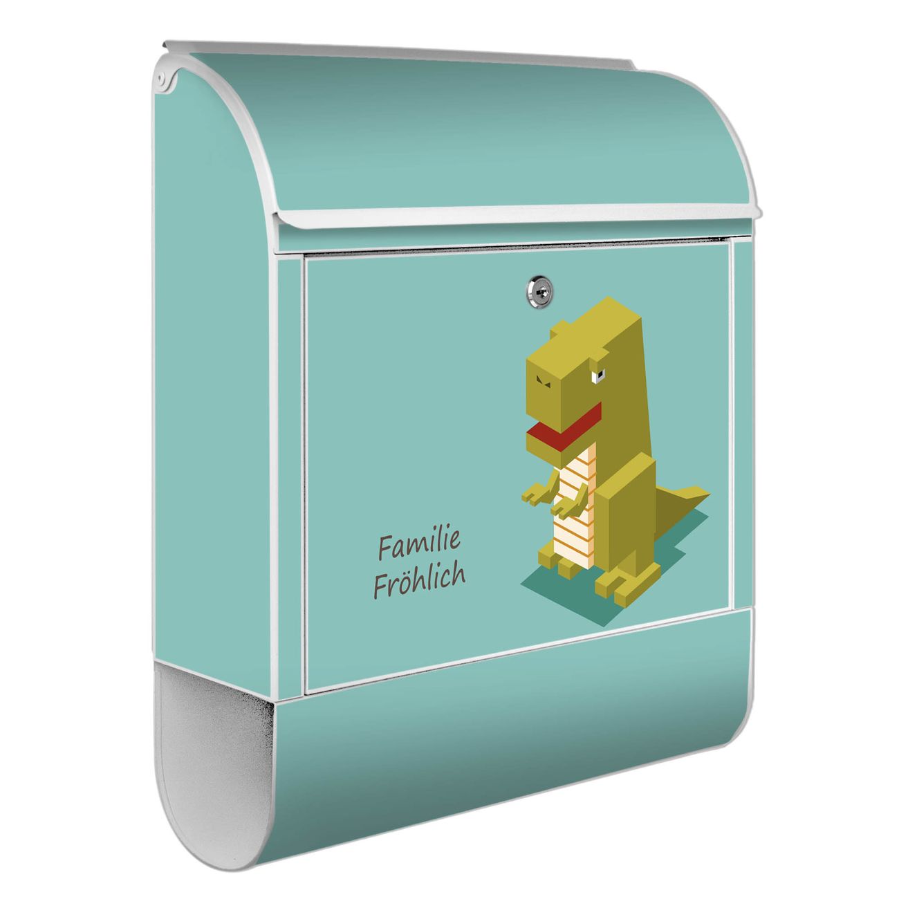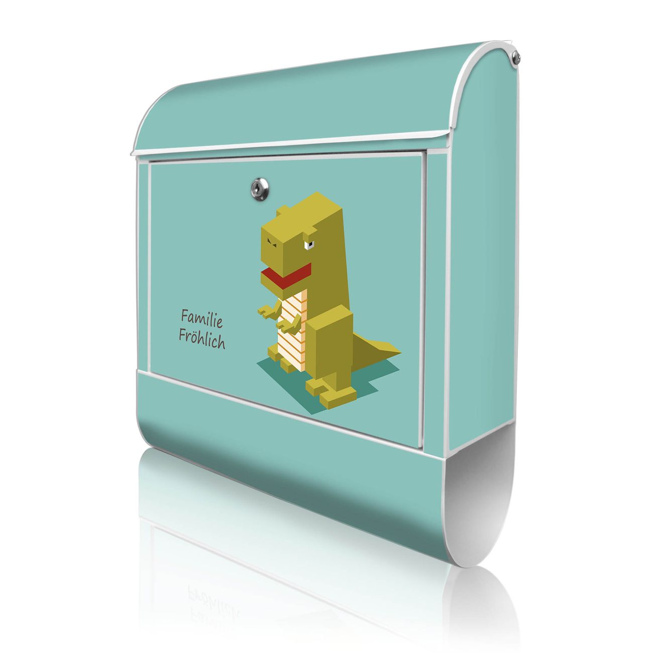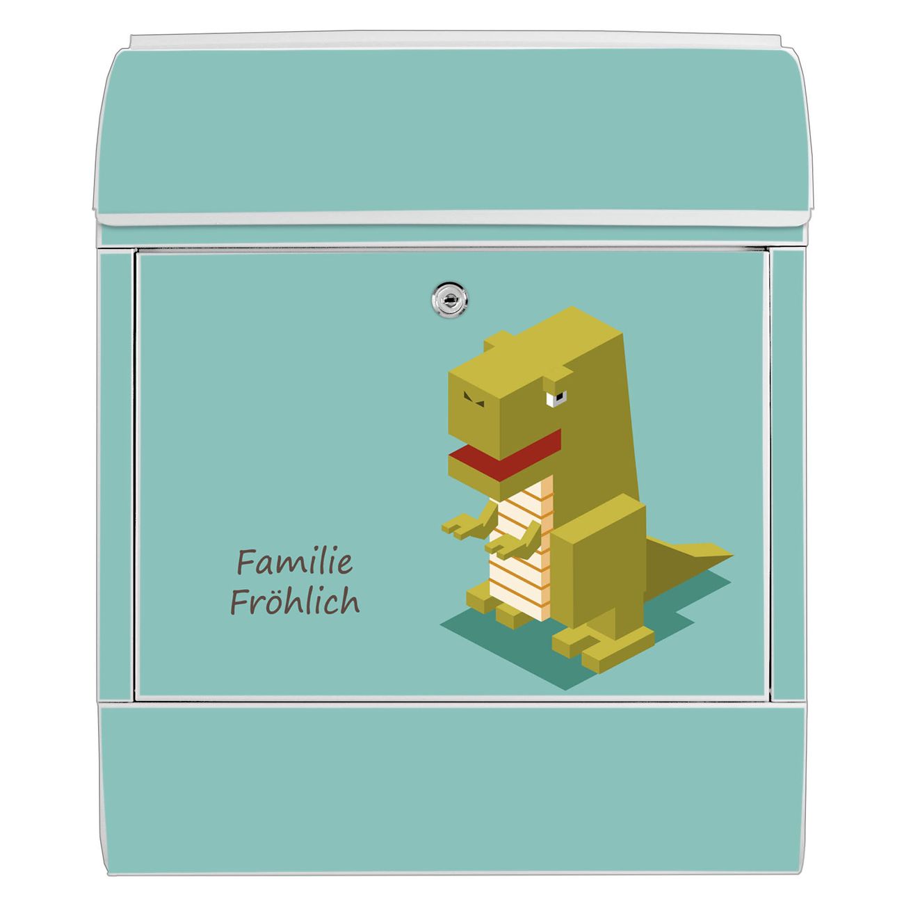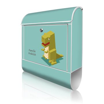 Großer Stahl Briefkasten Motiv T-Rex Block