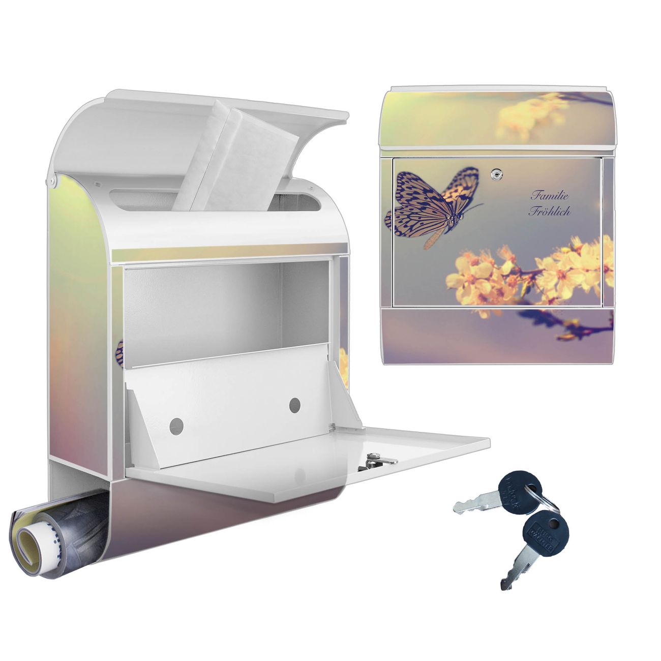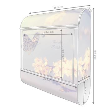 DESIGN: Der Postkasten mit Motiv Motiv Tag Im Mai hat ein sehr ansprechendes und ausgefallenes Design, damit entlocken Sie Ihren Nachbarn und dem Postboten ein Lächeln. Heben Sie Sich von der tristen grauen Masse ab, ohne auf Funktionalität zu verzichten. DETAILS: Der Postkasten besteht aus pulverbeschichtetem Stahl. Er ist 38x46x12,5cm groß. Das Motiv besteht aus einer wetter- und UV-resistenten Folie, die mit einem Schutzlaminat überzogen ist, sodass der Briefkasten zusätzlich vor Kratzern geschützt ist. Der Briefkasten wird mit Montagematerial, zusätzlich zwei Schlüssel sowie einer Bohrschablone geliefert. NUTZEN: Sie können diesen Briefkasten sowohl als Wandbriefkasten montieren oder einen passenden Ständer kaufen und als Standbriefkasten einbetonieren. Die Größe bietet genügend Platz für Sendungen aller Art, der Einwurf fasst auch größere A4 Sendungen. BANJADO: Ihr Briefkasten wird in Sachsen in einer kleinen Manufaktur von Hand veredelt. Die Motivfolie ist lösungsmittelfrei und schutzlaminiert für einen langen Halt. Wir legen großen Wert auf die Verbindung von Funktionalität und Design. Sie erhalten Handarbeit aus Sachsen.