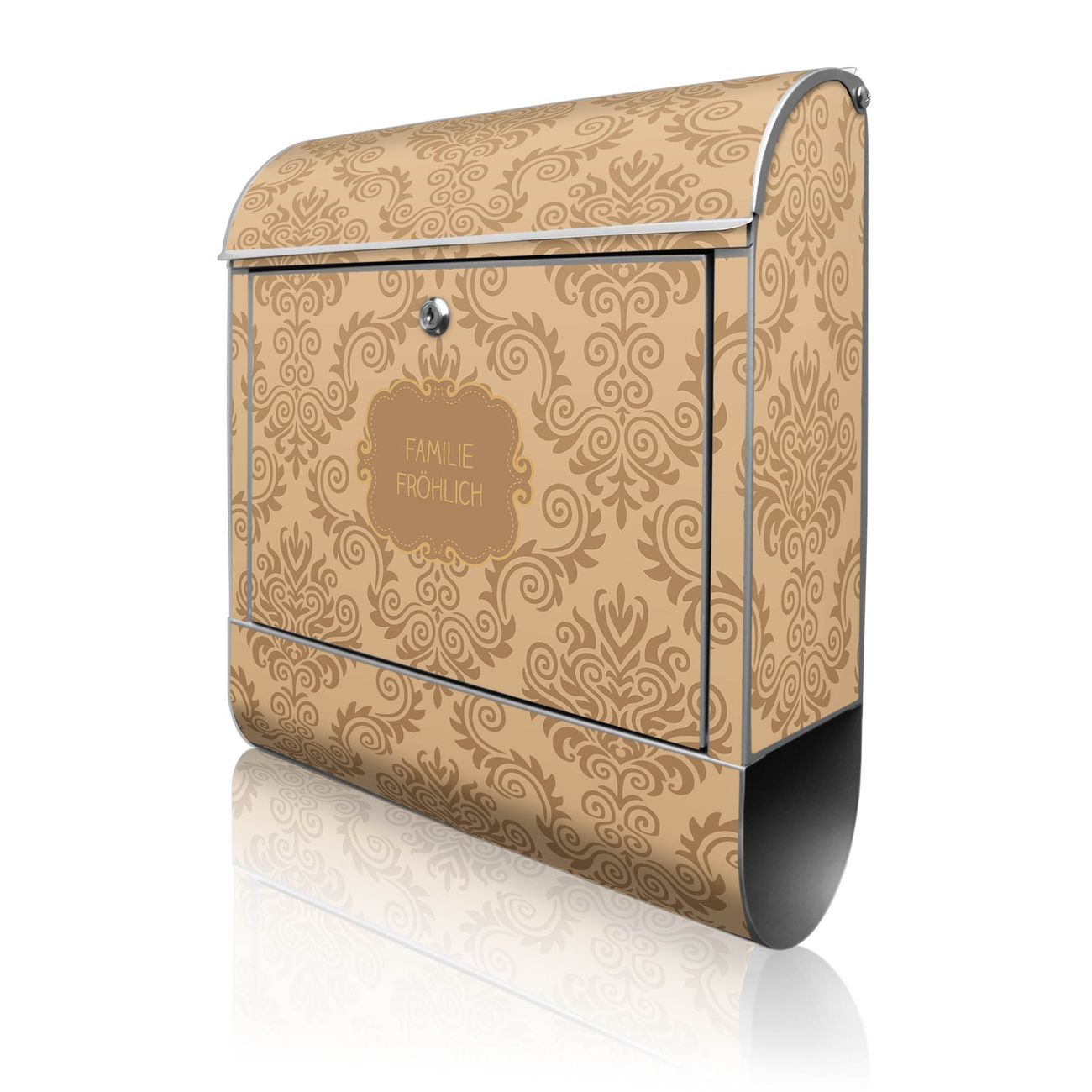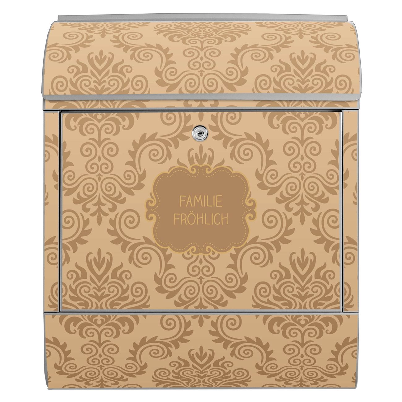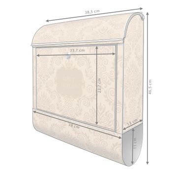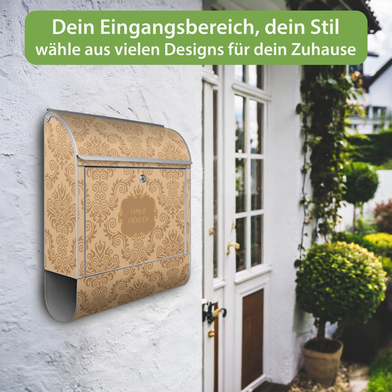 DESIGN: Der Postkasten mit Motiv Motiv Tapete Beige hat ein sehr ansprechendes und ausgefallenes Design, damit entlocken Sie Ihren Nachbarn und dem Postboten ein Lächeln. Heben Sie Sich von der tristen grauen Masse ab, ohne auf Funktionalität zu verzichten. DETAILS: Der Postkasten besteht aus pulverbeschichtetem Stahl. Er ist 38x46x12,5cm groß. Das Motiv besteht aus einer wetter- und UV-resistenten Folie, die mit einem Schutzlaminat überzogen ist, sodass der Briefkasten zusätzlich vor Kratzern geschützt ist. Der Briefkasten wird mit Montagematerial, zusätzlich zwei Schlüssel sowie einer Bohrschablone geliefert. NUTZEN: Sie können diesen Briefkasten sowohl als Wandbriefkasten montieren oder einen passenden Ständer kaufen und als Standbriefkasten einbetonieren. Die Größe bietet genügend Platz für Sendungen aller Art, der Einwurf fasst auch größere A4 Sendungen. BANJADO: Ihr Briefkasten wird in Sachsen in einer kleinen Manufaktur von Hand veredelt. Die Motivfolie ist lösungsmittelfrei und schutzlaminiert für einen langen Halt. Wir legen großen Wert auf die Verbindung von Funktionalität und Design. Sie erhalten Handarbeit aus Sachsen.