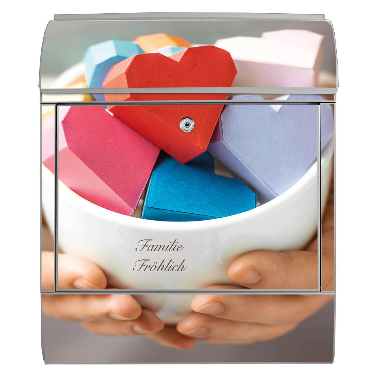 Großer Stahl Briefkasten Motiv Tasse voller Herzen