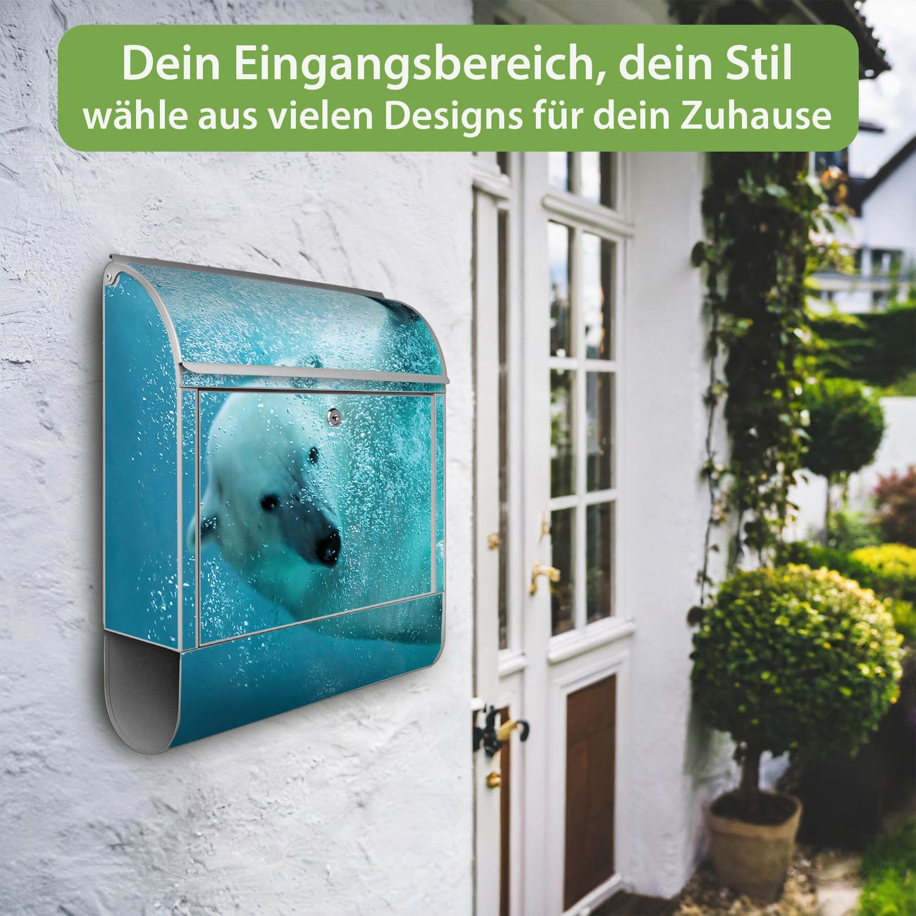 Großer Stahl Briefkasten Motiv Tauchender Eisbär