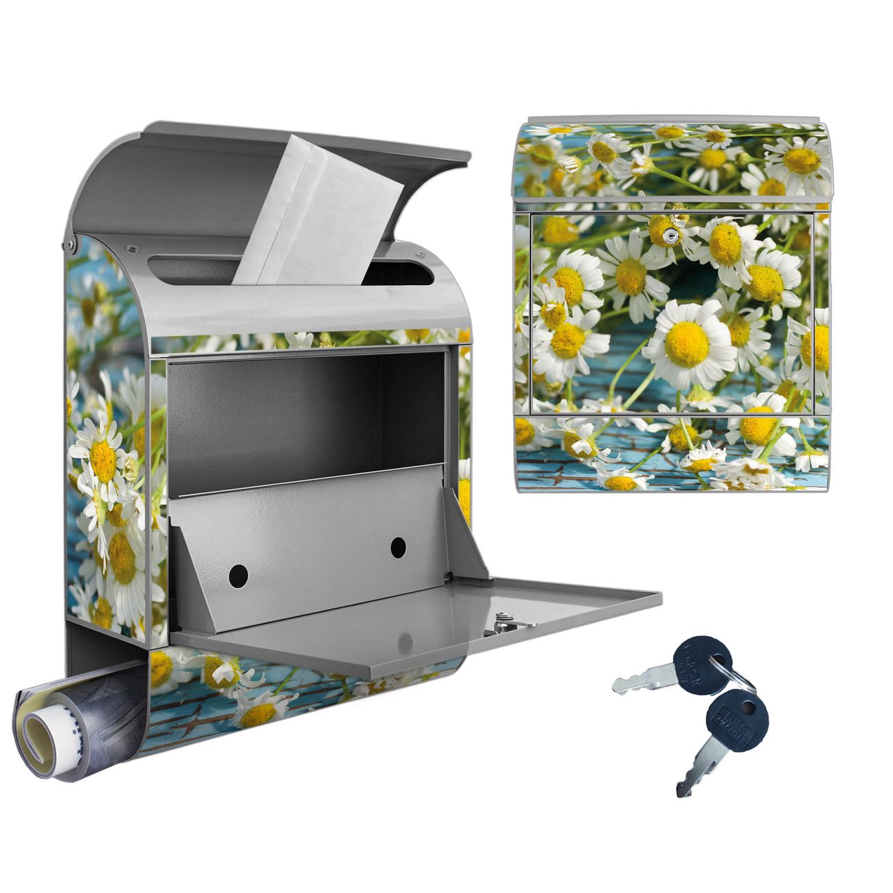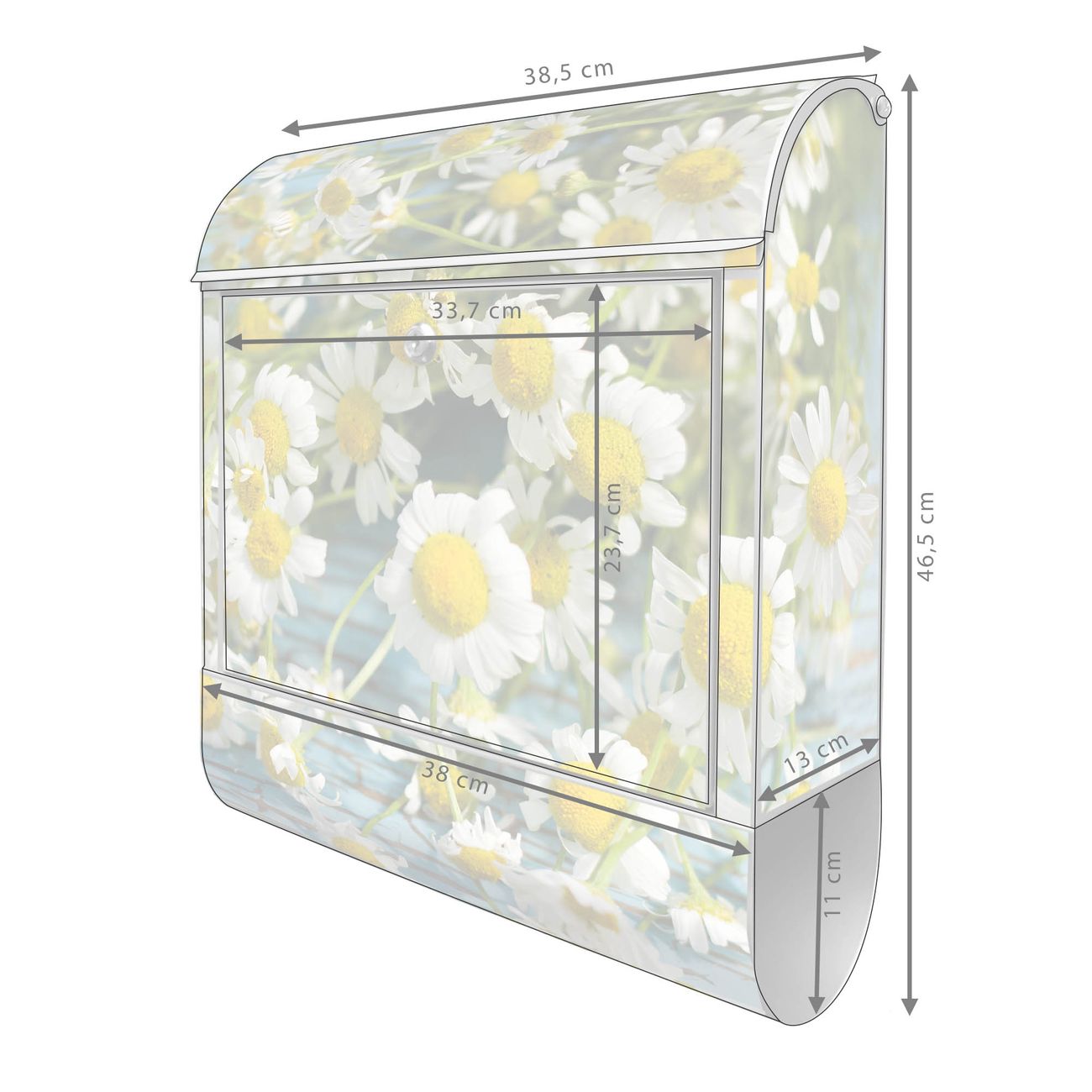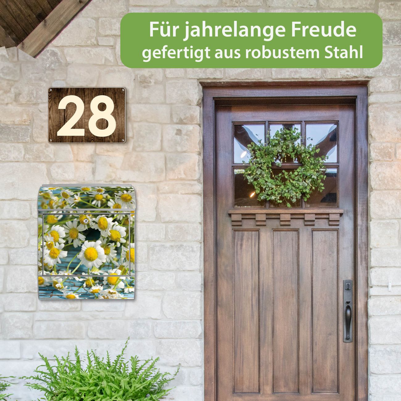DESIGN: Der Postkasten mit Motiv Motiv Tausendschön hat ein sehr ansprechendes und ausgefallenes Design, damit entlocken Sie Ihren Nachbarn und dem Postboten ein Lächeln. Heben Sie Sich von der tristen grauen Masse ab, ohne auf Funktionalität zu verzichten. DETAILS: Der Postkasten besteht aus pulverbeschichtetem Stahl. Er ist 38x46x12,5cm groß. Das Motiv besteht aus einer wetter- und UV-resistenten Folie, die mit einem Schutzlaminat überzogen ist, sodass der Briefkasten zusätzlich vor Kratzern geschützt ist. Der Briefkasten wird mit Montagematerial, zusätzlich zwei Schlüssel sowie einer Bohrschablone geliefert. NUTZEN: Sie können diesen Briefkasten sowohl als Wandbriefkasten montieren oder einen passenden Ständer kaufen und als Standbriefkasten einbetonieren. Die Größe bietet genügend Platz für Sendungen aller Art, der Einwurf fasst auch größere A4 Sendungen. BANJADO: Ihr Briefkasten wird in Sachsen in einer kleinen Manufaktur von Hand veredelt. Die Motivfolie ist lösungsmittelfrei und schutzlaminiert für einen langen Halt. Wir legen großen Wert auf die Verbindung von Funktionalität und Design. Sie erhalten Handarbeit aus Sachsen.