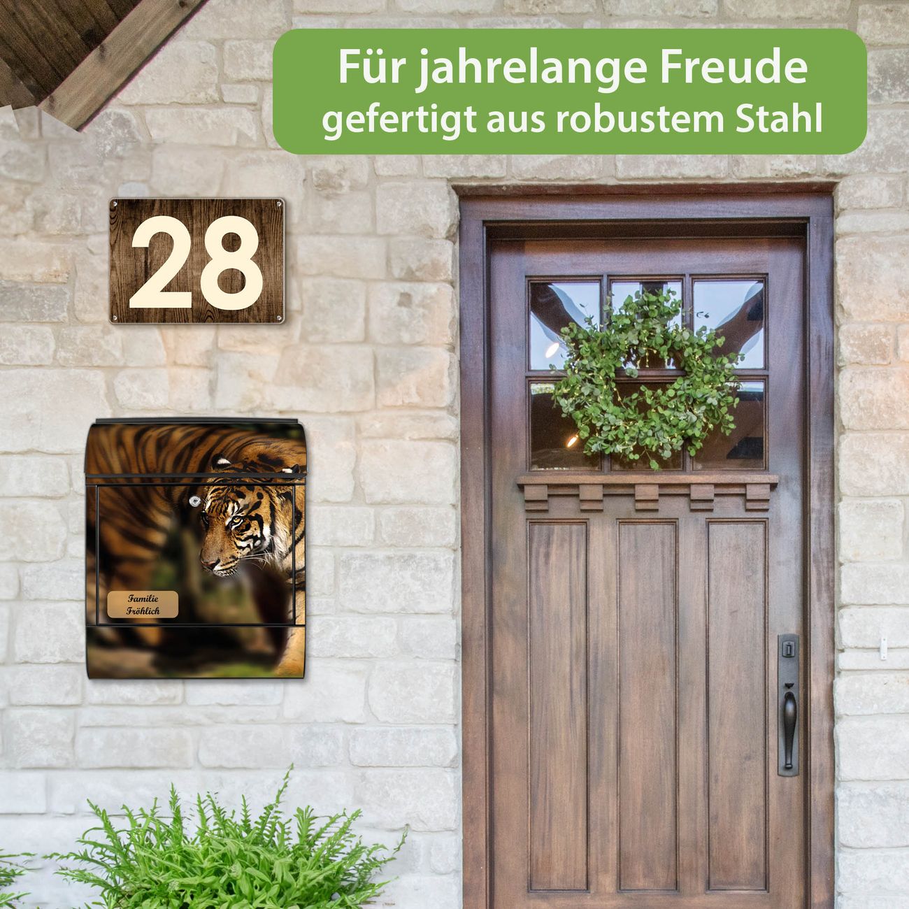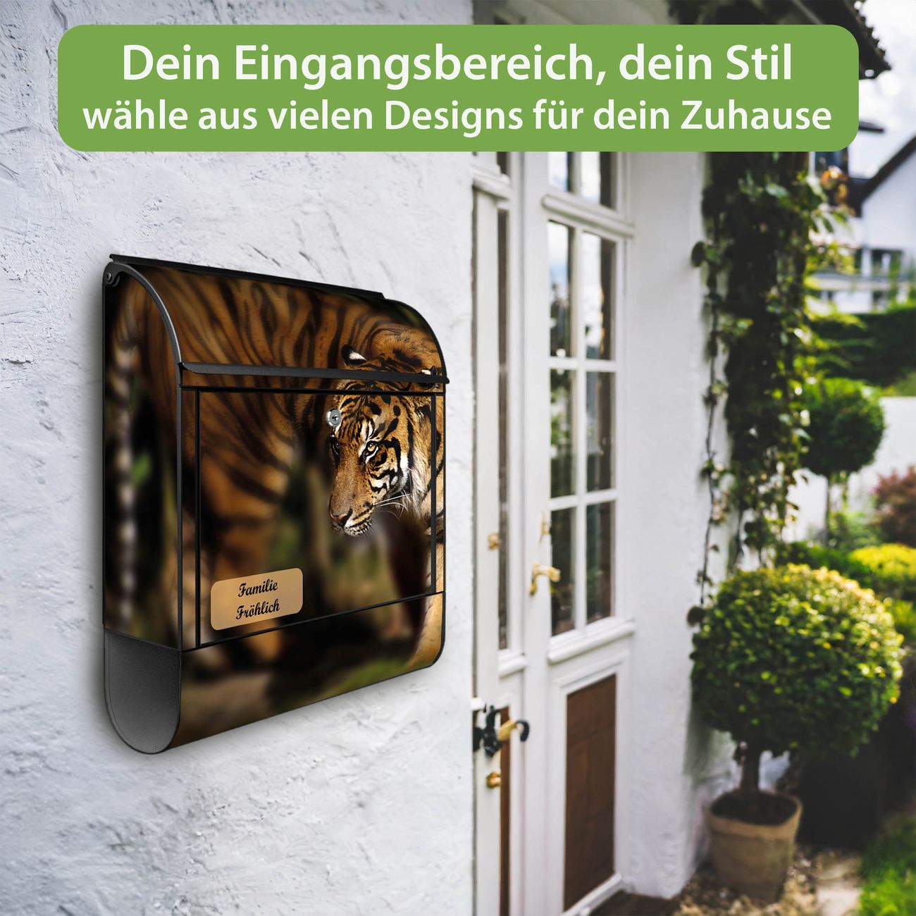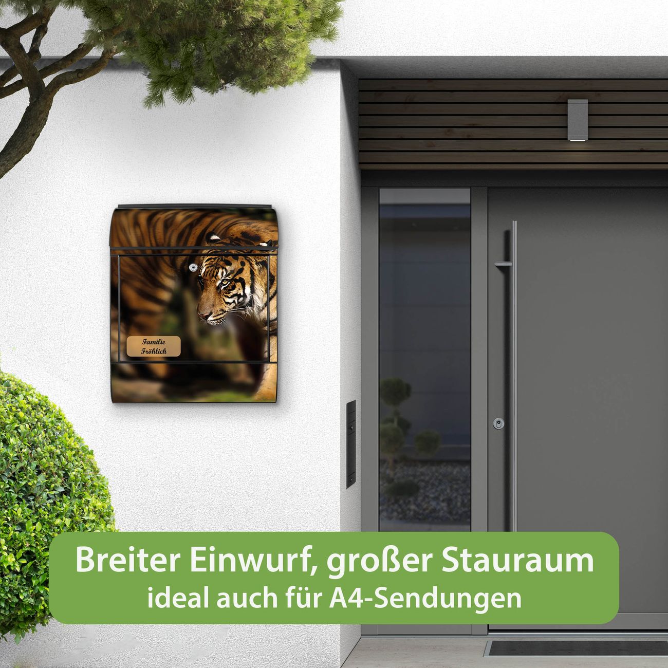 Großer Stahl Briefkasten Motiv Tiger