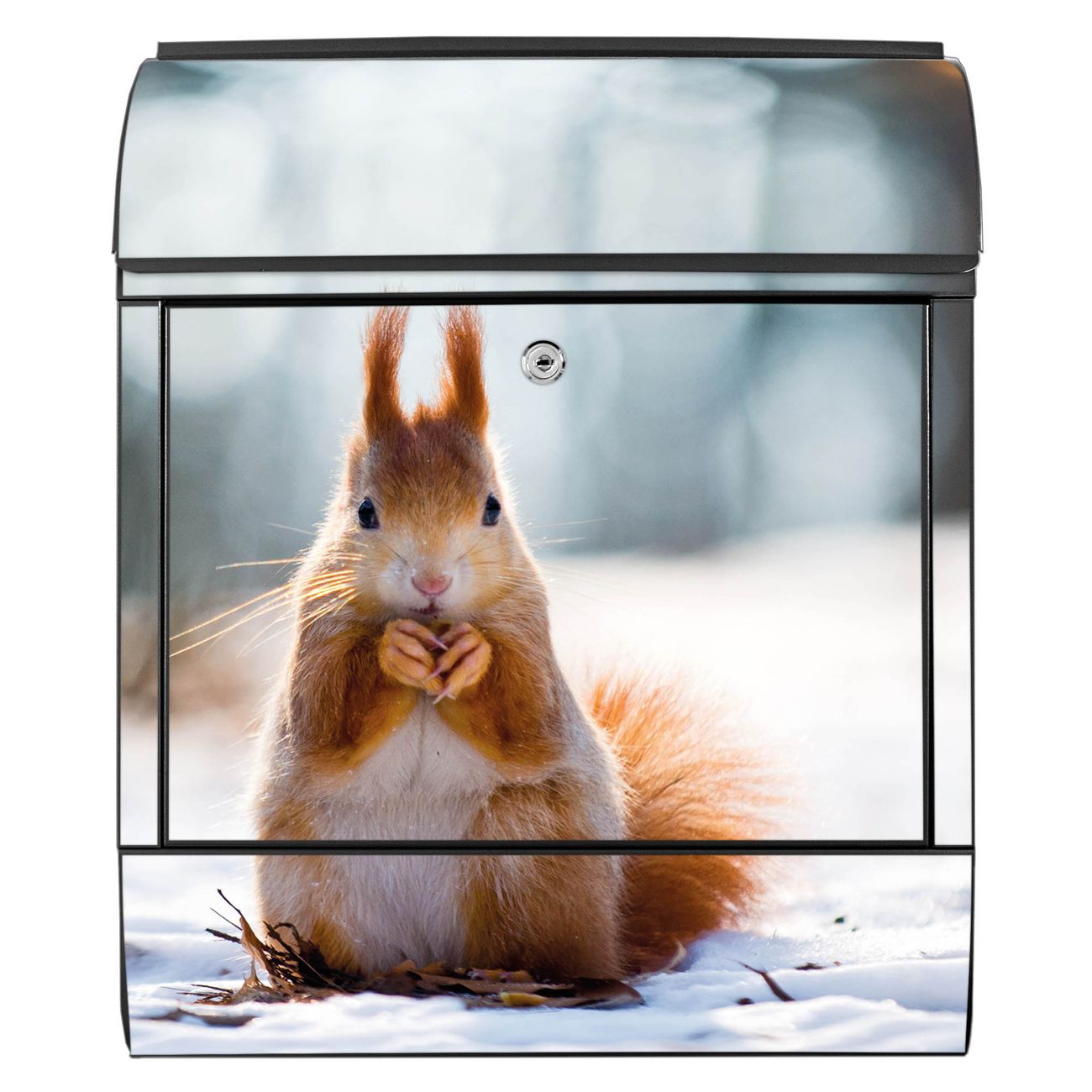DESIGN: Der Postkasten mit Motiv Motiv Tiny Tim hat ein sehr ansprechendes und ausgefallenes Design, damit entlocken Sie Ihren Nachbarn und dem Postboten ein Lächeln. Heben Sie Sich von der tristen grauen Masse ab, ohne auf Funktionalität zu verzichten. DETAILS: Der Postkasten besteht aus pulverbeschichtetem Stahl. Er ist 38x46x12,5cm groß. Das Motiv besteht aus einer wetter- und UV-resistenten Folie, die mit einem Schutzlaminat überzogen ist, sodass der Briefkasten zusätzlich vor Kratzern geschützt ist. Der Briefkasten wird mit Montagematerial, zusätzlich zwei Schlüssel sowie einer Bohrschablone geliefert. NUTZEN: Sie können diesen Briefkasten sowohl als Wandbriefkasten montieren oder einen passenden Ständer kaufen und als Standbriefkasten einbetonieren. Die Größe bietet genügend Platz für Sendungen aller Art, der Einwurf fasst auch größere A4 Sendungen. BANJADO: Ihr Briefkasten wird in Sachsen in einer kleinen Manufaktur von Hand veredelt. Die Motivfolie ist lösungsmittelfrei und schutzlaminiert für einen langen Halt. Wir legen großen Wert auf die Verbindung von Funktionalität und Design. Sie erhalten Handarbeit aus Sachsen.