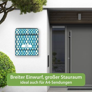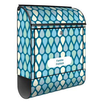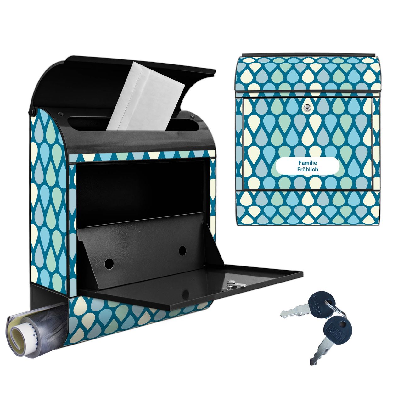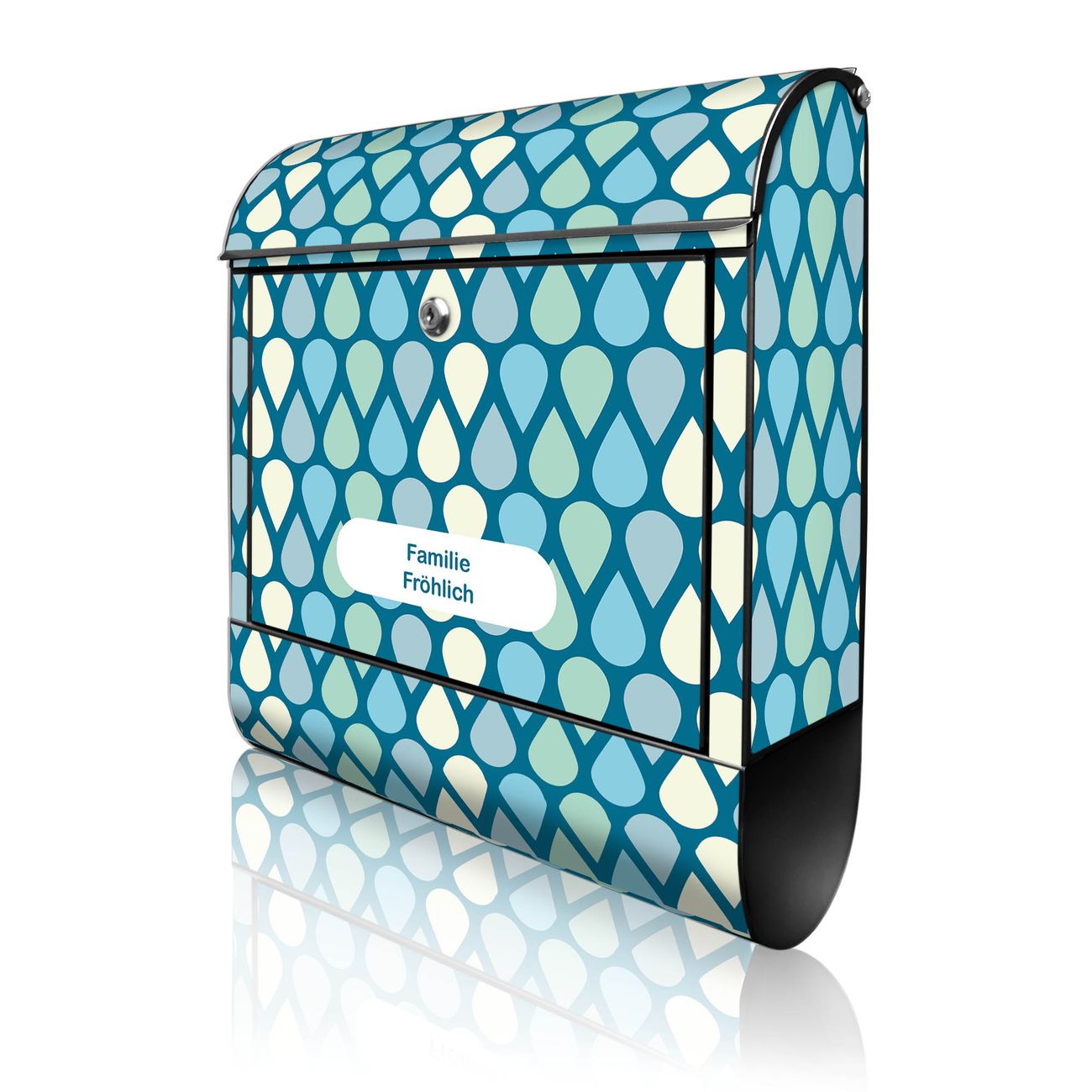 DESIGN: Der Postkasten mit Motiv Motiv Tropfen hat ein sehr ansprechendes und ausgefallenes Design, damit entlocken Sie Ihren Nachbarn und dem Postboten ein Lächeln. Heben Sie Sich von der tristen grauen Masse ab, ohne auf Funktionalität zu verzichten. DETAILS: Der Postkasten besteht aus pulverbeschichtetem Stahl. Er ist 38x46x12,5cm groß. Das Motiv besteht aus einer wetter- und UV-resistenten Folie, die mit einem Schutzlaminat überzogen ist, sodass der Briefkasten zusätzlich vor Kratzern geschützt ist. Der Briefkasten wird mit Montagematerial, zusätzlich zwei Schlüssel sowie einer Bohrschablone geliefert. NUTZEN: Sie können diesen Briefkasten sowohl als Wandbriefkasten montieren oder einen passenden Ständer kaufen und als Standbriefkasten einbetonieren. Die Größe bietet genügend Platz für Sendungen aller Art, der Einwurf fasst auch größere A4 Sendungen. BANJADO: Ihr Briefkasten wird in Sachsen in einer kleinen Manufaktur von Hand veredelt. Die Motivfolie ist lösungsmittelfrei und schutzlaminiert für einen langen Halt. Wir legen großen Wert auf die Verbindung von Funktionalität und Design. Sie erhalten Handarbeit aus Sachsen.