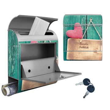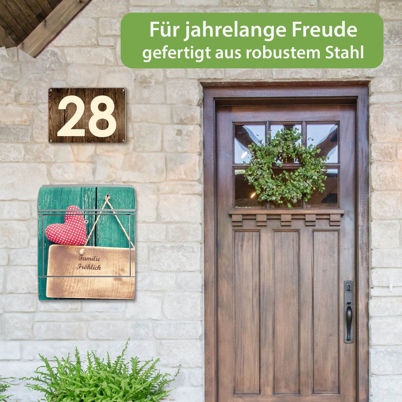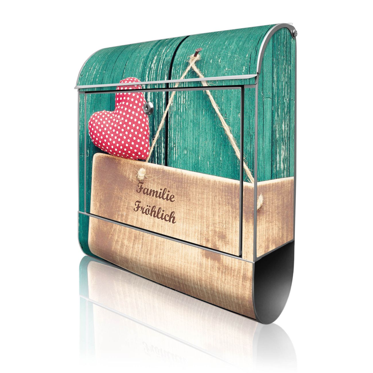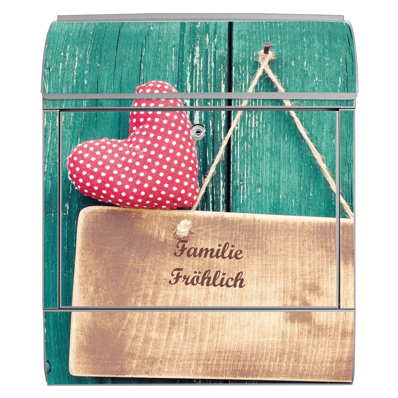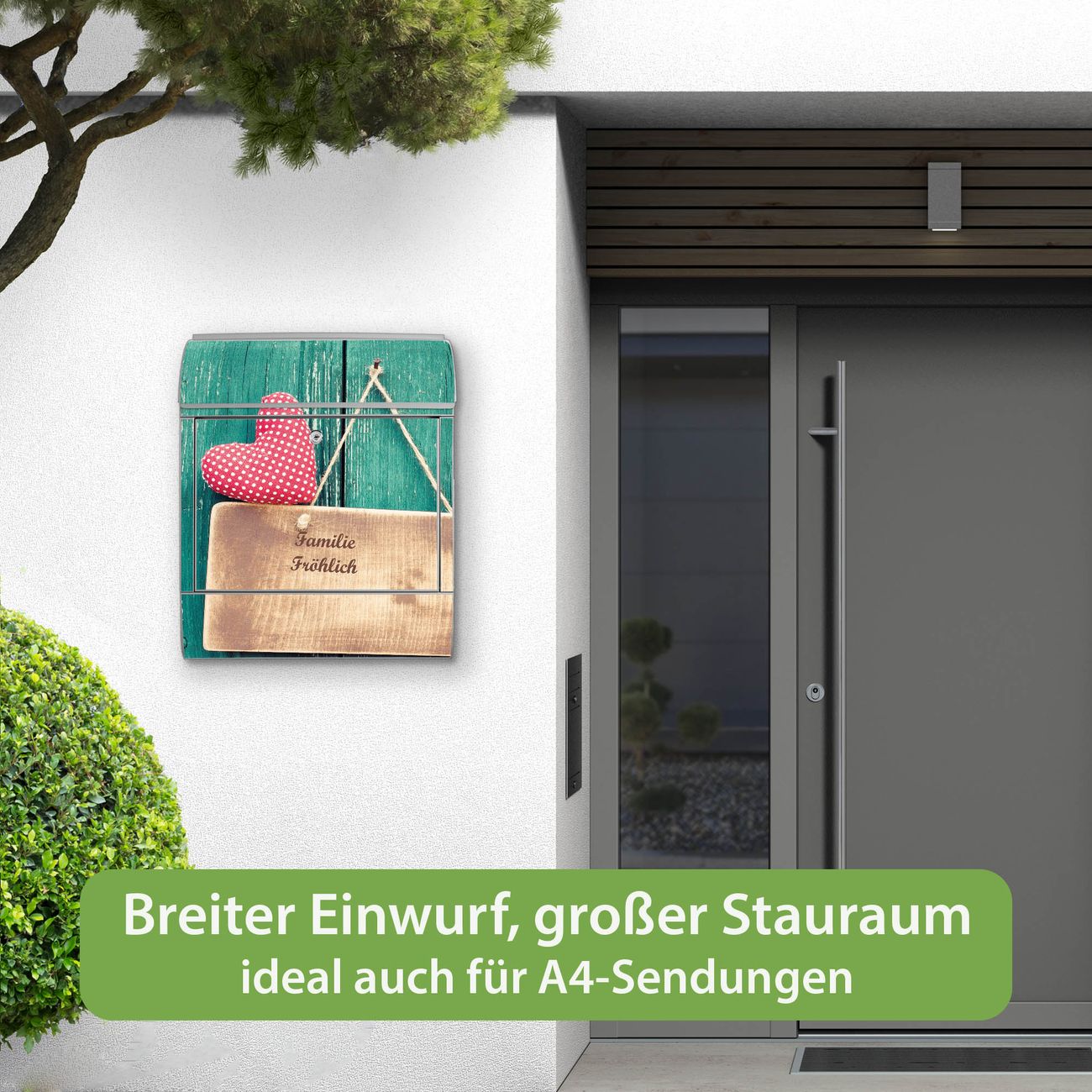 Großer Stahl Briefkasten Motiv Tür mit Herz
