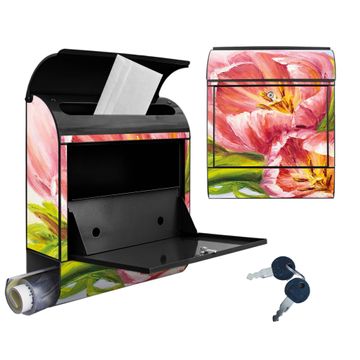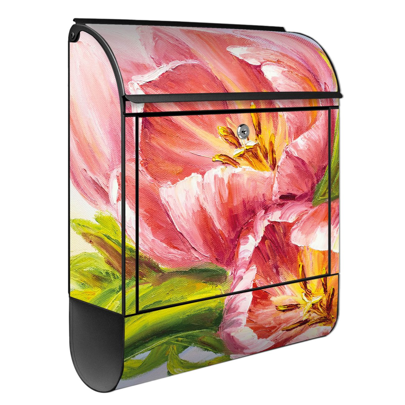 Großer Stahl Briefkasten Motiv Tulpen Detail