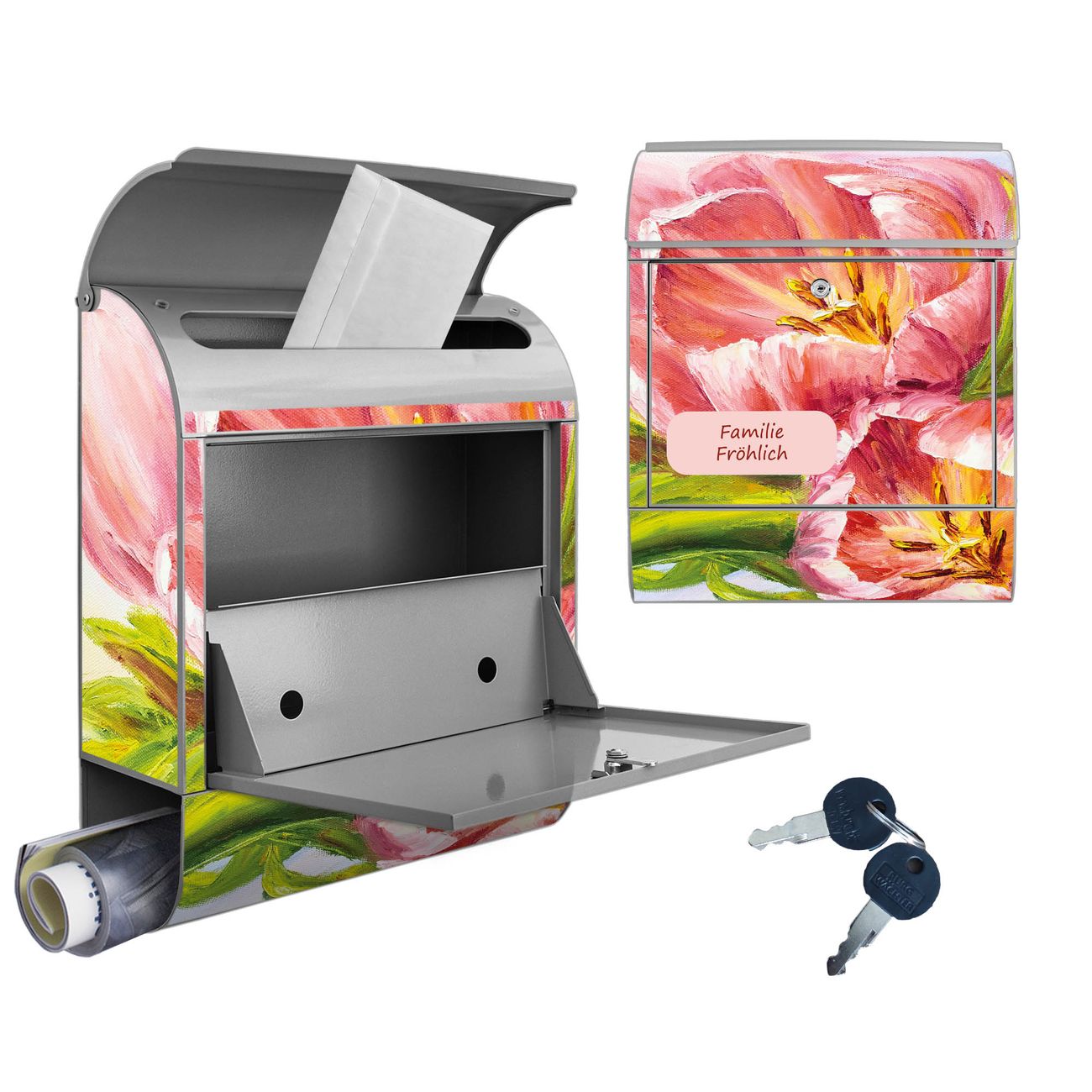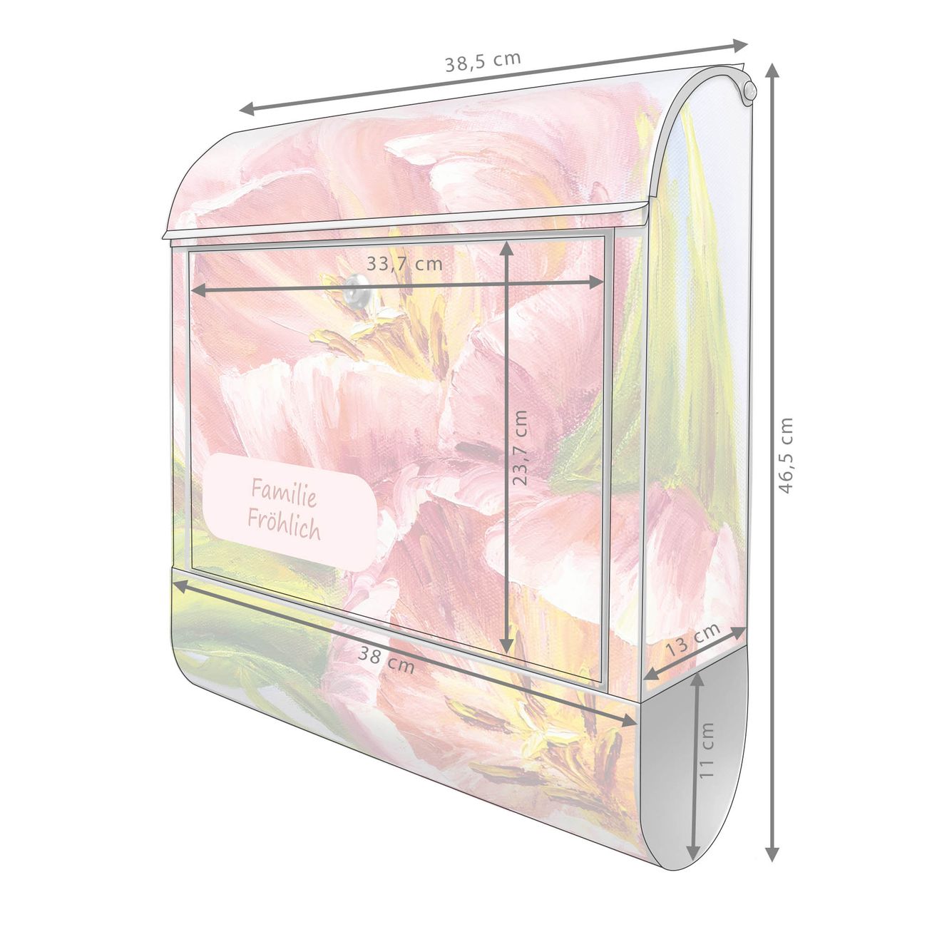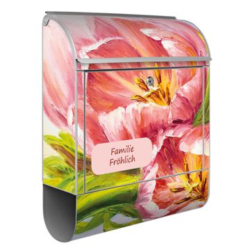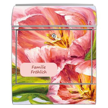 Großer Stahl Briefkasten Motiv Tulpen Detail