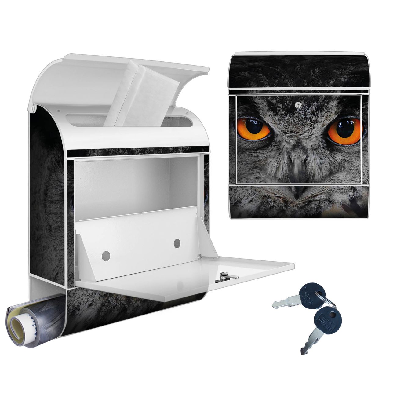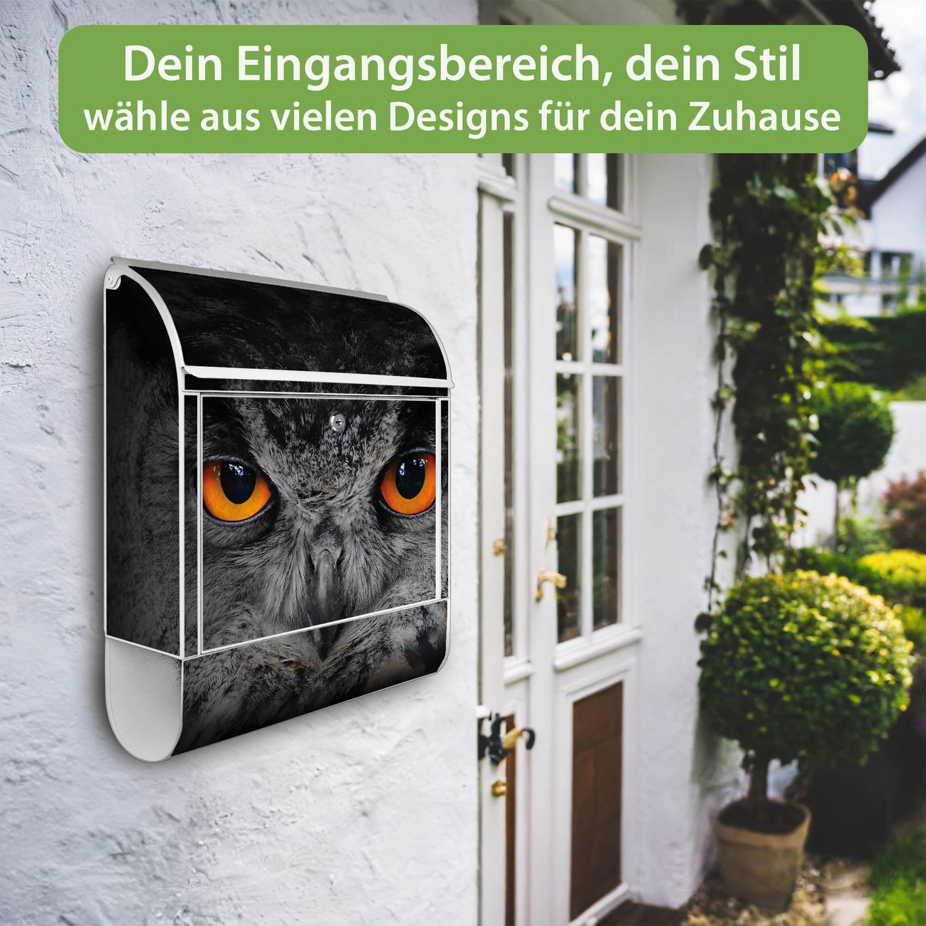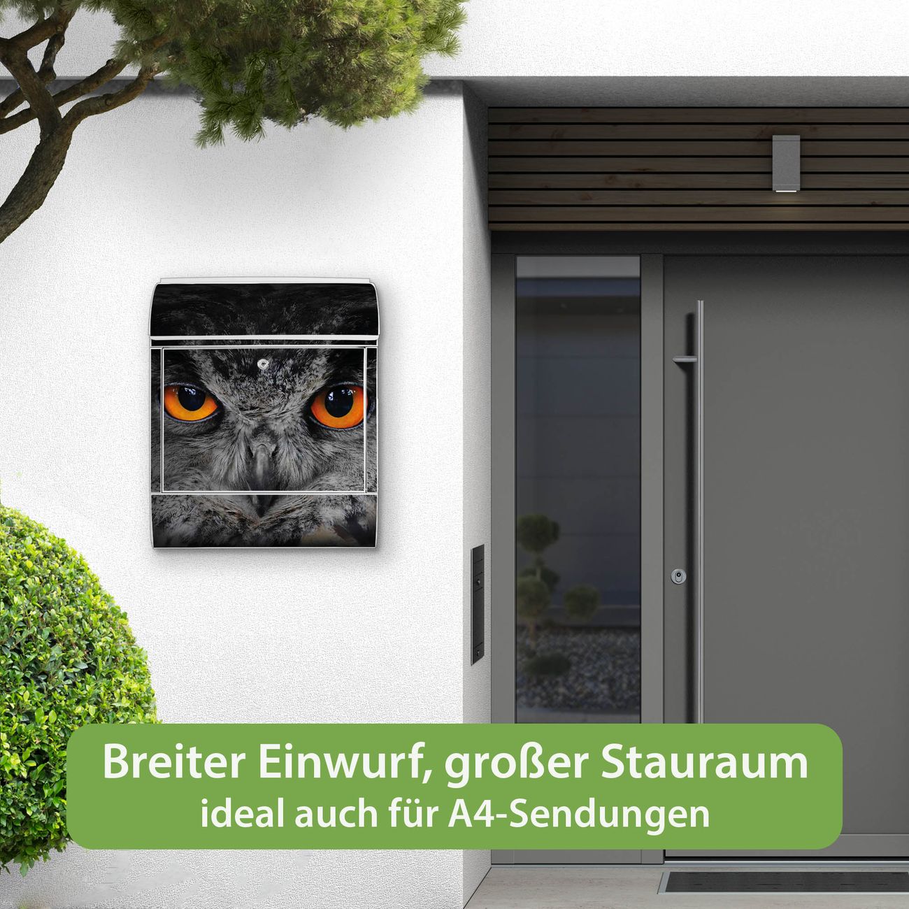 Großer Stahl Briefkasten Motiv Uhu