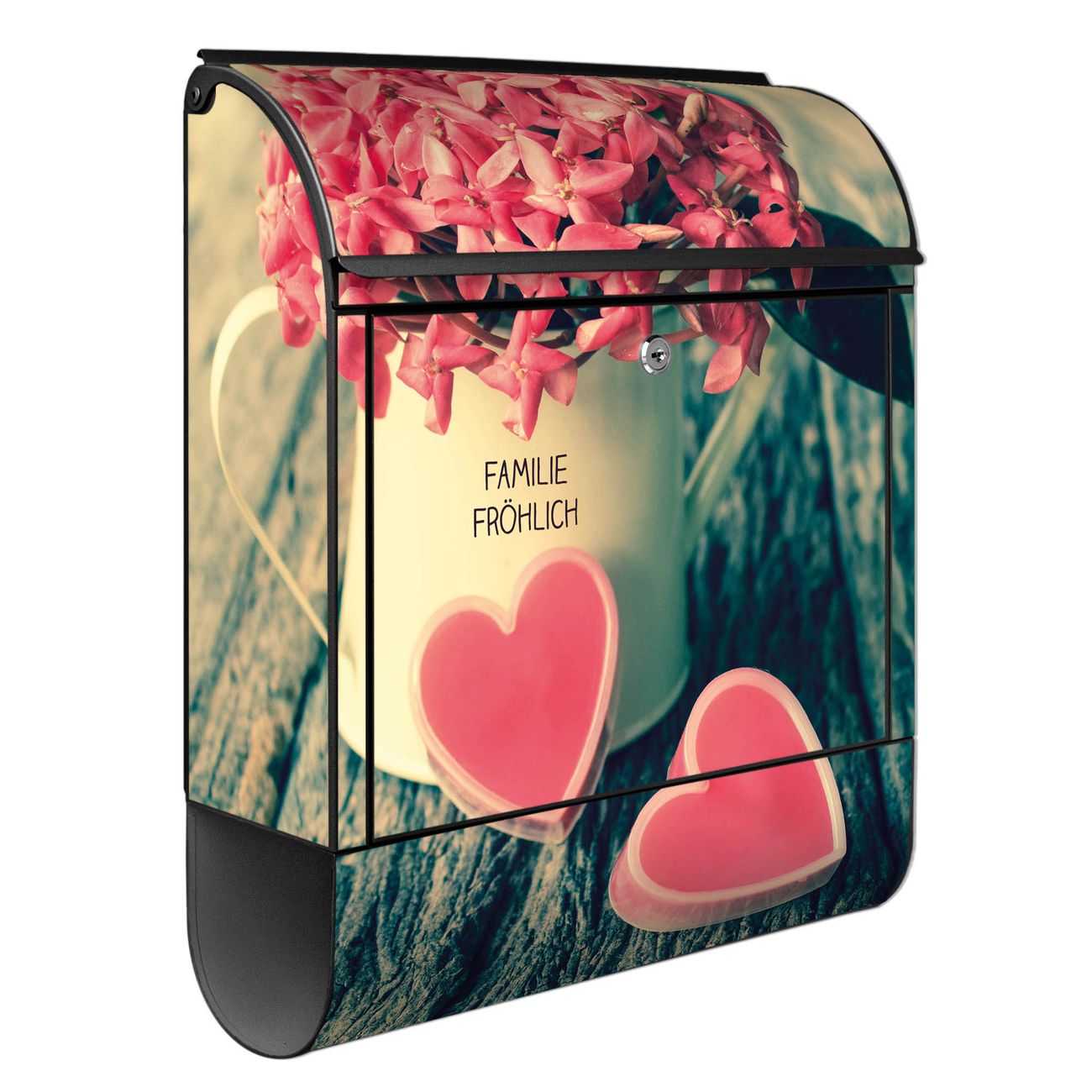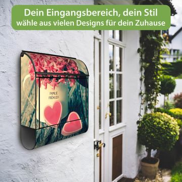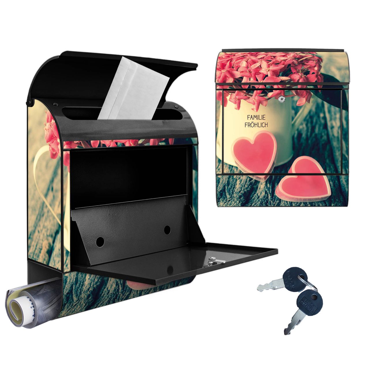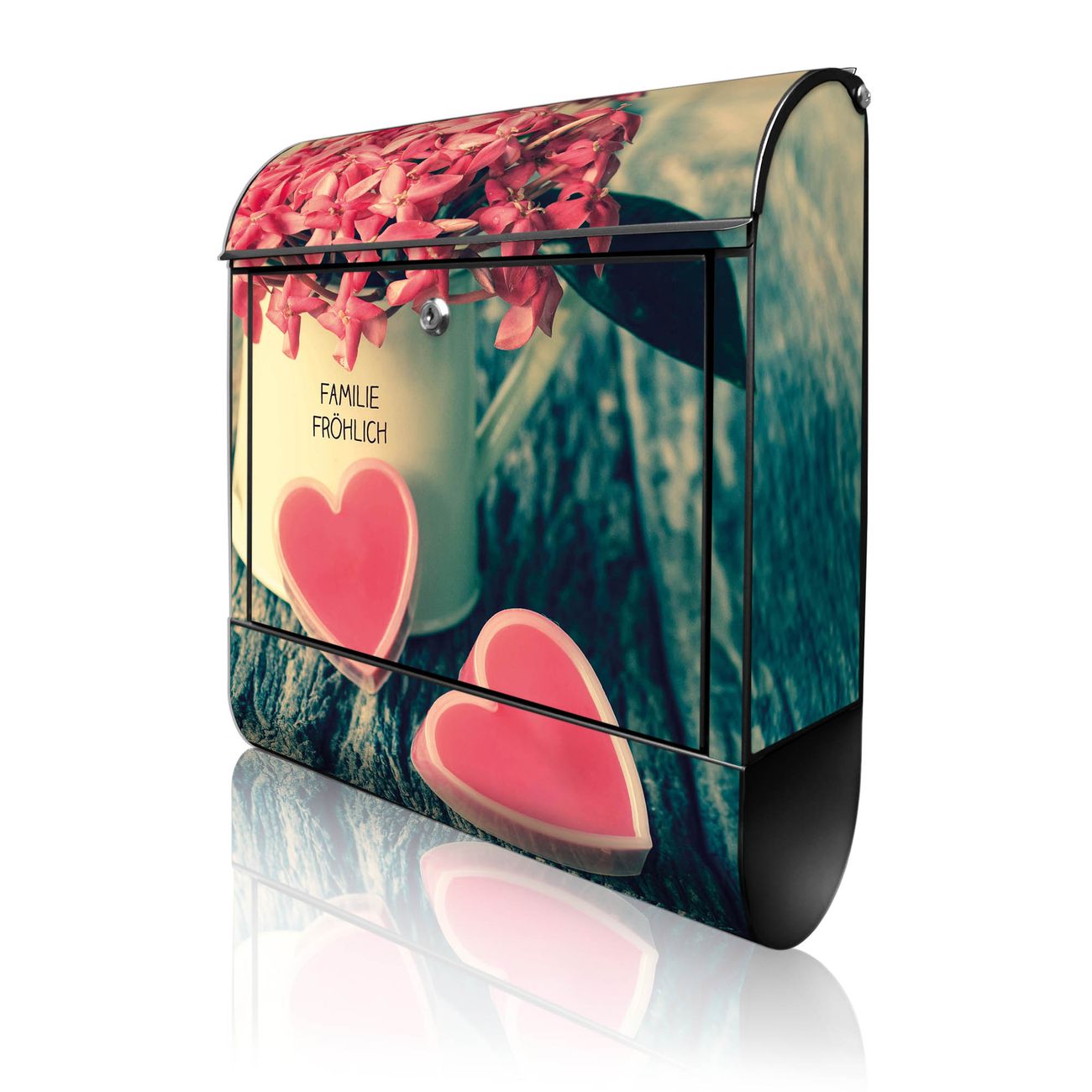 DESIGN: Der Postkasten mit Motiv Motiv Valentin hat ein sehr ansprechendes und ausgefallenes Design, damit entlocken Sie Ihren Nachbarn und dem Postboten ein Lächeln. Heben Sie Sich von der tristen grauen Masse ab, ohne auf Funktionalität zu verzichten. DETAILS: Der Postkasten besteht aus pulverbeschichtetem Stahl. Er ist 38x46x12,5cm groß. Das Motiv besteht aus einer wetter- und UV-resistenten Folie, die mit einem Schutzlaminat überzogen ist, sodass der Briefkasten zusätzlich vor Kratzern geschützt ist. Der Briefkasten wird mit Montagematerial, zusätzlich zwei Schlüssel sowie einer Bohrschablone geliefert. NUTZEN: Sie können diesen Briefkasten sowohl als Wandbriefkasten montieren oder einen passenden Ständer kaufen und als Standbriefkasten einbetonieren. Die Größe bietet genügend Platz für Sendungen aller Art, der Einwurf fasst auch größere A4 Sendungen. BANJADO: Ihr Briefkasten wird in Sachsen in einer kleinen Manufaktur von Hand veredelt. Die Motivfolie ist lösungsmittelfrei und schutzlaminiert für einen langen Halt. Wir legen großen Wert auf die Verbindung von Funktionalität und Design. Sie erhalten Handarbeit aus Sachsen.