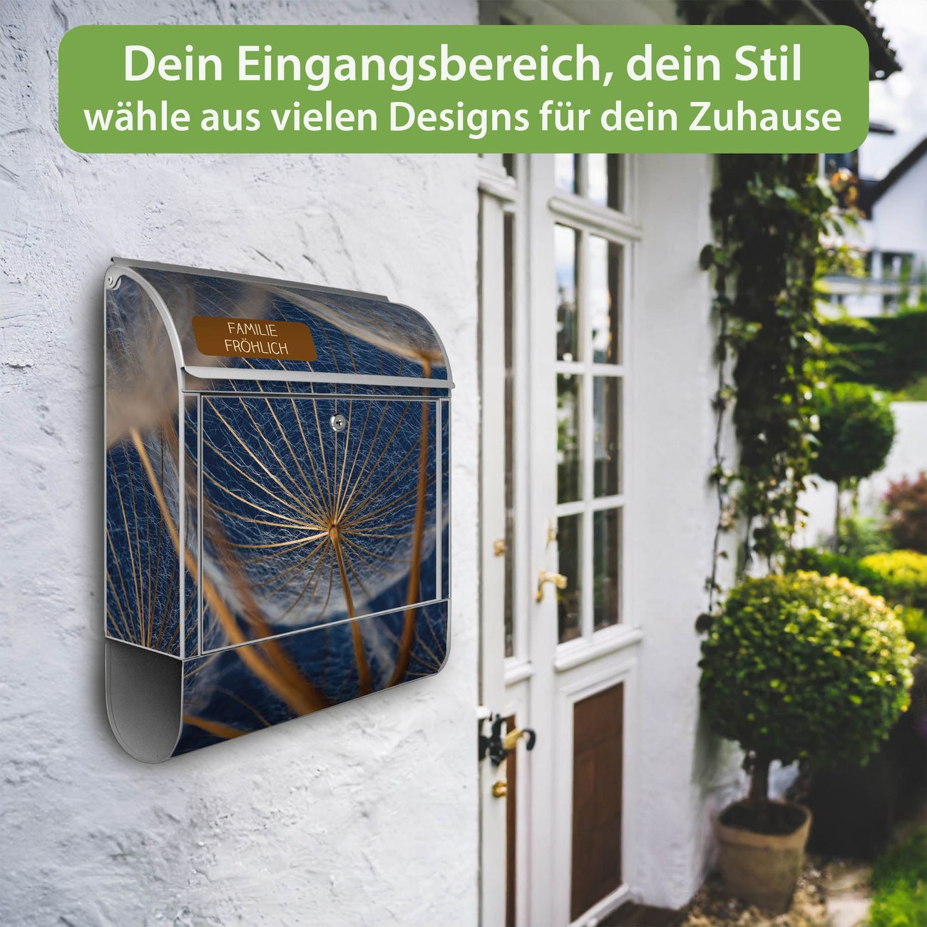 Großer Stahl Briefkasten Motiv Verblüht