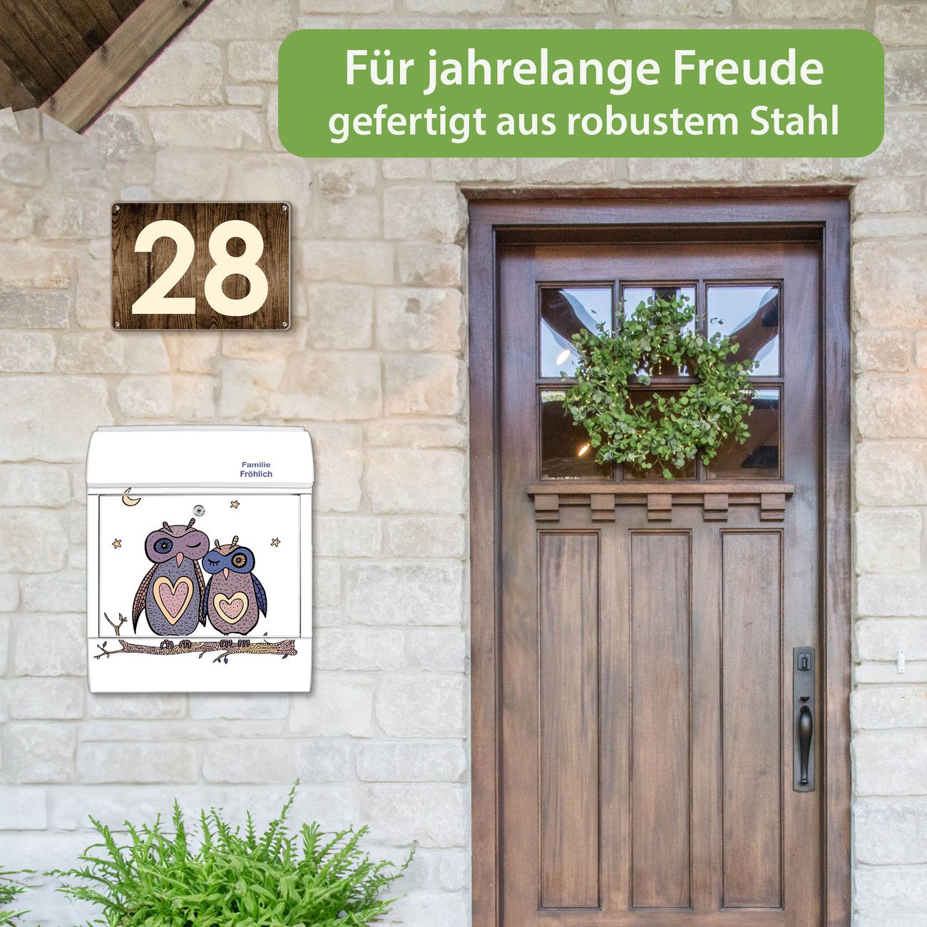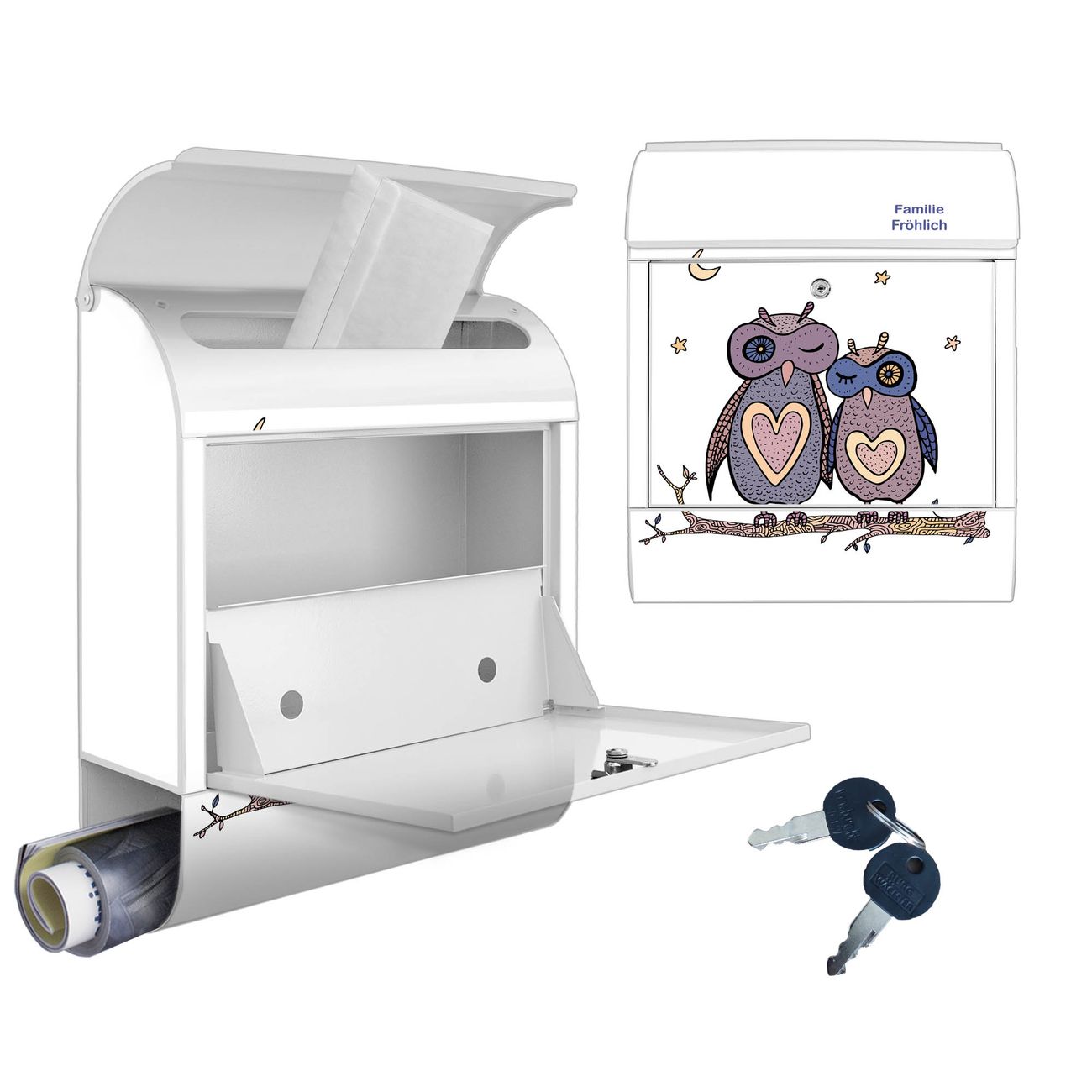 Großer Stahl Briefkasten Motiv Verliebte Eulen