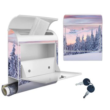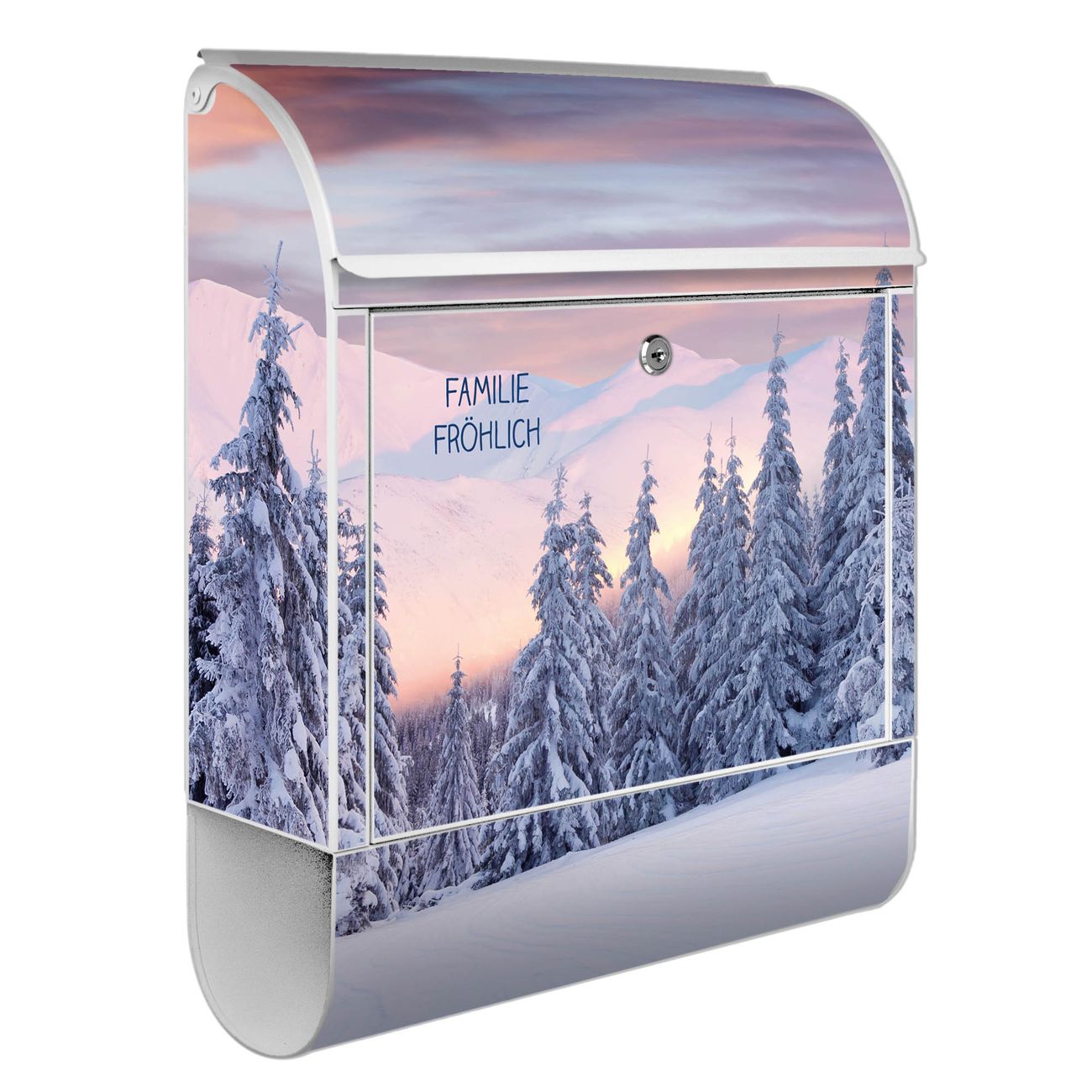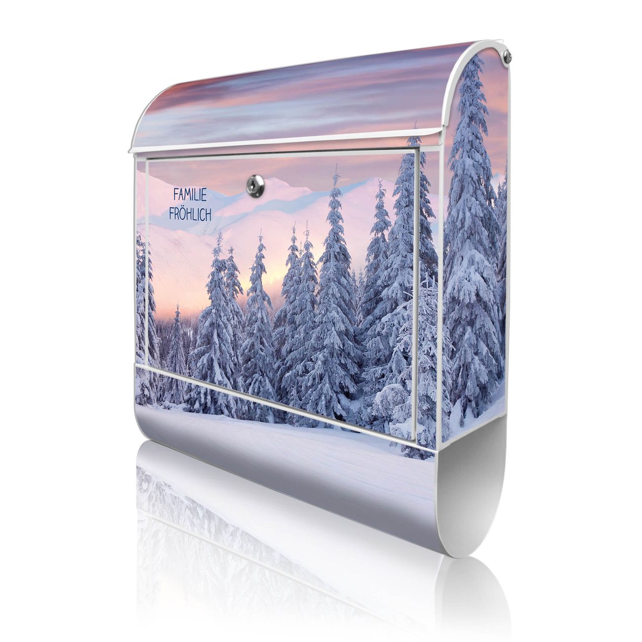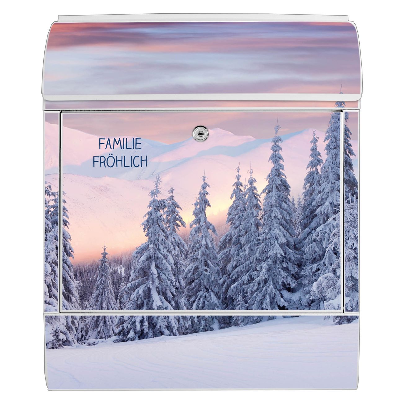 Großer Stahl Briefkasten Motiv Verschneite Berge