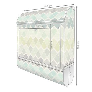 DESIGN: Der Postkasten mit Motiv Motiv Vier Farben Grün hat ein sehr ansprechendes und ausgefallenes Design, damit entlocken Sie Ihren Nachbarn und dem Postboten ein Lächeln. Heben Sie Sich von der tristen grauen Masse ab, ohne auf Funktionalität zu verzichten. DETAILS: Der Postkasten besteht aus pulverbeschichtetem Stahl. Er ist 38x46x12,5cm groß. Das Motiv besteht aus einer wetter- und UV-resistenten Folie, die mit einem Schutzlaminat überzogen ist, sodass der Briefkasten zusätzlich vor Kratzern geschützt ist. Der Briefkasten wird mit Montagematerial, zusätzlich zwei Schlüssel sowie einer Bohrschablone geliefert. NUTZEN: Sie können diesen Briefkasten sowohl als Wandbriefkasten montieren oder einen passenden Ständer kaufen und als Standbriefkasten einbetonieren. Die Größe bietet genügend Platz für Sendungen aller Art, der Einwurf fasst auch größere A4 Sendungen. BANJADO: Ihr Briefkasten wird in Sachsen in einer kleinen Manufaktur von Hand veredelt. Die Motivfolie ist lösungsmittelfrei und schutzlaminiert für einen langen Halt. Wir legen großen Wert auf die Verbindung von Funktionalität und Design. Sie erhalten Handarbeit aus Sachsen.