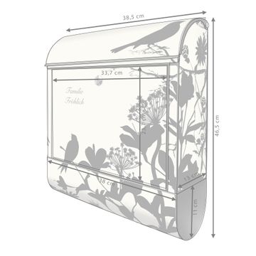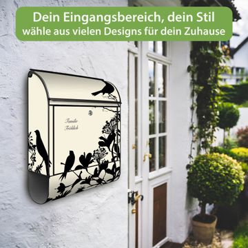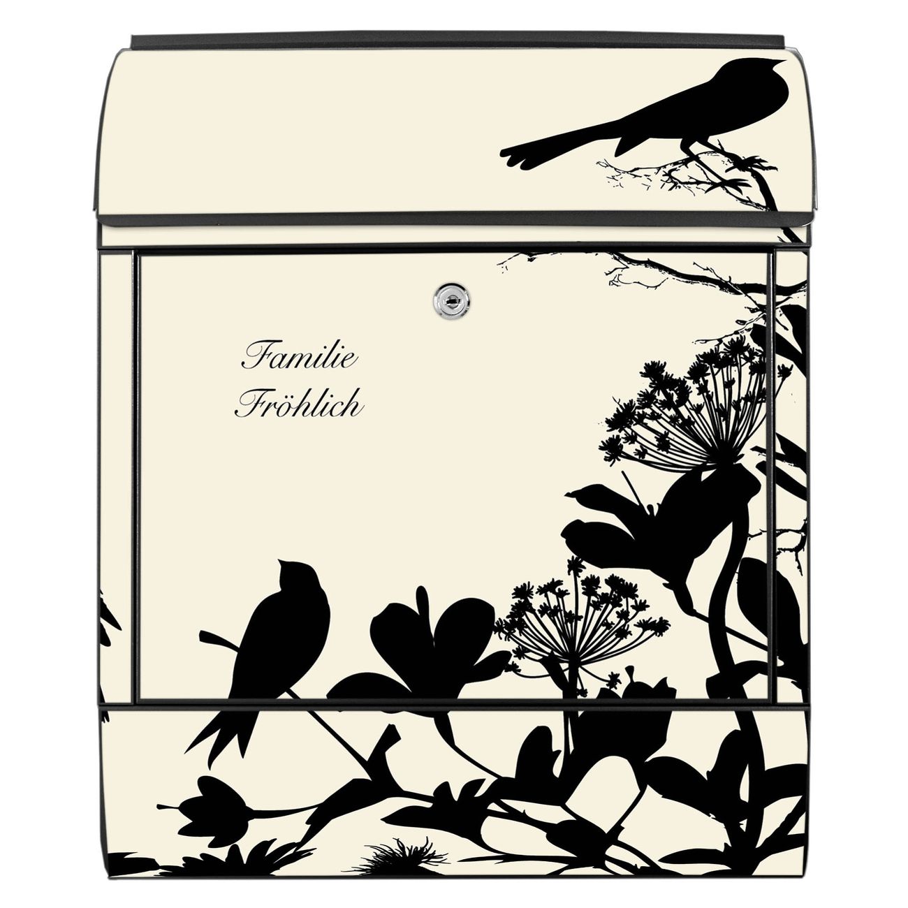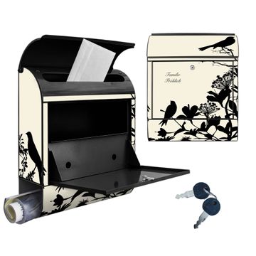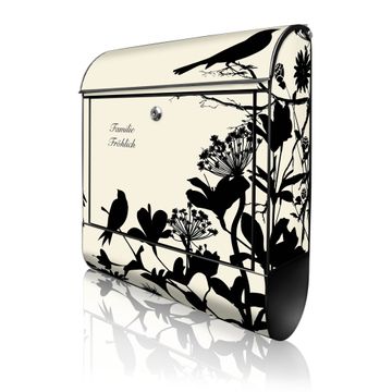 Großer Stahl Briefkasten Motiv Vögel Schattenriß