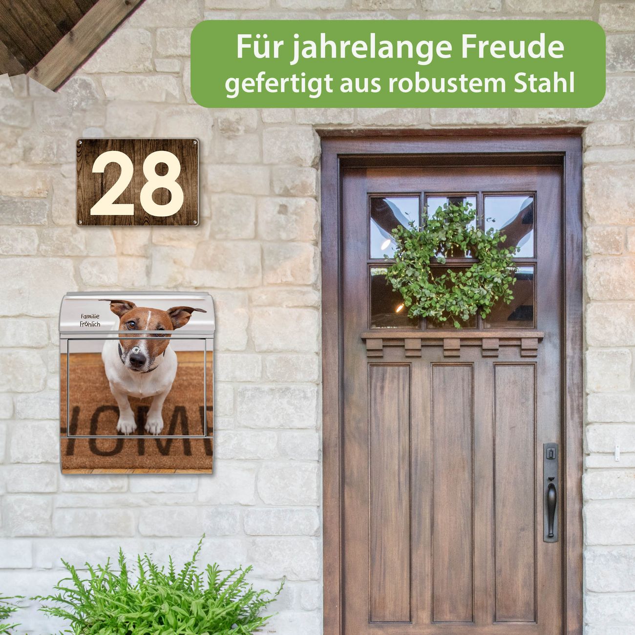 Großer Stahl Briefkasten Motiv Wachhund Jack Russel