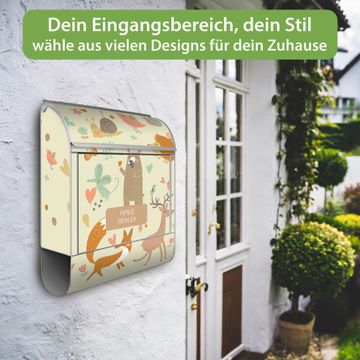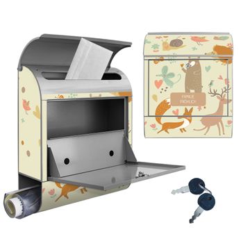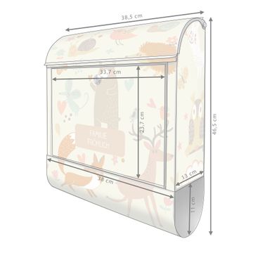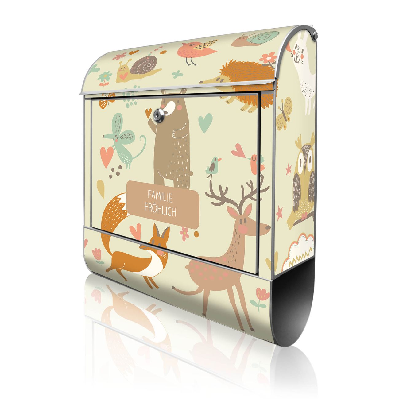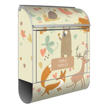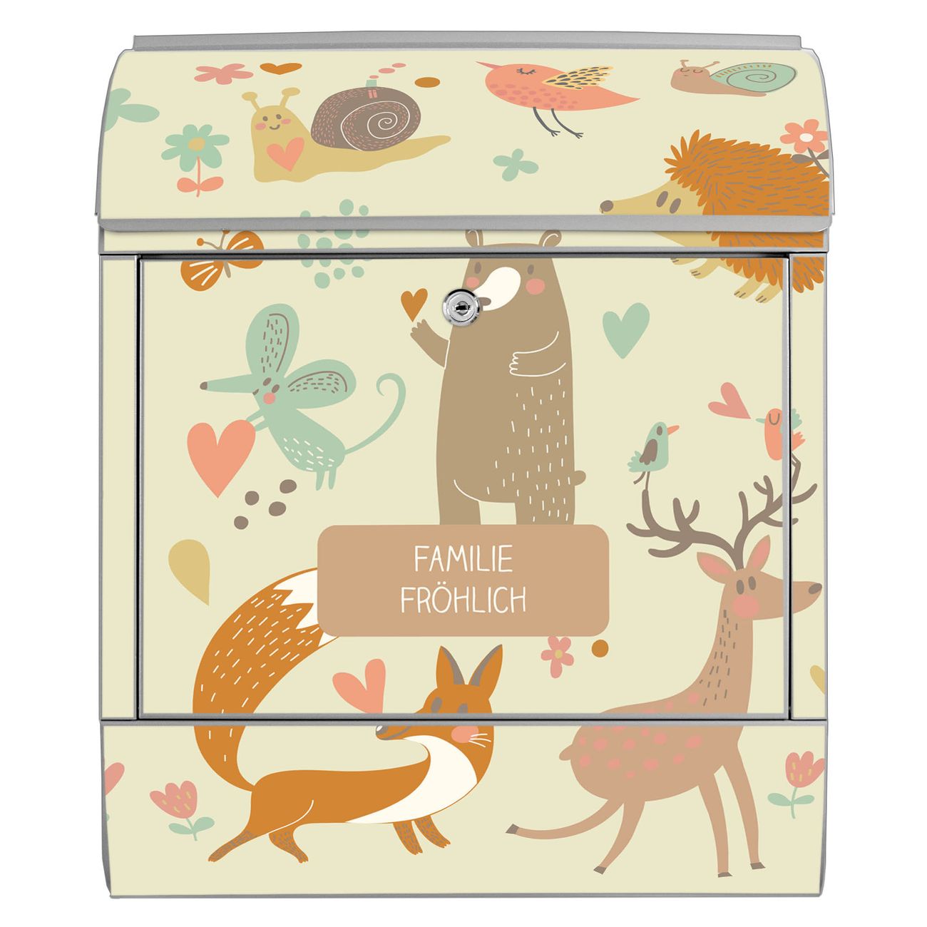 DESIGN: Der Postkasten mit Motiv Motiv Waldtiere hat ein sehr ansprechendes und ausgefallenes Design, damit entlocken Sie Ihren Nachbarn und dem Postboten ein Lächeln. Heben Sie Sich von der tristen grauen Masse ab, ohne auf Funktionalität zu verzichten. DETAILS: Der Postkasten besteht aus pulverbeschichtetem Stahl. Er ist 38x46x12,5cm groß. Das Motiv besteht aus einer wetter- und UV-resistenten Folie, die mit einem Schutzlaminat überzogen ist, sodass der Briefkasten zusätzlich vor Kratzern geschützt ist. Der Briefkasten wird mit Montagematerial, zusätzlich zwei Schlüssel sowie einer Bohrschablone geliefert. NUTZEN: Sie können diesen Briefkasten sowohl als Wandbriefkasten montieren oder einen passenden Ständer kaufen und als Standbriefkasten einbetonieren. Die Größe bietet genügend Platz für Sendungen aller Art, der Einwurf fasst auch größere A4 Sendungen. BANJADO: Ihr Briefkasten wird in Sachsen in einer kleinen Manufaktur von Hand veredelt. Die Motivfolie ist lösungsmittelfrei und schutzlaminiert für einen langen Halt. Wir legen großen Wert auf die Verbindung von Funktionalität und Design. Sie erhalten Handarbeit aus Sachsen.