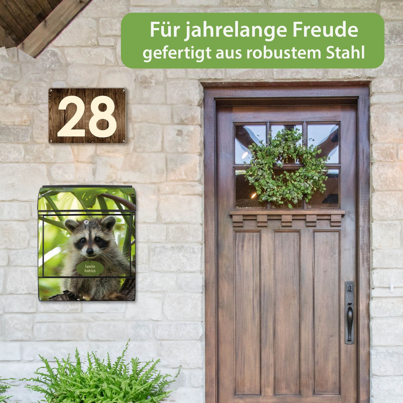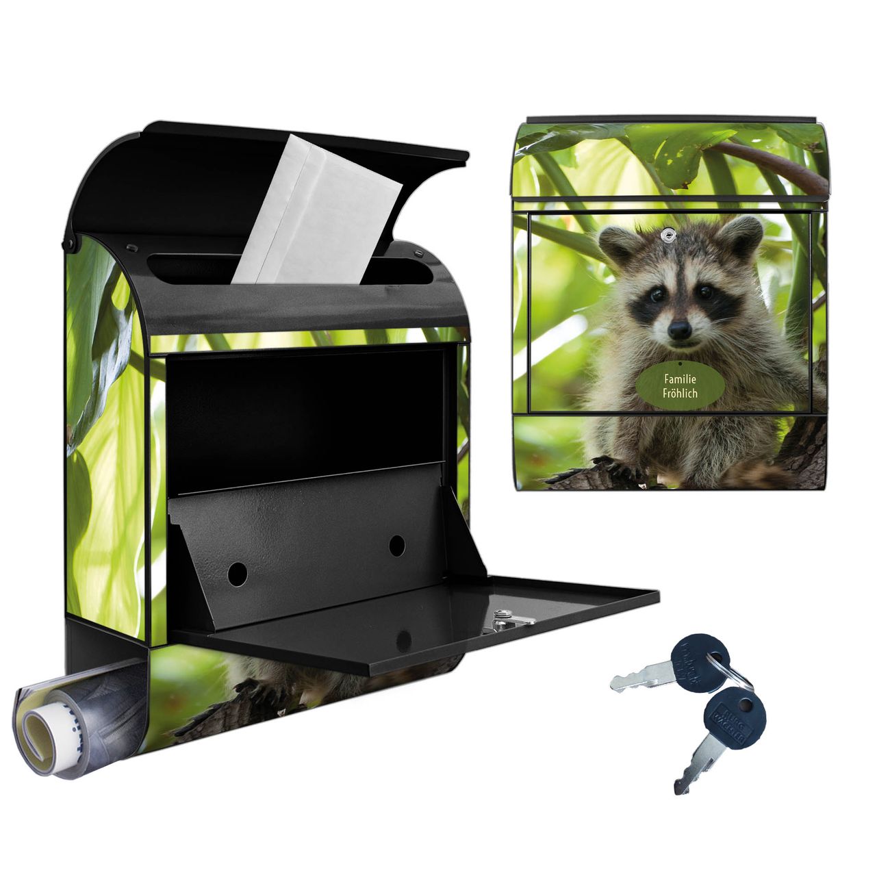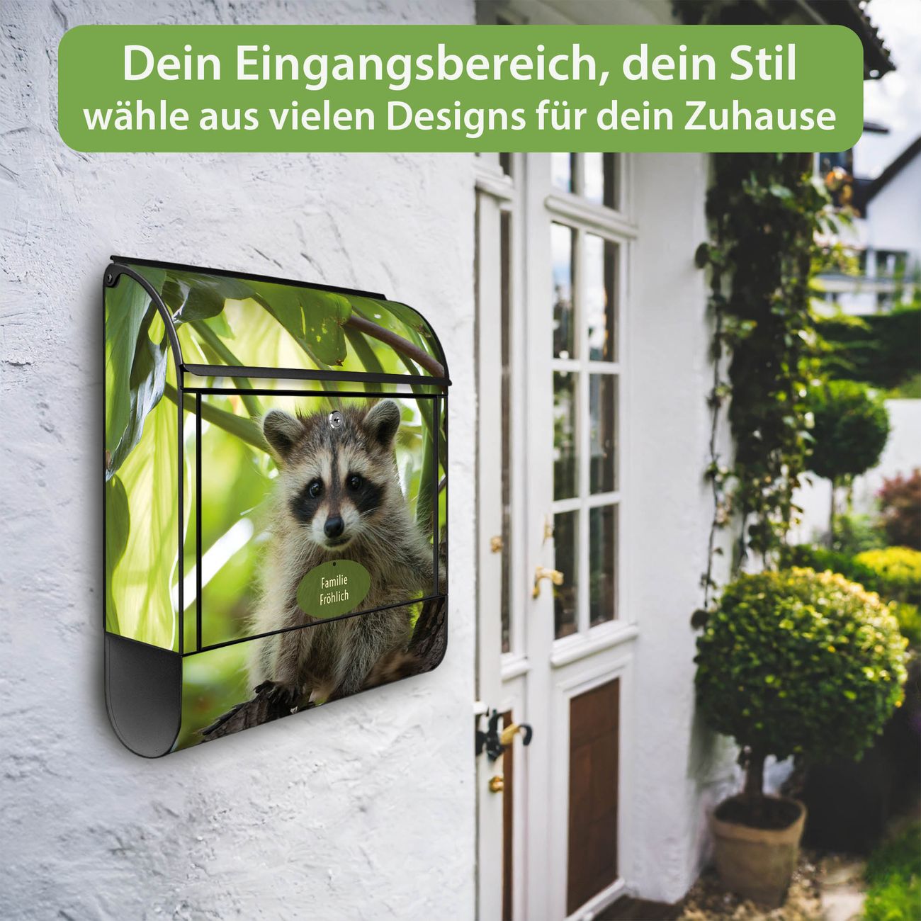 Großer Stahl Briefkasten Motiv Waschbär
