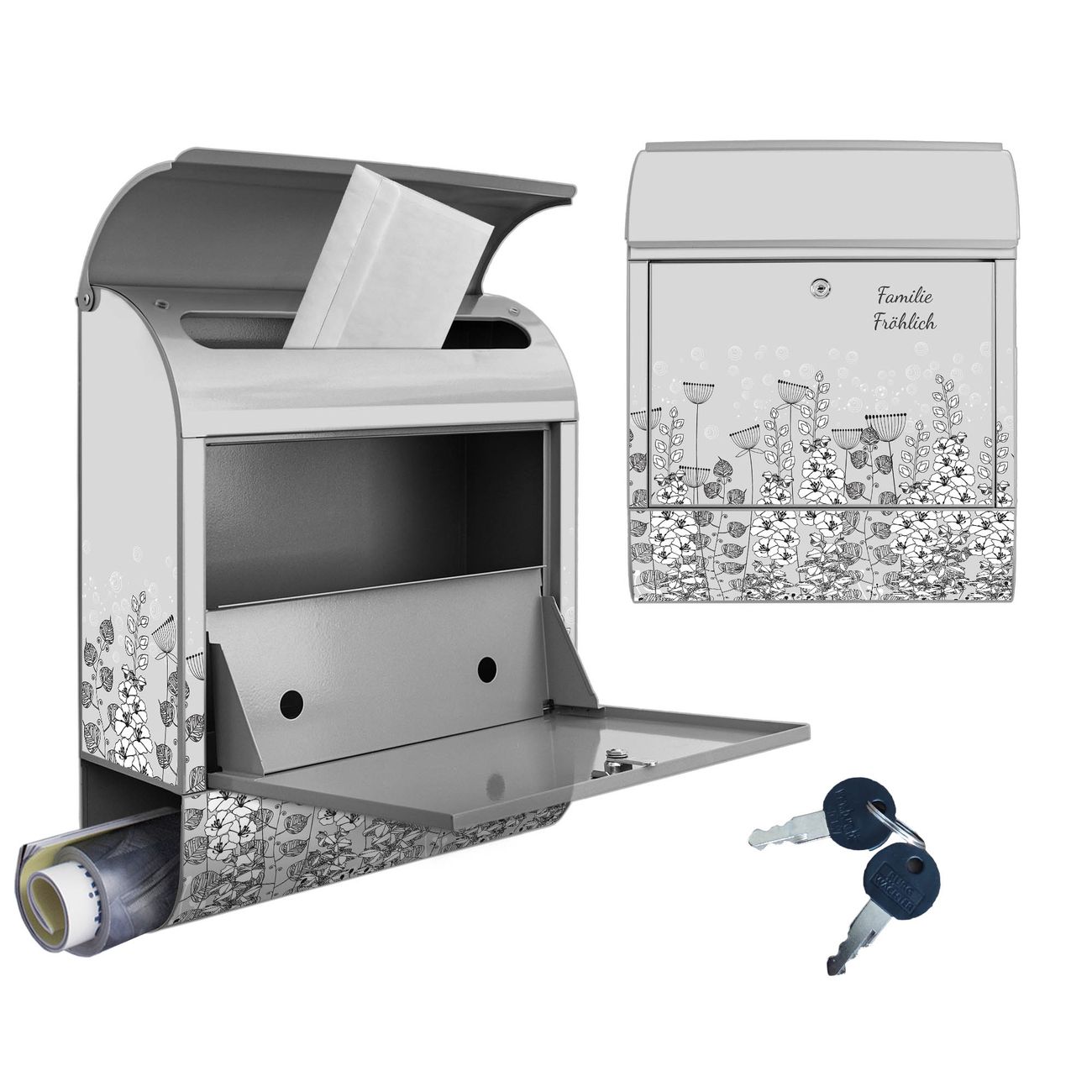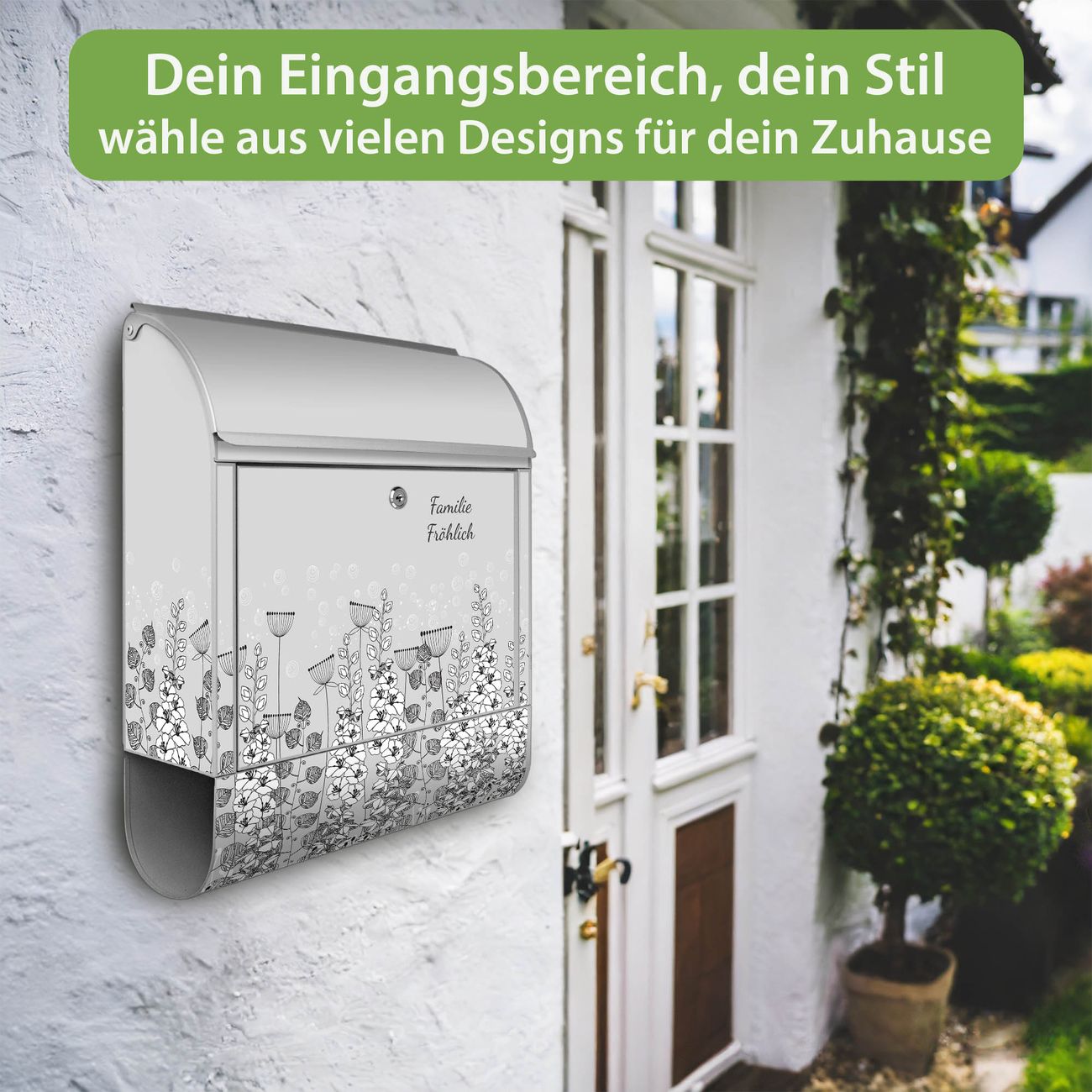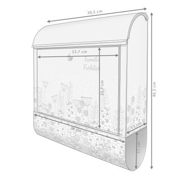 DESIGN: Der Postkasten mit Motiv Motiv Wegesrand hat ein sehr ansprechendes und ausgefallenes Design, damit entlocken Sie Ihren Nachbarn und dem Postboten ein Lächeln. Heben Sie Sich von der tristen grauen Masse ab, ohne auf Funktionalität zu verzichten. DETAILS: Der Postkasten besteht aus pulverbeschichtetem Stahl. Er ist 38x46x12,5cm groß. Das Motiv besteht aus einer wetter- und UV-resistenten Folie, die mit einem Schutzlaminat überzogen ist, sodass der Briefkasten zusätzlich vor Kratzern geschützt ist. Der Briefkasten wird mit Montagematerial, zusätzlich zwei Schlüssel sowie einer Bohrschablone geliefert. NUTZEN: Sie können diesen Briefkasten sowohl als Wandbriefkasten montieren oder einen passenden Ständer kaufen und als Standbriefkasten einbetonieren. Die Größe bietet genügend Platz für Sendungen aller Art, der Einwurf fasst auch größere A4 Sendungen. BANJADO: Ihr Briefkasten wird in Sachsen in einer kleinen Manufaktur von Hand veredelt. Die Motivfolie ist lösungsmittelfrei und schutzlaminiert für einen langen Halt. Wir legen großen Wert auf die Verbindung von Funktionalität und Design. Sie erhalten Handarbeit aus Sachsen.