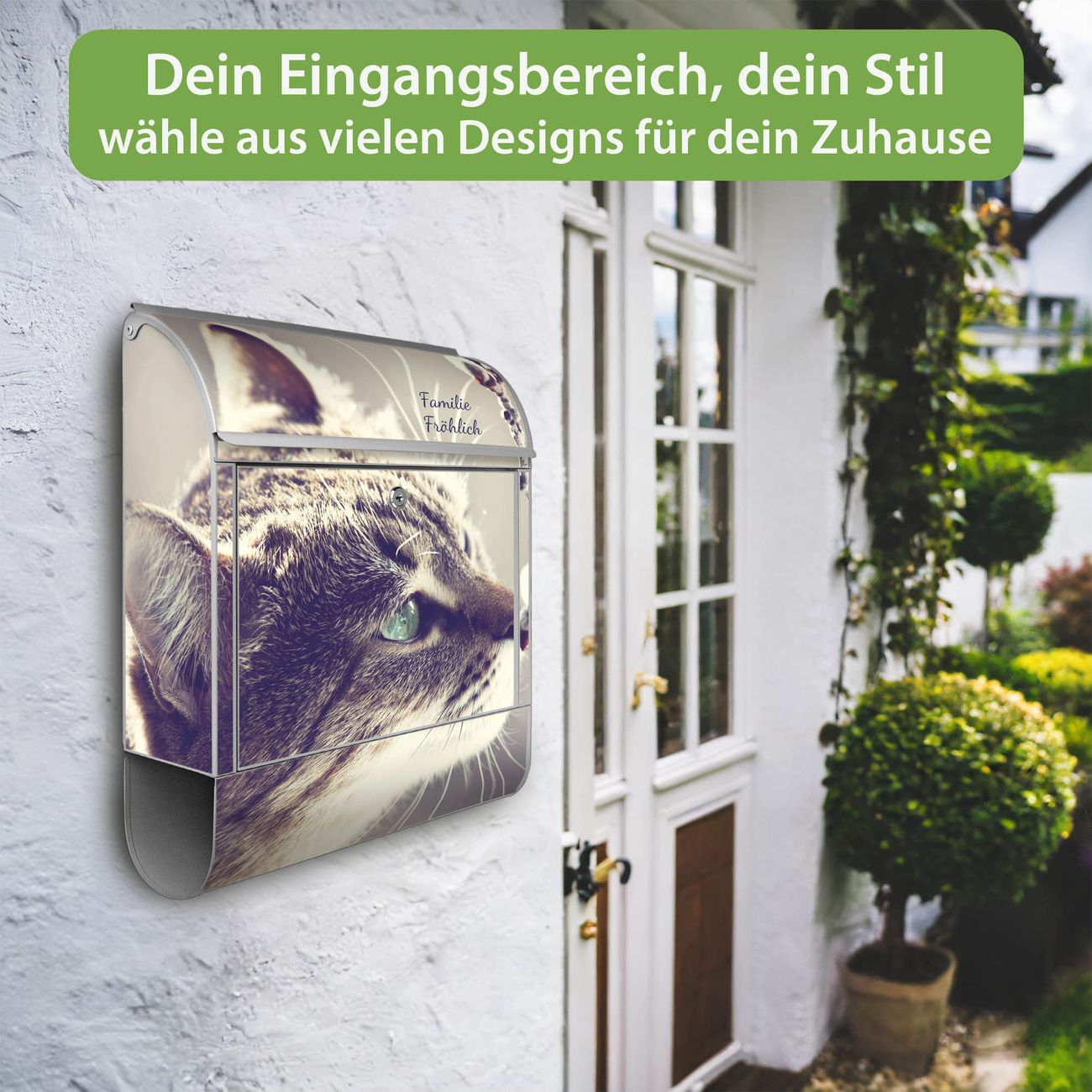 Der Vorschau-Text Familie Fröhlich wird durch Ihren persönlichen Wunschtext ersetzt. Die Schriftart und Farbe bleiben gleich wie in der Vorschau.
