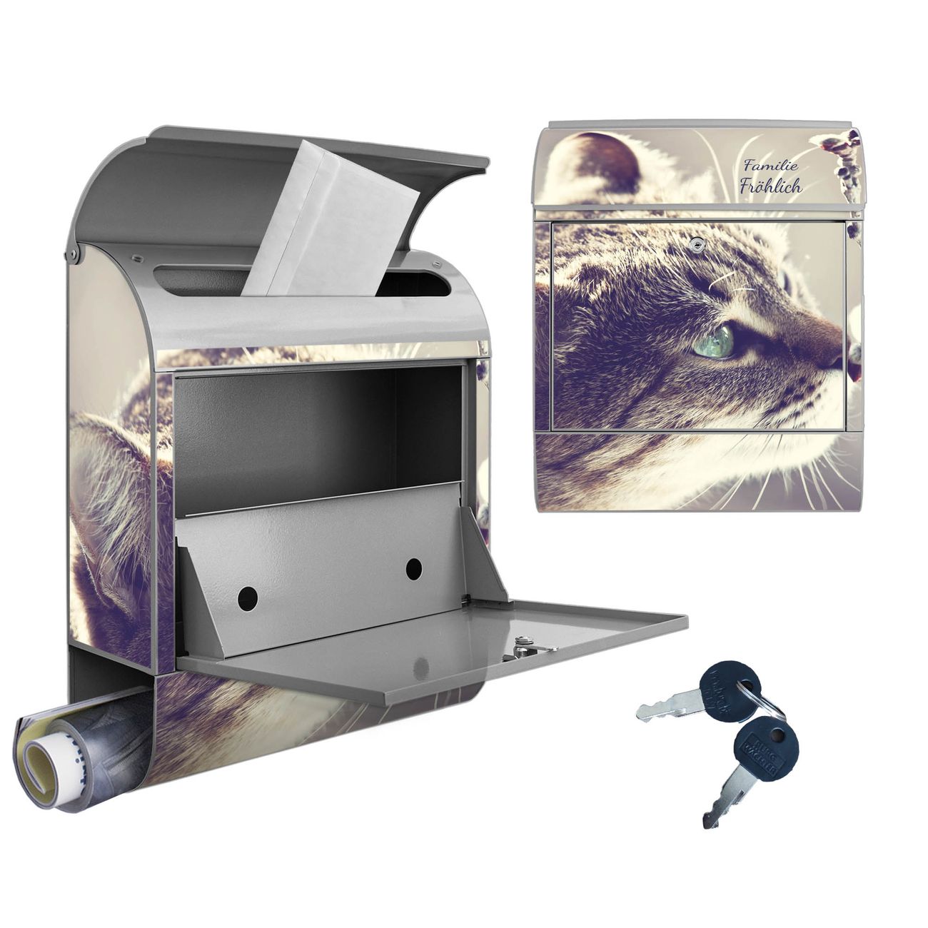 DESIGN: Der Postkasten mit Motiv Motiv Weidenkätzchen hat ein sehr ansprechendes und ausgefallenes Design, damit entlocken Sie Ihren Nachbarn und dem Postboten ein Lächeln. Heben Sie Sich von der tristen grauen Masse ab, ohne auf Funktionalität zu verzichten. DETAILS: Der Postkasten besteht aus pulverbeschichtetem Stahl. Er ist 38x46x12,5cm groß. Das Motiv besteht aus einer wetter- und UV-resistenten Folie, die mit einem Schutzlaminat überzogen ist, sodass der Briefkasten zusätzlich vor Kratzern geschützt ist. Der Briefkasten wird mit Montagematerial, zusätzlich zwei Schlüssel sowie einer Bohrschablone geliefert. NUTZEN: Sie können diesen Briefkasten sowohl als Wandbriefkasten montieren oder einen passenden Ständer kaufen und als Standbriefkasten einbetonieren. Die Größe bietet genügend Platz für Sendungen aller Art, der Einwurf fasst auch größere A4 Sendungen. BANJADO: Ihr Briefkasten wird in Sachsen in einer kleinen Manufaktur von Hand veredelt. Die Motivfolie ist lösungsmittelfrei und schutzlaminiert für einen langen Halt. Wir legen großen Wert auf die Verbindung von Funktionalität und Design. Sie erhalten Handarbeit aus Sachsen.