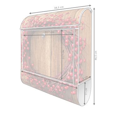 DESIGN: Der Postkasten mit Motiv Motiv Weihnachtskranz hat ein sehr ansprechendes und ausgefallenes Design, damit entlocken Sie Ihren Nachbarn und dem Postboten ein Lächeln. Heben Sie Sich von der tristen grauen Masse ab, ohne auf Funktionalität zu verzichten. DETAILS: Der Postkasten besteht aus pulverbeschichtetem Stahl. Er ist 38x46x12,5cm groß. Das Motiv besteht aus einer wetter- und UV-resistenten Folie, die mit einem Schutzlaminat überzogen ist, sodass der Briefkasten zusätzlich vor Kratzern geschützt ist. Der Briefkasten wird mit Montagematerial, zusätzlich zwei Schlüssel sowie einer Bohrschablone geliefert. NUTZEN: Sie können diesen Briefkasten sowohl als Wandbriefkasten montieren oder einen passenden Ständer kaufen und als Standbriefkasten einbetonieren. Die Größe bietet genügend Platz für Sendungen aller Art, der Einwurf fasst auch größere A4 Sendungen. BANJADO: Ihr Briefkasten wird in Sachsen in einer kleinen Manufaktur von Hand veredelt. Die Motivfolie ist lösungsmittelfrei und schutzlaminiert für einen langen Halt. Wir legen großen Wert auf die Verbindung von Funktionalität und Design. Sie erhalten Handarbeit aus Sachsen.