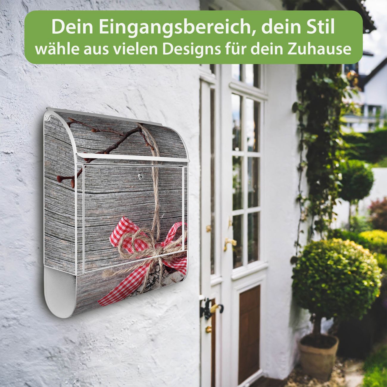 DESIGN: Der Postkasten mit Motiv Motiv Weihnachtsstern hat ein sehr ansprechendes und ausgefallenes Design, damit entlocken Sie Ihren Nachbarn und dem Postboten ein Lächeln. Heben Sie Sich von der tristen grauen Masse ab, ohne auf Funktionalität zu verzichten. DETAILS: Der Postkasten besteht aus pulverbeschichtetem Stahl. Er ist 38x46x12,5cm groß. Das Motiv besteht aus einer wetter- und UV-resistenten Folie, die mit einem Schutzlaminat überzogen ist, sodass der Briefkasten zusätzlich vor Kratzern geschützt ist. Der Briefkasten wird mit Montagematerial, zusätzlich zwei Schlüssel sowie einer Bohrschablone geliefert. NUTZEN: Sie können diesen Briefkasten sowohl als Wandbriefkasten montieren oder einen passenden Ständer kaufen und als Standbriefkasten einbetonieren. Die Größe bietet genügend Platz für Sendungen aller Art, der Einwurf fasst auch größere A4 Sendungen. BANJADO: Ihr Briefkasten wird in Sachsen in einer kleinen Manufaktur von Hand veredelt. Die Motivfolie ist lösungsmittelfrei und schutzlaminiert für einen langen Halt. Wir legen großen Wert auf die Verbindung von Funktionalität und Design. Sie erhalten Handarbeit aus Sachsen.