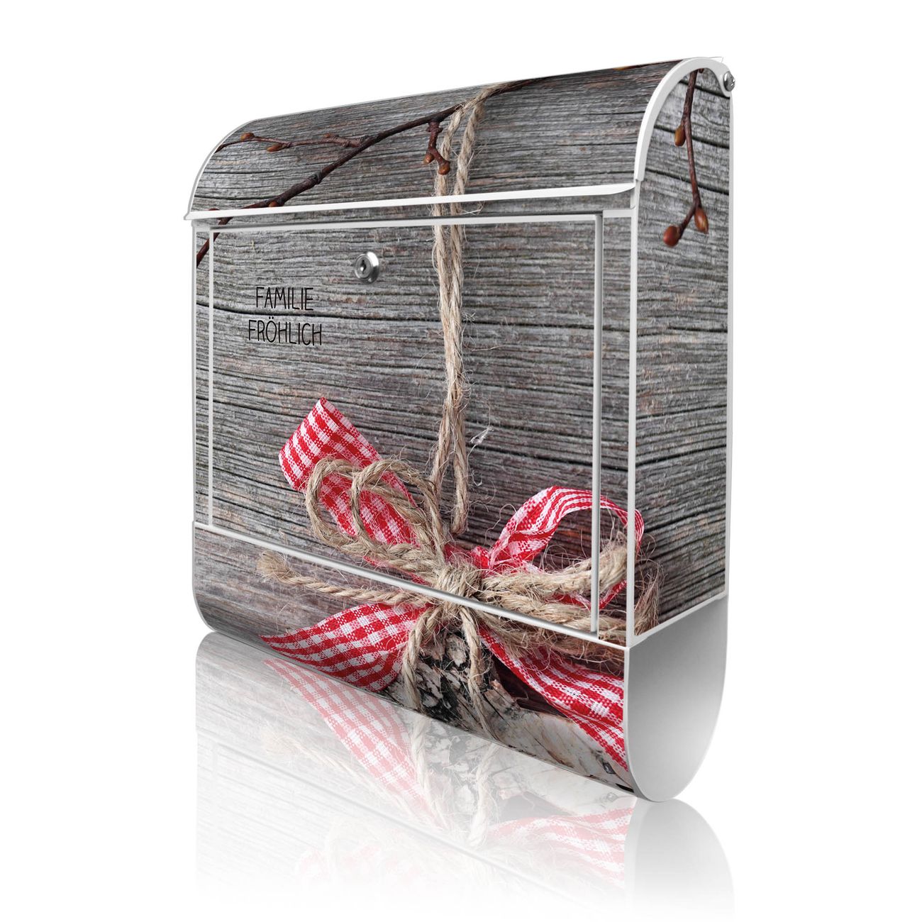 Der Vorschau-Text Familie Fröhlich wird durch Ihren persönlichen Wunschtext ersetzt. Die Schriftart und Farbe bleiben gleich wie in der Vorschau.