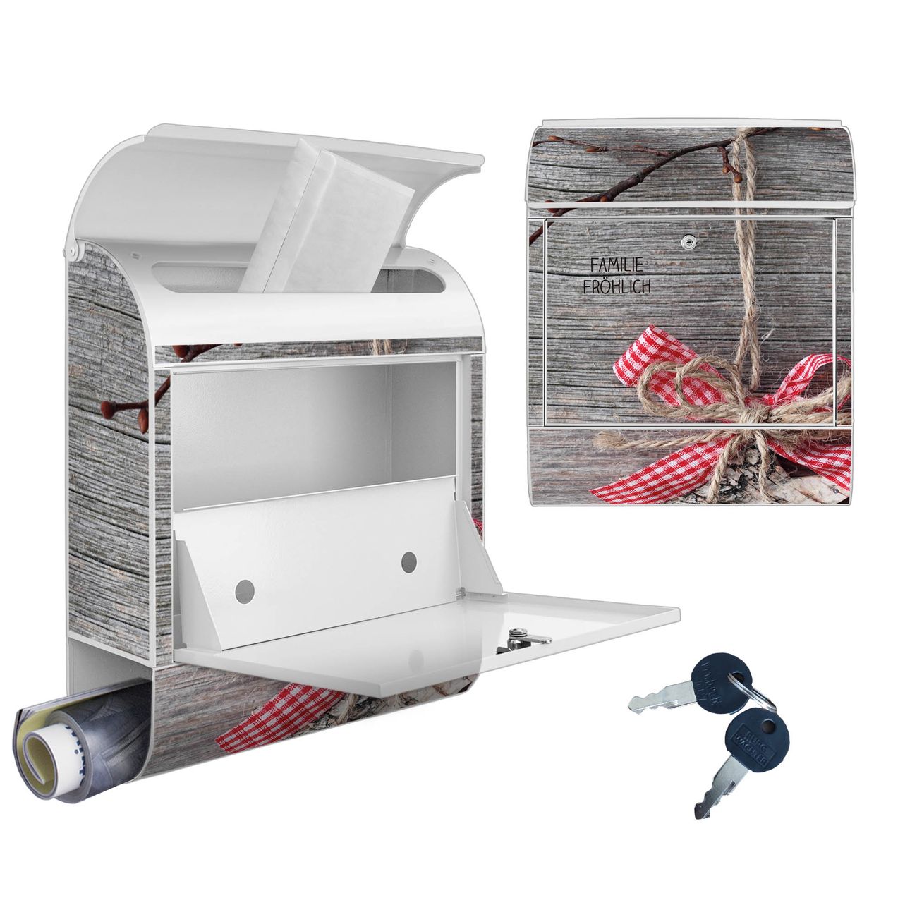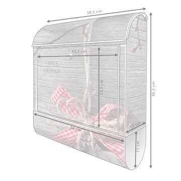 DESIGN: Der Postkasten mit Motiv Motiv Weihnachtsstern hat ein sehr ansprechendes und ausgefallenes Design, damit entlocken Sie Ihren Nachbarn und dem Postboten ein Lächeln. Heben Sie Sich von der tristen grauen Masse ab, ohne auf Funktionalität zu verzichten. DETAILS: Der Postkasten besteht aus pulverbeschichtetem Stahl. Er ist 38x46x12,5cm groß. Das Motiv besteht aus einer wetter- und UV-resistenten Folie, die mit einem Schutzlaminat überzogen ist, sodass der Briefkasten zusätzlich vor Kratzern geschützt ist. Der Briefkasten wird mit Montagematerial, zusätzlich zwei Schlüssel sowie einer Bohrschablone geliefert. NUTZEN: Sie können diesen Briefkasten sowohl als Wandbriefkasten montieren oder einen passenden Ständer kaufen und als Standbriefkasten einbetonieren. Die Größe bietet genügend Platz für Sendungen aller Art, der Einwurf fasst auch größere A4 Sendungen. BANJADO: Ihr Briefkasten wird in Sachsen in einer kleinen Manufaktur von Hand veredelt. Die Motivfolie ist lösungsmittelfrei und schutzlaminiert für einen langen Halt. Wir legen großen Wert auf die Verbindung von Funktionalität und Design. Sie erhalten Handarbeit aus Sachsen.