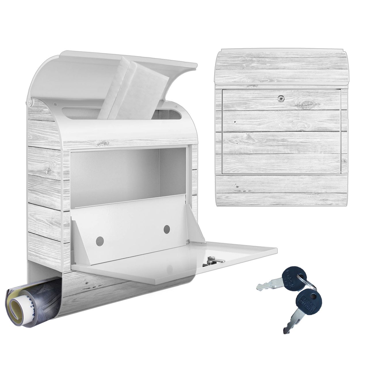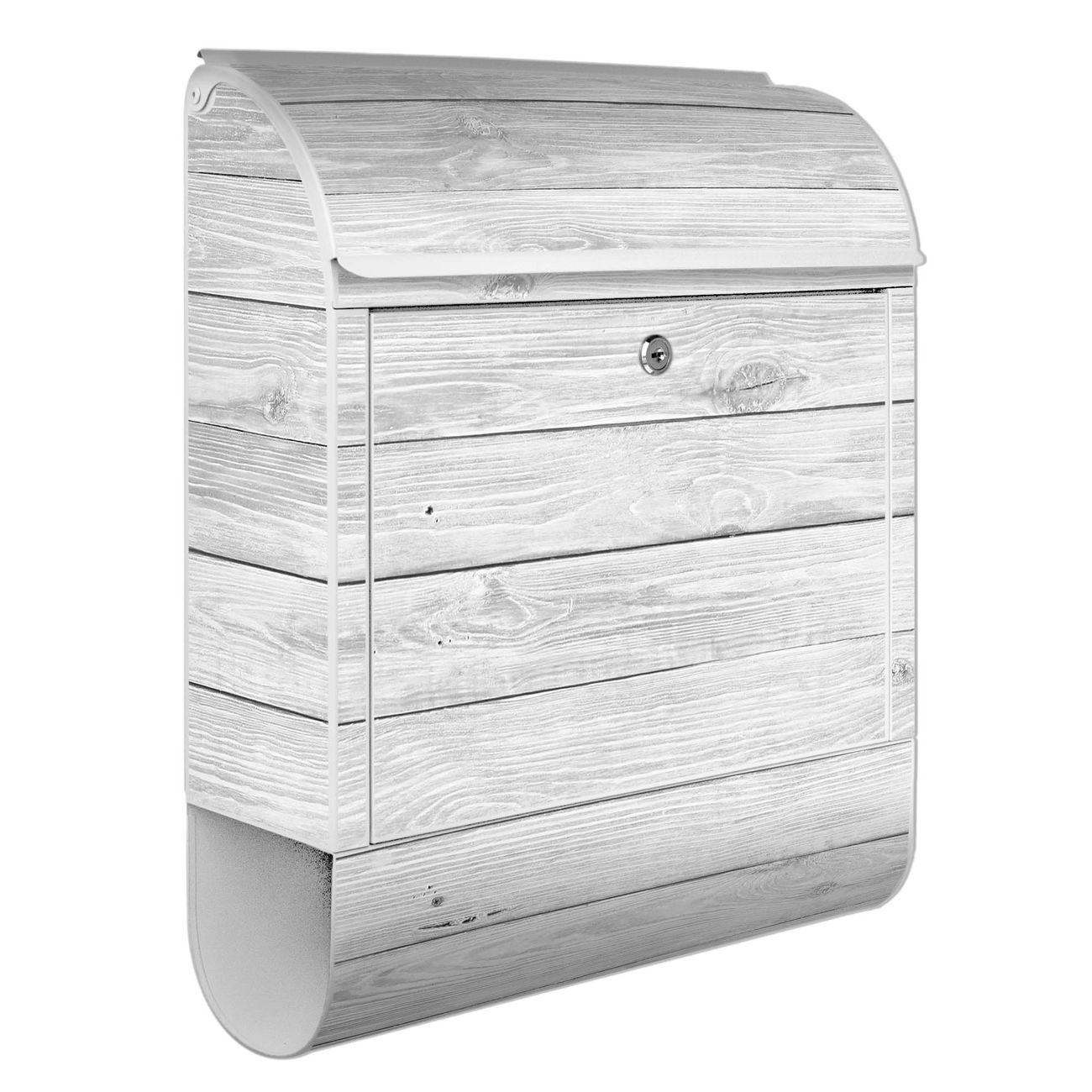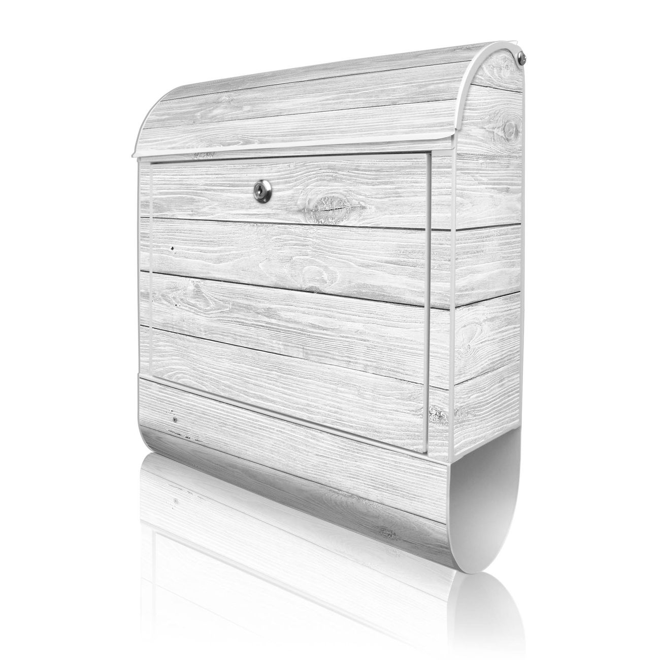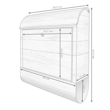 DESIGN: Der Postkasten mit Motiv Motiv Weiß Gebeizt hat ein sehr ansprechendes und ausgefallenes Design, damit entlocken Sie Ihren Nachbarn und dem Postboten ein Lächeln. Heben Sie Sich von der tristen grauen Masse ab, ohne auf Funktionalität zu verzichten. DETAILS: Der Postkasten besteht aus pulverbeschichtetem Stahl. Er ist 38x46x12,5cm groß. Das Motiv besteht aus einer wetter- und UV-resistenten Folie, die mit einem Schutzlaminat überzogen ist, sodass der Briefkasten zusätzlich vor Kratzern geschützt ist. Der Briefkasten wird mit Montagematerial, zusätzlich zwei Schlüssel sowie einer Bohrschablone geliefert. NUTZEN: Sie können diesen Briefkasten sowohl als Wandbriefkasten montieren oder einen passenden Ständer kaufen und als Standbriefkasten einbetonieren. Die Größe bietet genügend Platz für Sendungen aller Art, der Einwurf fasst auch größere A4 Sendungen. BANJADO: Ihr Briefkasten wird in Sachsen in einer kleinen Manufaktur von Hand veredelt. Die Motivfolie ist lösungsmittelfrei und schutzlaminiert für einen langen Halt. Wir legen großen Wert auf die Verbindung von Funktionalität und Design. Sie erhalten Handarbeit aus Sachsen.