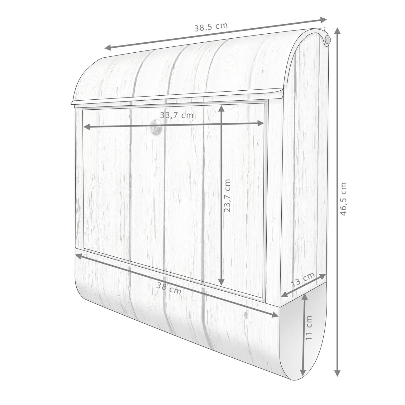 DESIGN: Der Postkasten mit Motiv Motiv Weißer Bretterzaun hat ein sehr ansprechendes und ausgefallenes Design, damit entlocken Sie Ihren Nachbarn und dem Postboten ein Lächeln. Heben Sie Sich von der tristen grauen Masse ab, ohne auf Funktionalität zu verzichten. DETAILS: Der Postkasten besteht aus pulverbeschichtetem Stahl. Er ist 38x46x12,5cm groß. Das Motiv besteht aus einer wetter- und UV-resistenten Folie, die mit einem Schutzlaminat überzogen ist, sodass der Briefkasten zusätzlich vor Kratzern geschützt ist. Der Briefkasten wird mit Montagematerial, zusätzlich zwei Schlüssel sowie einer Bohrschablone geliefert. NUTZEN: Sie können diesen Briefkasten sowohl als Wandbriefkasten montieren oder einen passenden Ständer kaufen und als Standbriefkasten einbetonieren. Die Größe bietet genügend Platz für Sendungen aller Art, der Einwurf fasst auch größere A4 Sendungen. BANJADO: Ihr Briefkasten wird in Sachsen in einer kleinen Manufaktur von Hand veredelt. Die Motivfolie ist lösungsmittelfrei und schutzlaminiert für einen langen Halt. Wir legen großen Wert auf die Verbindung von Funktionalität und Design. Sie erhalten Handarbeit aus Sachsen.
