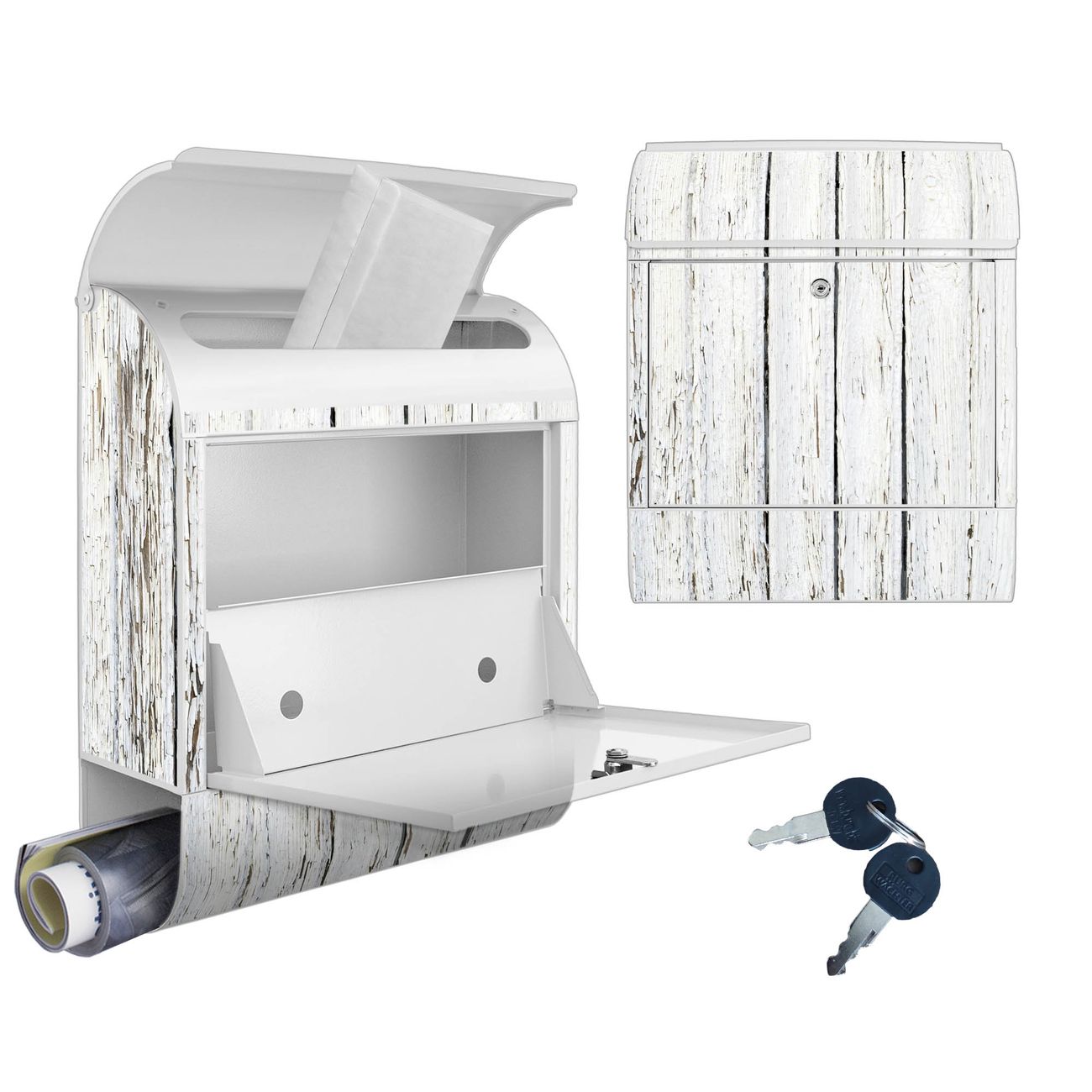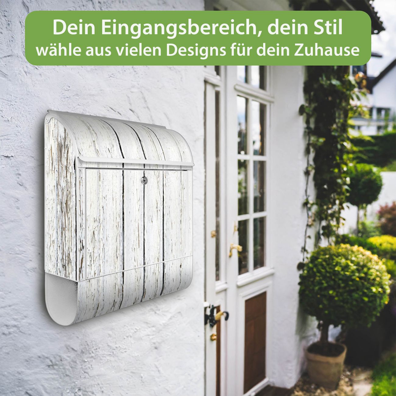 Großer Stahl Briefkasten Motiv Weißer Bretterzaun
