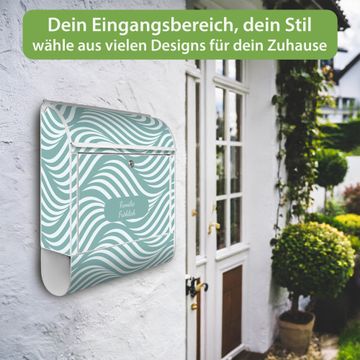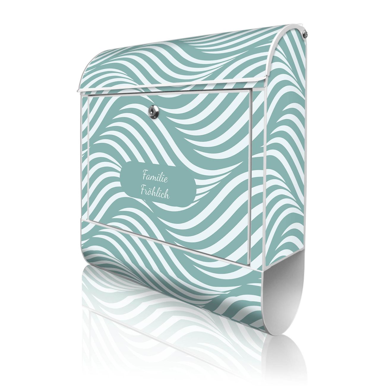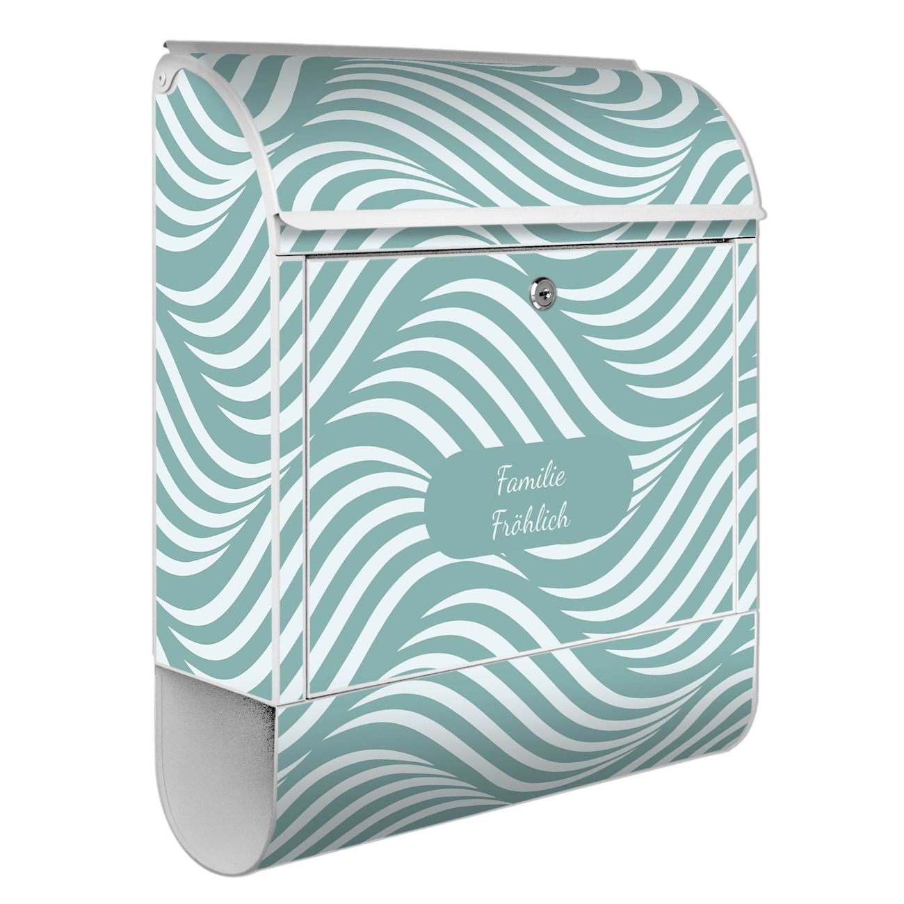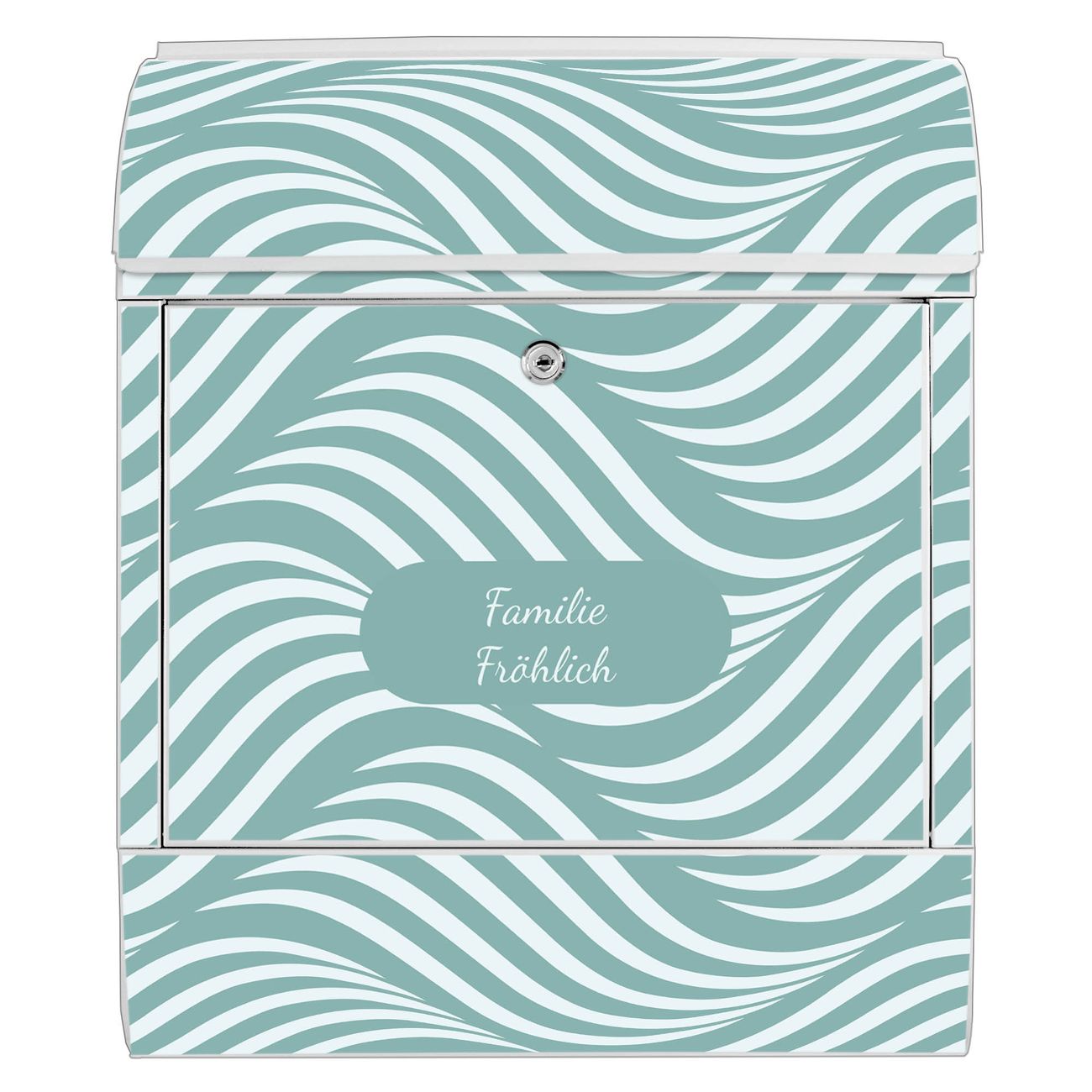 Großer Stahl Briefkasten Motiv Wellen Lindgrün