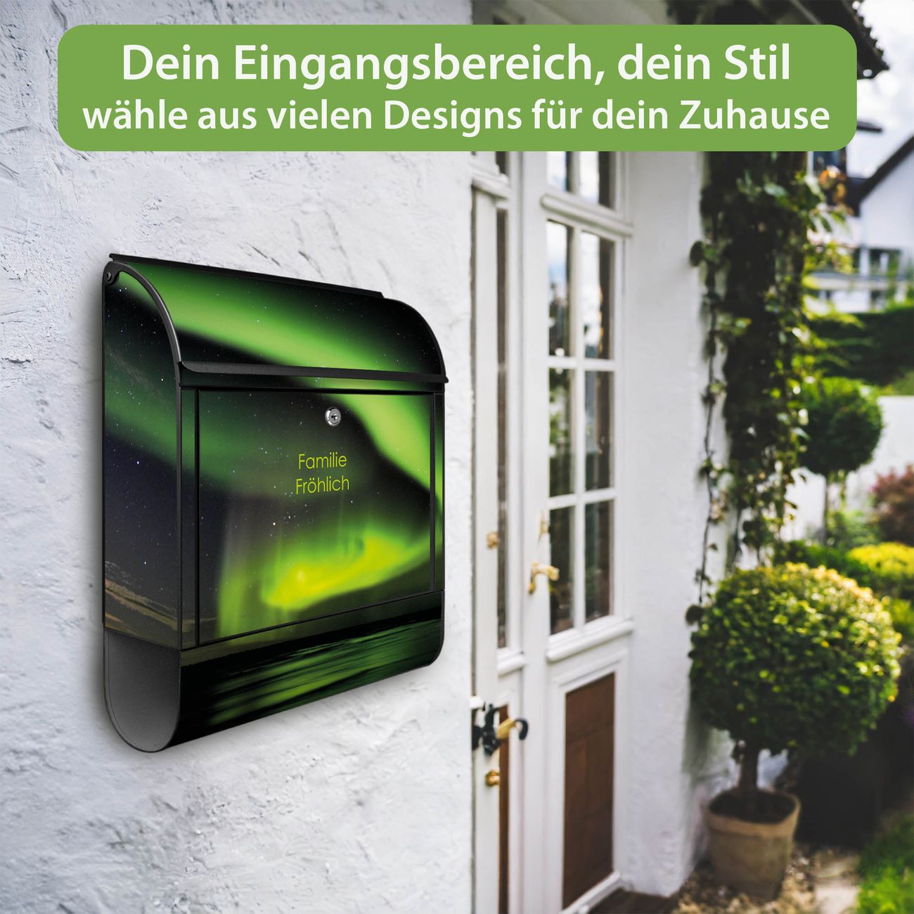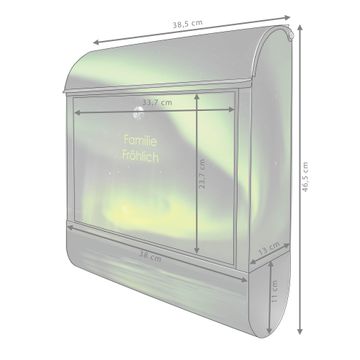DESIGN: Der Postkasten mit Motiv Motiv Wetterleuchten hat ein sehr ansprechendes und ausgefallenes Design, damit entlocken Sie Ihren Nachbarn und dem Postboten ein Lächeln. Heben Sie Sich von der tristen grauen Masse ab, ohne auf Funktionalität zu verzichten. DETAILS: Der Postkasten besteht aus pulverbeschichtetem Stahl. Er ist 38x46x12,5cm groß. Das Motiv besteht aus einer wetter- und UV-resistenten Folie, die mit einem Schutzlaminat überzogen ist, sodass der Briefkasten zusätzlich vor Kratzern geschützt ist. Der Briefkasten wird mit Montagematerial, zusätzlich zwei Schlüssel sowie einer Bohrschablone geliefert. NUTZEN: Sie können diesen Briefkasten sowohl als Wandbriefkasten montieren oder einen passenden Ständer kaufen und als Standbriefkasten einbetonieren. Die Größe bietet genügend Platz für Sendungen aller Art, der Einwurf fasst auch größere A4 Sendungen. BANJADO: Ihr Briefkasten wird in Sachsen in einer kleinen Manufaktur von Hand veredelt. Die Motivfolie ist lösungsmittelfrei und schutzlaminiert für einen langen Halt. Wir legen großen Wert auf die Verbindung von Funktionalität und Design. Sie erhalten Handarbeit aus Sachsen.