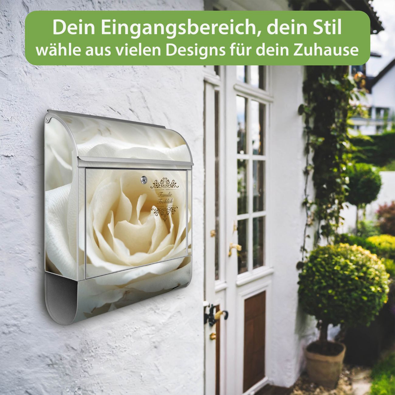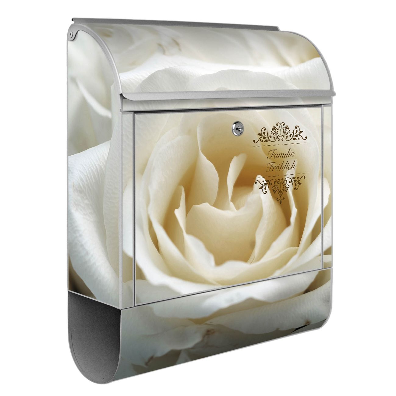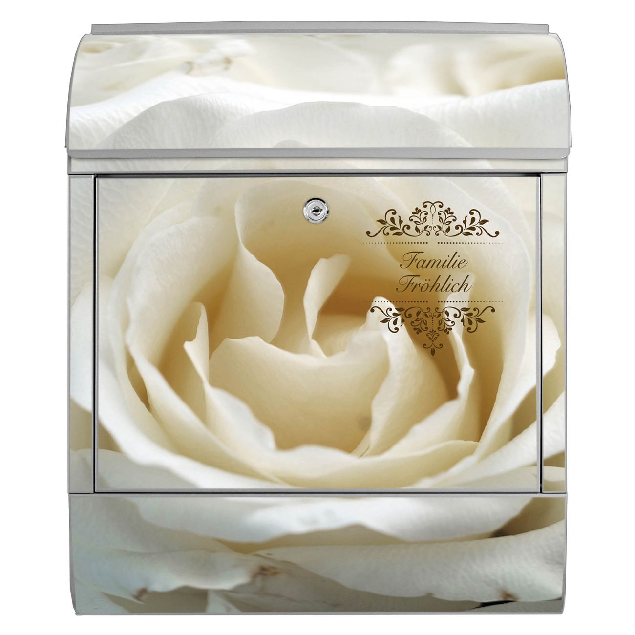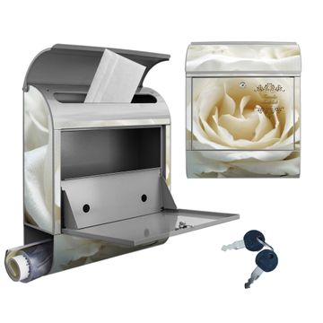 Großer Stahl Briefkasten Motiv White Roses