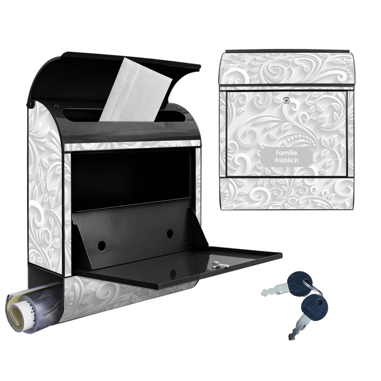 Großer Stahl Briefkasten Motiv White Swirl