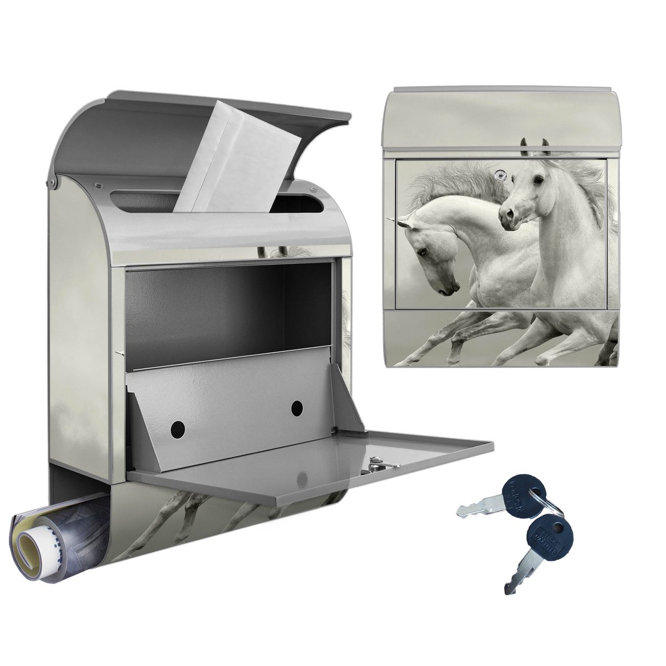 Großer Stahl Briefkasten Motiv Wilde Pferde SW