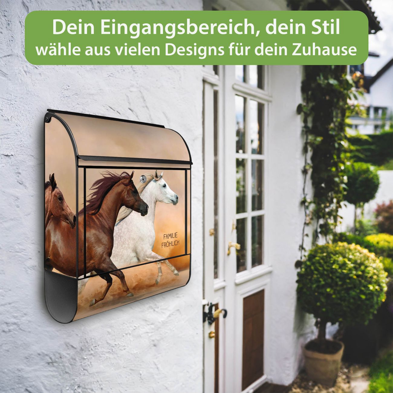 Großer Stahl Briefkasten Motiv Wilde Pferde