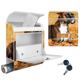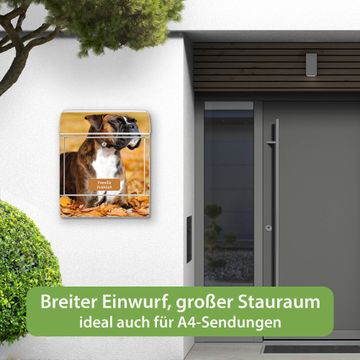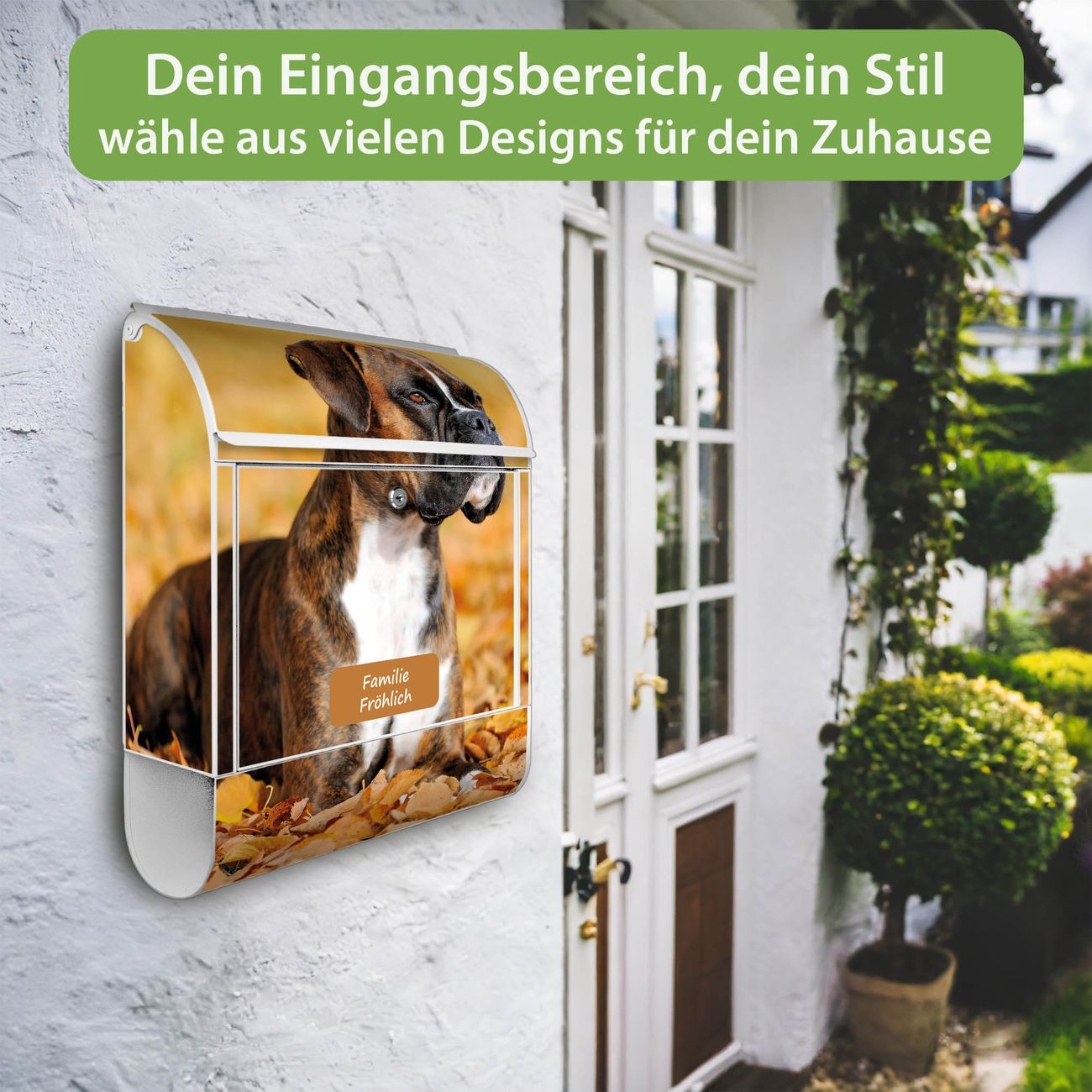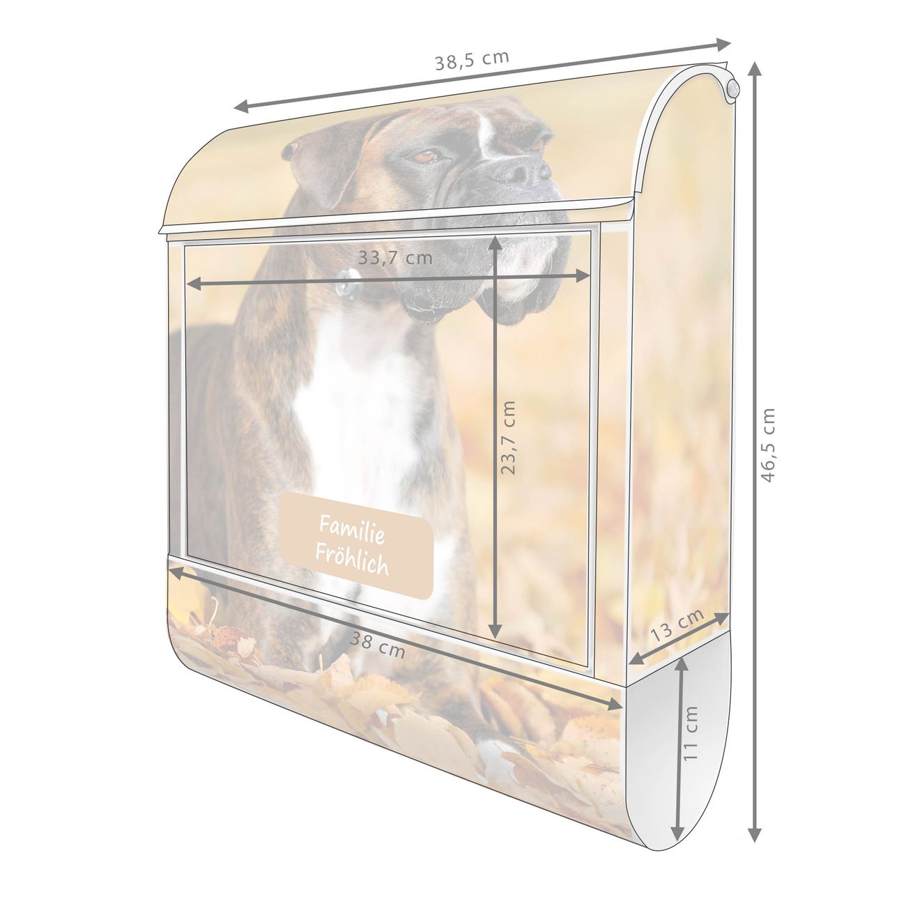 DESIGN: Der Postkasten mit Motiv Motiv Wilhelm hat ein sehr ansprechendes und ausgefallenes Design, damit entlocken Sie Ihren Nachbarn und dem Postboten ein Lächeln. Heben Sie Sich von der tristen grauen Masse ab, ohne auf Funktionalität zu verzichten. DETAILS: Der Postkasten besteht aus pulverbeschichtetem Stahl. Er ist 38x46x12,5cm groß. Das Motiv besteht aus einer wetter- und UV-resistenten Folie, die mit einem Schutzlaminat überzogen ist, sodass der Briefkasten zusätzlich vor Kratzern geschützt ist. Der Briefkasten wird mit Montagematerial, zusätzlich zwei Schlüssel sowie einer Bohrschablone geliefert. NUTZEN: Sie können diesen Briefkasten sowohl als Wandbriefkasten montieren oder einen passenden Ständer kaufen und als Standbriefkasten einbetonieren. Die Größe bietet genügend Platz für Sendungen aller Art, der Einwurf fasst auch größere A4 Sendungen. BANJADO: Ihr Briefkasten wird in Sachsen in einer kleinen Manufaktur von Hand veredelt. Die Motivfolie ist lösungsmittelfrei und schutzlaminiert für einen langen Halt. Wir legen großen Wert auf die Verbindung von Funktionalität und Design. Sie erhalten Handarbeit aus Sachsen.