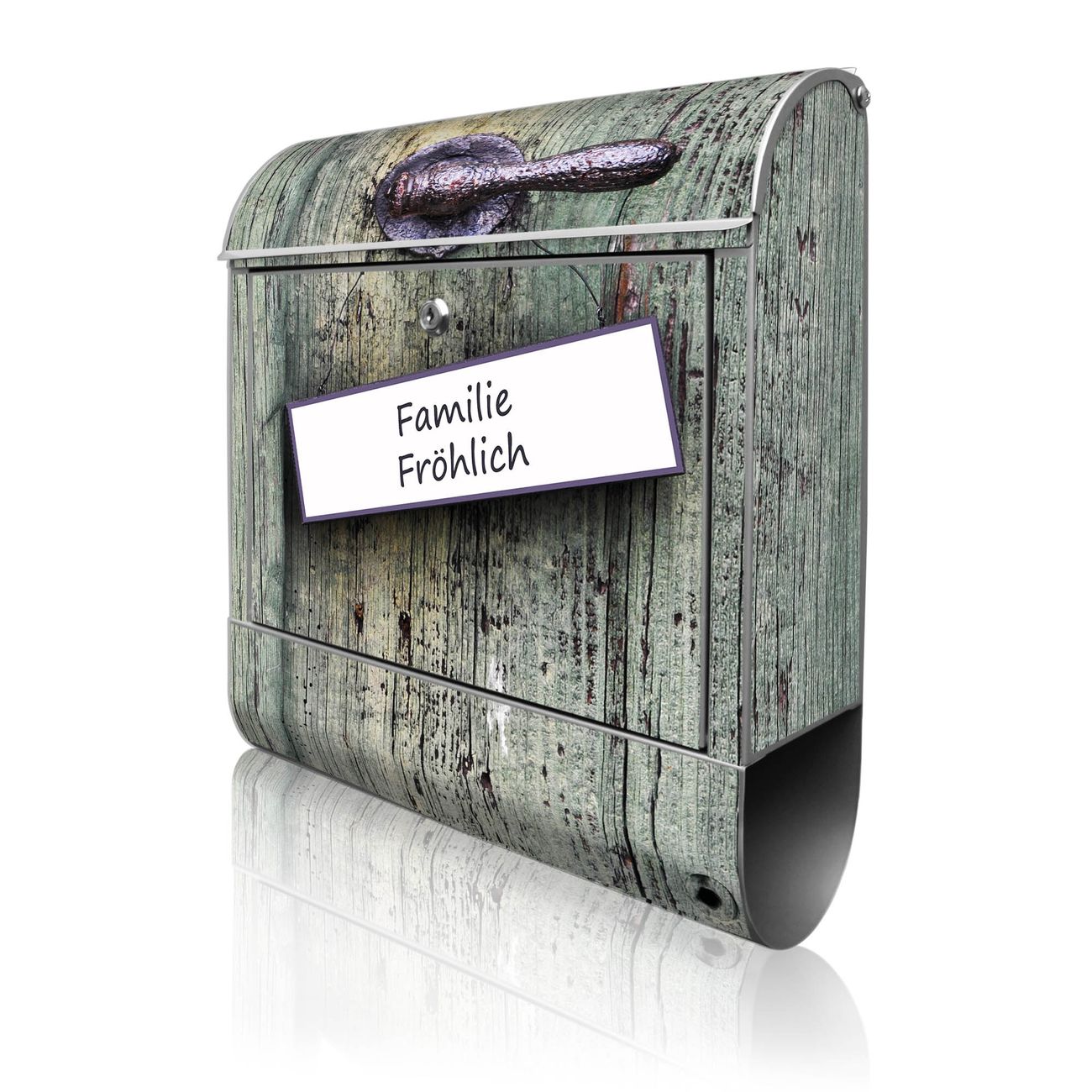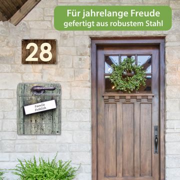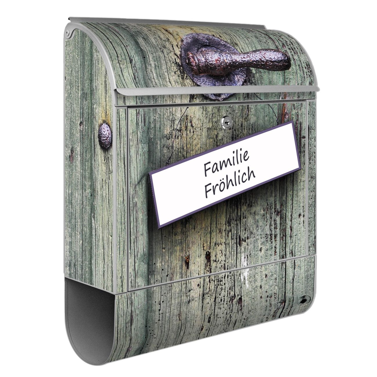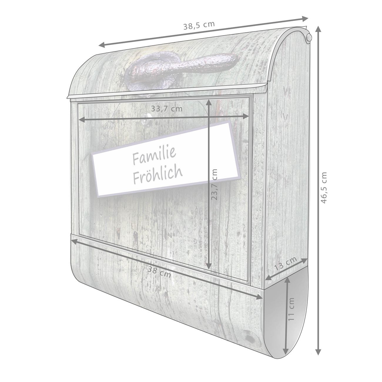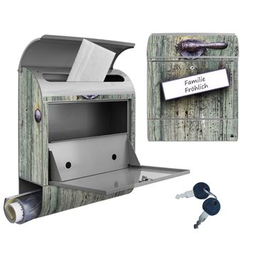 DESIGN: Der Postkasten mit Motiv Motiv Willkommen hat ein sehr ansprechendes und ausgefallenes Design, damit entlocken Sie Ihren Nachbarn und dem Postboten ein Lächeln. Heben Sie Sich von der tristen grauen Masse ab, ohne auf Funktionalität zu verzichten. DETAILS: Der Postkasten besteht aus pulverbeschichtetem Stahl. Er ist 38x46x12,5cm groß. Das Motiv besteht aus einer wetter- und UV-resistenten Folie, die mit einem Schutzlaminat überzogen ist, sodass der Briefkasten zusätzlich vor Kratzern geschützt ist. Der Briefkasten wird mit Montagematerial, zusätzlich zwei Schlüssel sowie einer Bohrschablone geliefert. NUTZEN: Sie können diesen Briefkasten sowohl als Wandbriefkasten montieren oder einen passenden Ständer kaufen und als Standbriefkasten einbetonieren. Die Größe bietet genügend Platz für Sendungen aller Art, der Einwurf fasst auch größere A4 Sendungen. BANJADO: Ihr Briefkasten wird in Sachsen in einer kleinen Manufaktur von Hand veredelt. Die Motivfolie ist lösungsmittelfrei und schutzlaminiert für einen langen Halt. Wir legen großen Wert auf die Verbindung von Funktionalität und Design. Sie erhalten Handarbeit aus Sachsen.