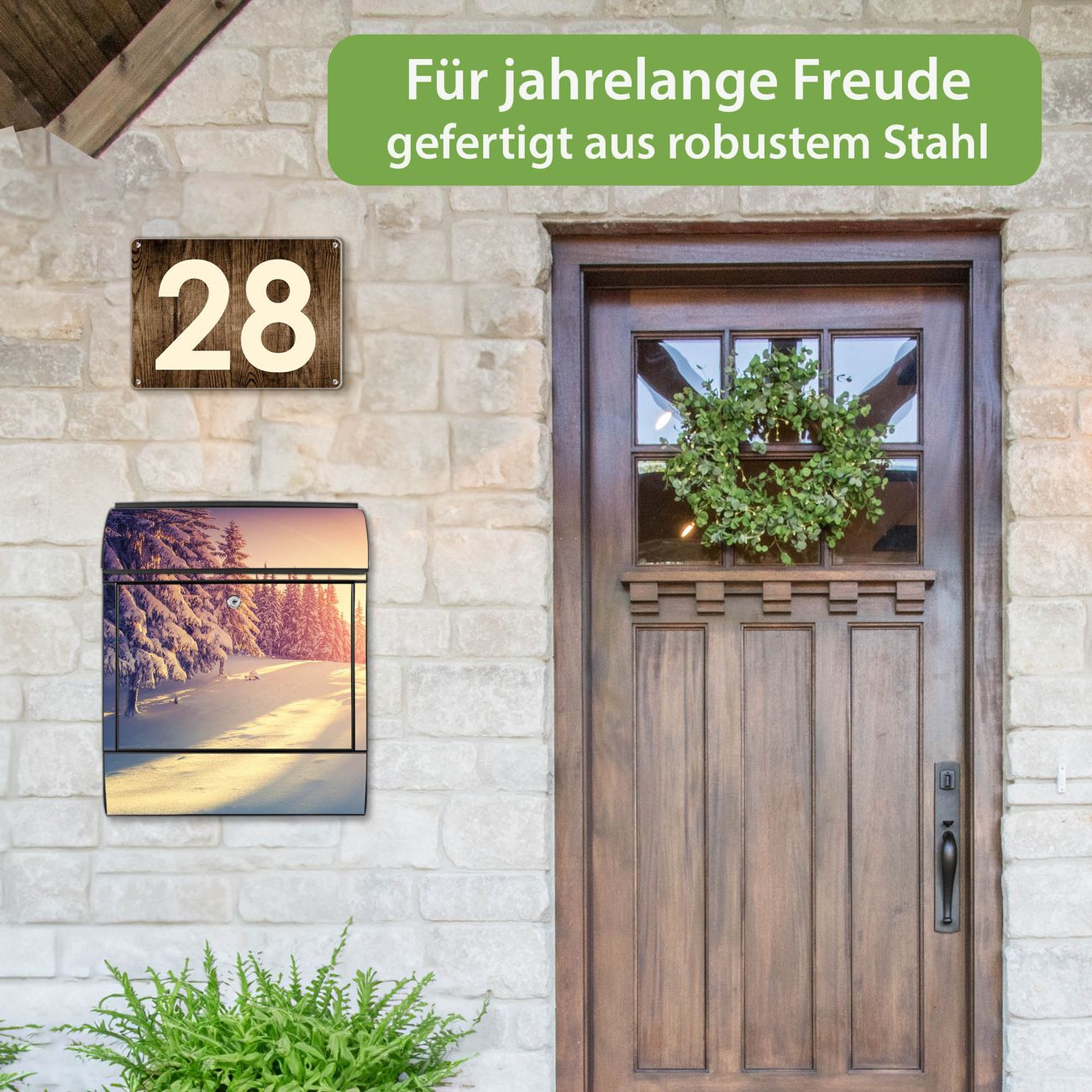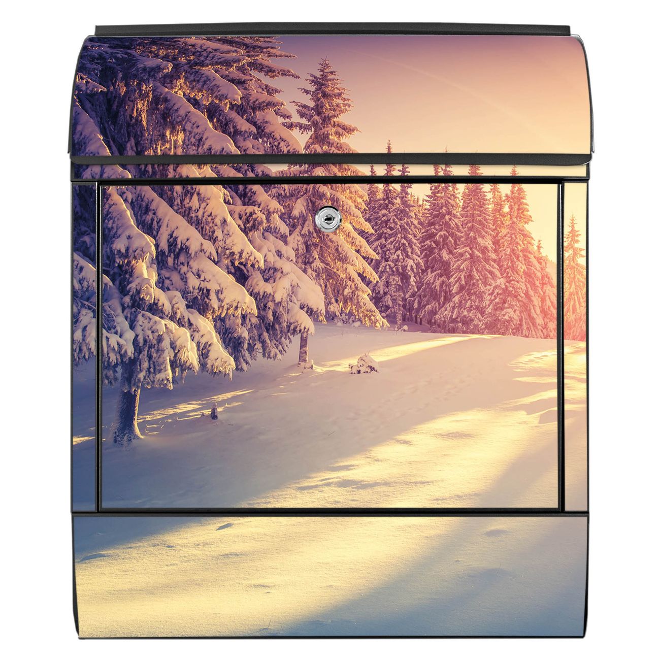 Großer Stahl Briefkasten Motiv Winterabend