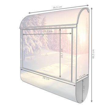 DESIGN: Der Postkasten mit Motiv Motiv Winterabend hat ein sehr ansprechendes und ausgefallenes Design, damit entlocken Sie Ihren Nachbarn und dem Postboten ein Lächeln. Heben Sie Sich von der tristen grauen Masse ab, ohne auf Funktionalität zu verzichten. DETAILS: Der Postkasten besteht aus pulverbeschichtetem Stahl. Er ist 38x46x12,5cm groß. Das Motiv besteht aus einer wetter- und UV-resistenten Folie, die mit einem Schutzlaminat überzogen ist, sodass der Briefkasten zusätzlich vor Kratzern geschützt ist. Der Briefkasten wird mit Montagematerial, zusätzlich zwei Schlüssel sowie einer Bohrschablone geliefert. NUTZEN: Sie können diesen Briefkasten sowohl als Wandbriefkasten montieren oder einen passenden Ständer kaufen und als Standbriefkasten einbetonieren. Die Größe bietet genügend Platz für Sendungen aller Art, der Einwurf fasst auch größere A4 Sendungen. BANJADO: Ihr Briefkasten wird in Sachsen in einer kleinen Manufaktur von Hand veredelt. Die Motivfolie ist lösungsmittelfrei und schutzlaminiert für einen langen Halt. Wir legen großen Wert auf die Verbindung von Funktionalität und Design. Sie erhalten Handarbeit aus Sachsen.